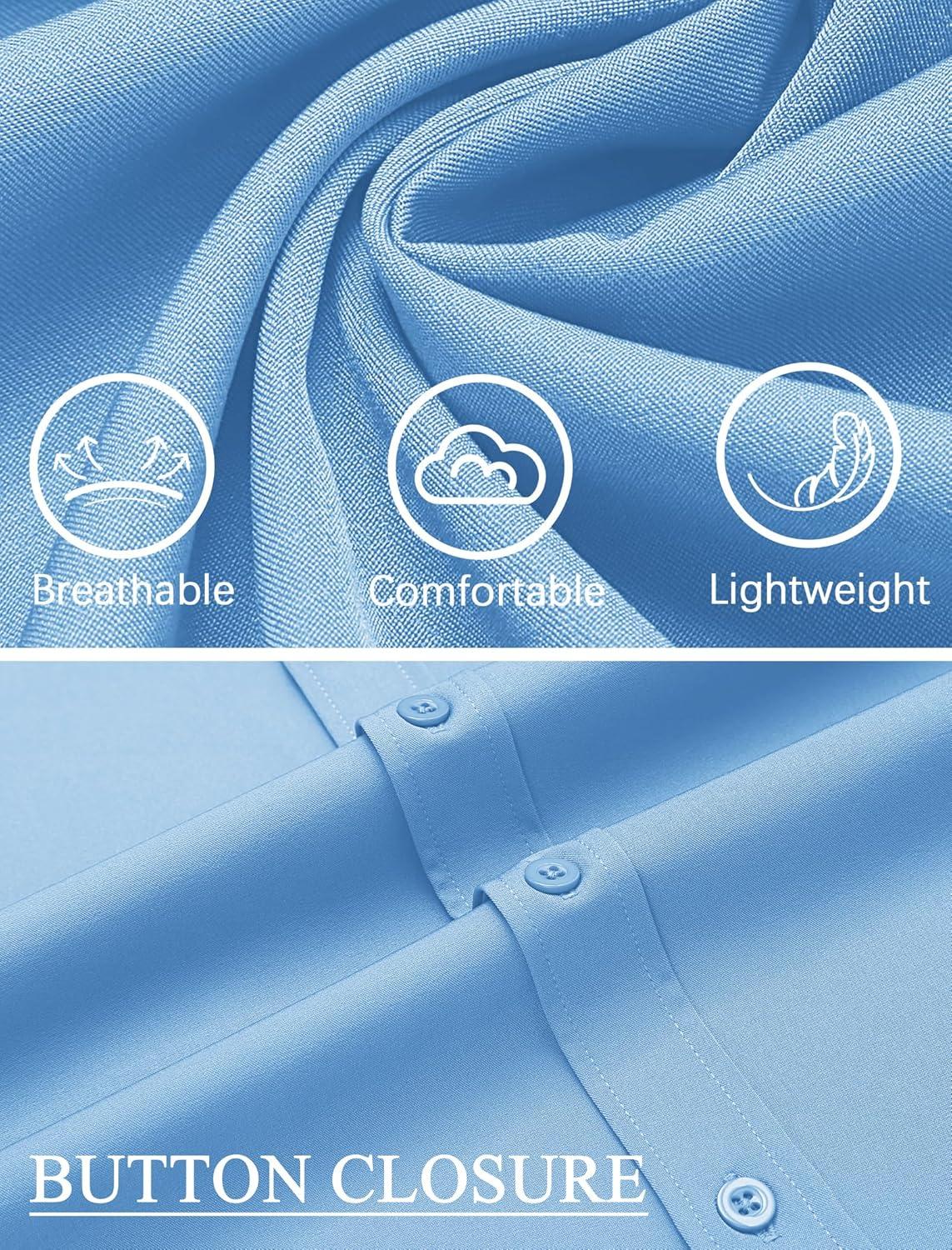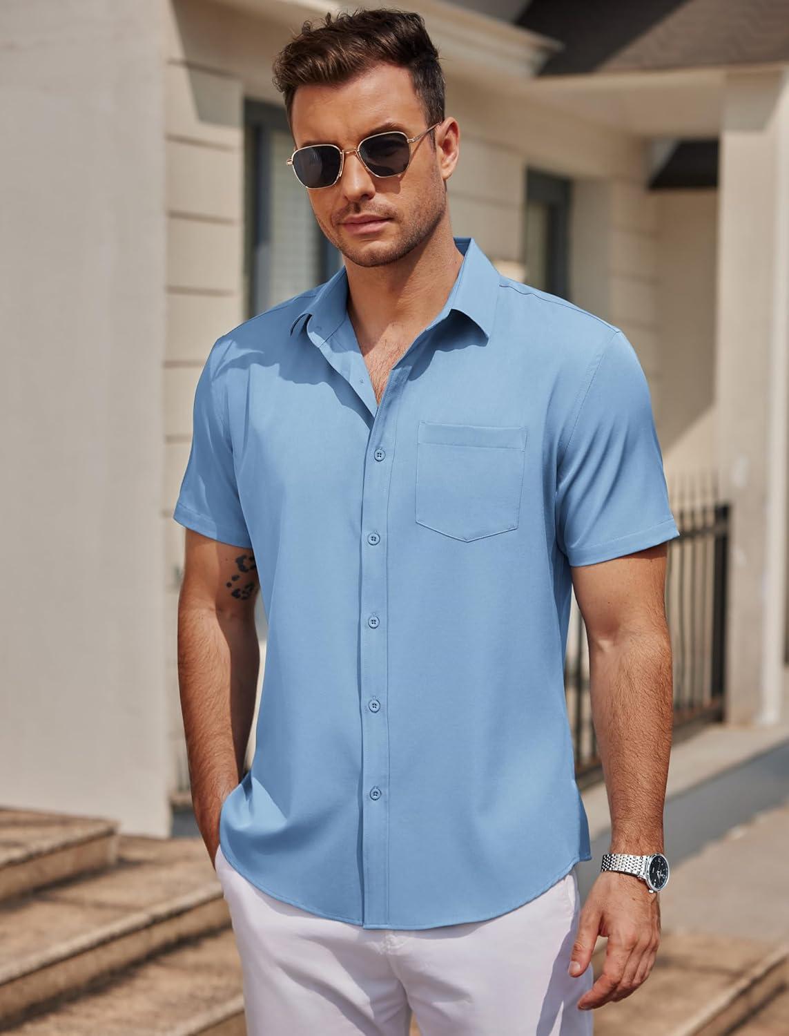 COOFANDY Mens Casual Button Down Shirts Short Sleeve Business Shirts Lightweight Wrinkle Free Dress Shirts(Blue)
