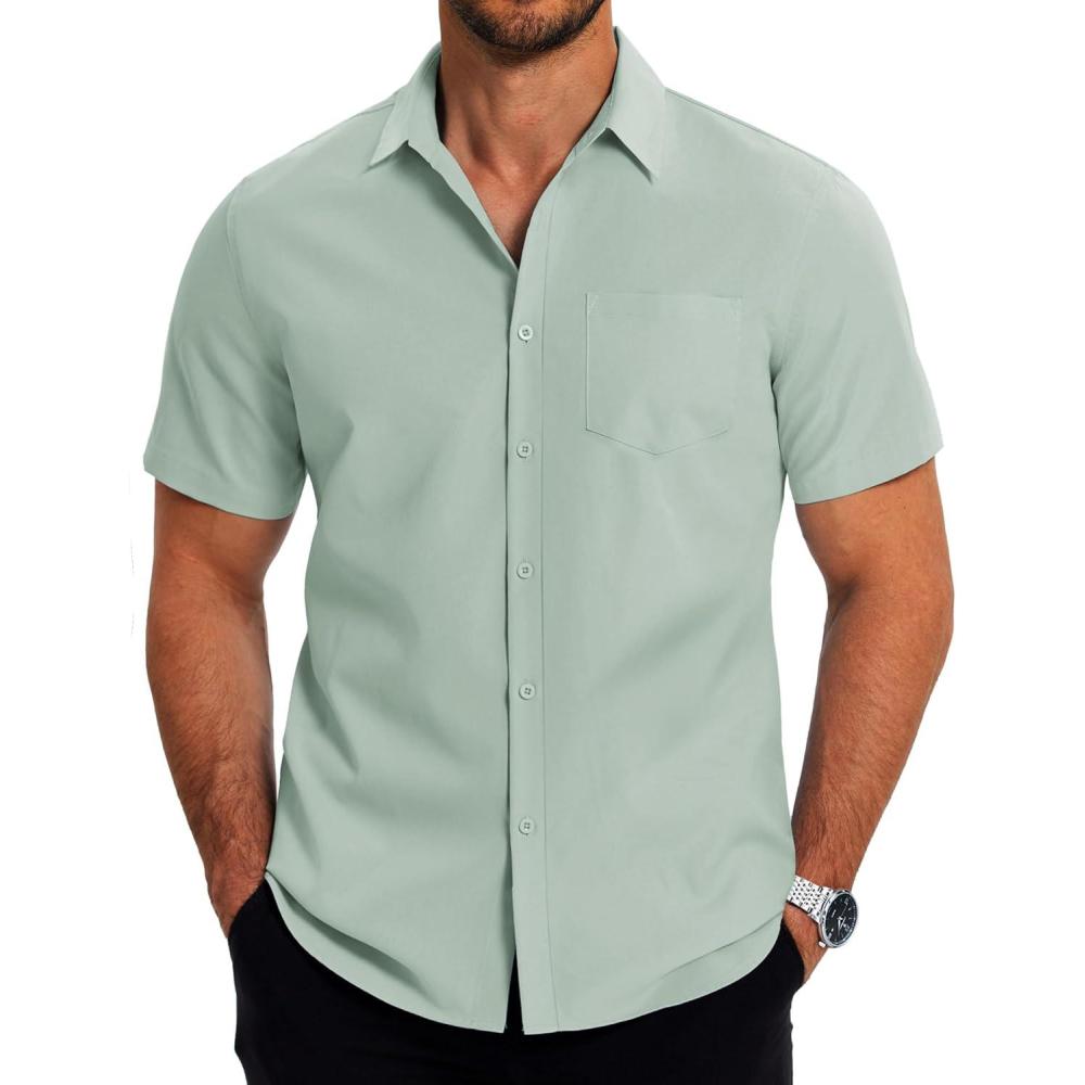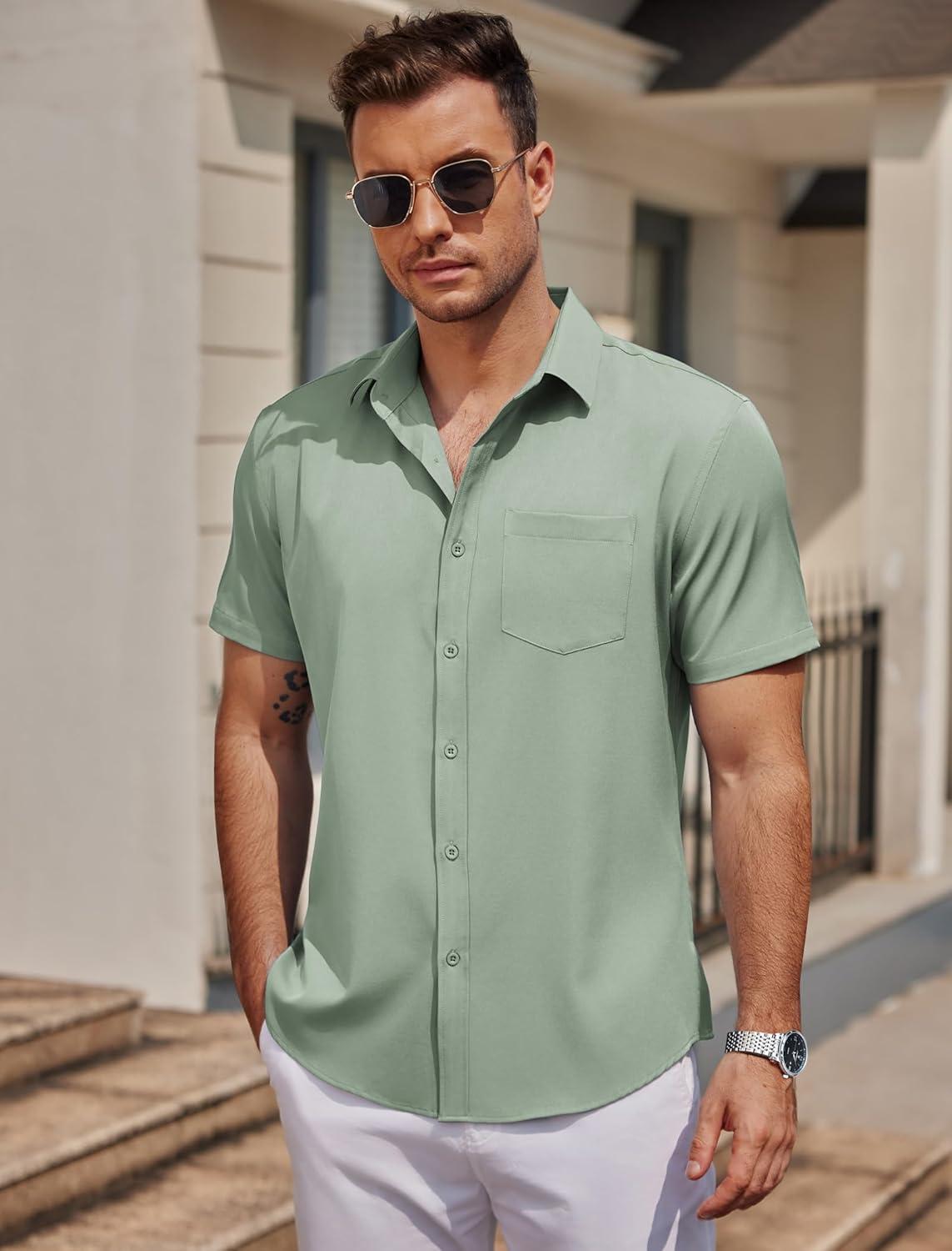 COOFANDY Mens Casual Button Down Shirts Short Sleeve Business Shirts Lightweight Wrinkle Free Dress Shirts(Light Green)