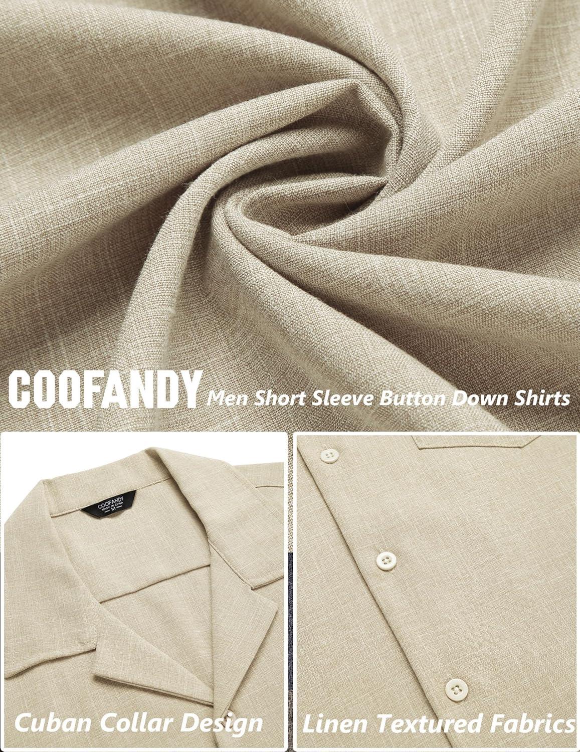 COOFANDY Men’s Casual Button Down Shirts Short Sleeve Summer Beach Shirt Cuban Vacation Textured Shirts with Pocket(Khaki)