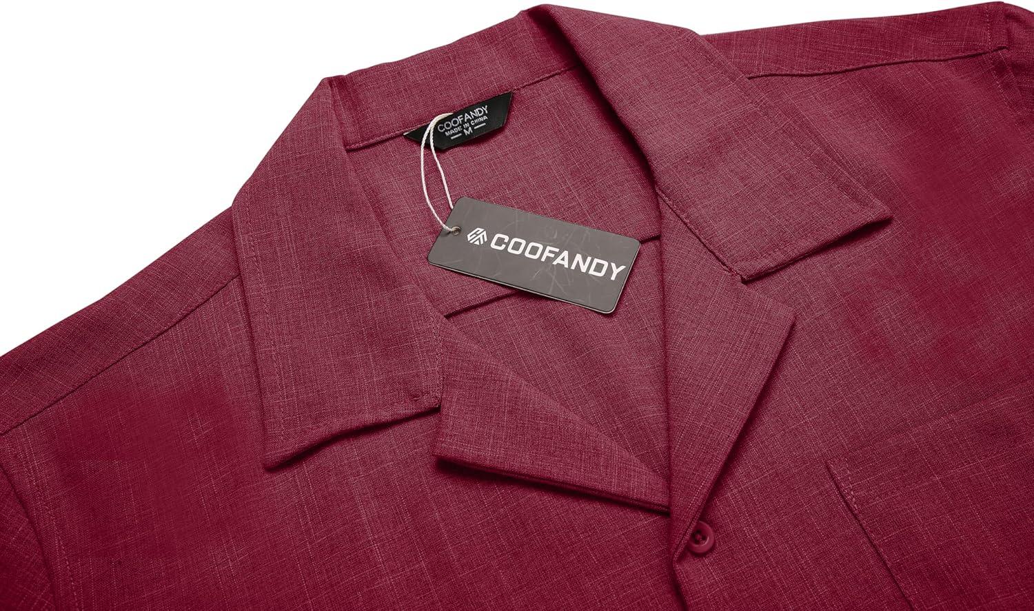 COOFANDY Men’s Casual Button Down Shirts Short Sleeve Summer Beach Shirt Cuban Vacation Textured Shirts with Pocket(Wine Red)