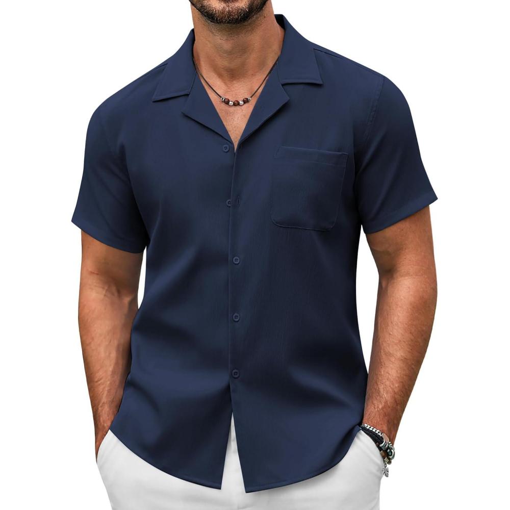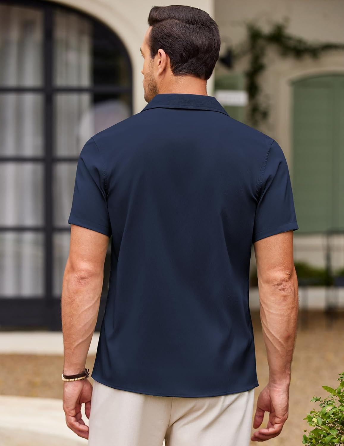 COOFANDY Men's Casual Button Down Shirts Short Sleeve Summer Beach Shirt Fashion Textured Shirts with Pocket(Navy)