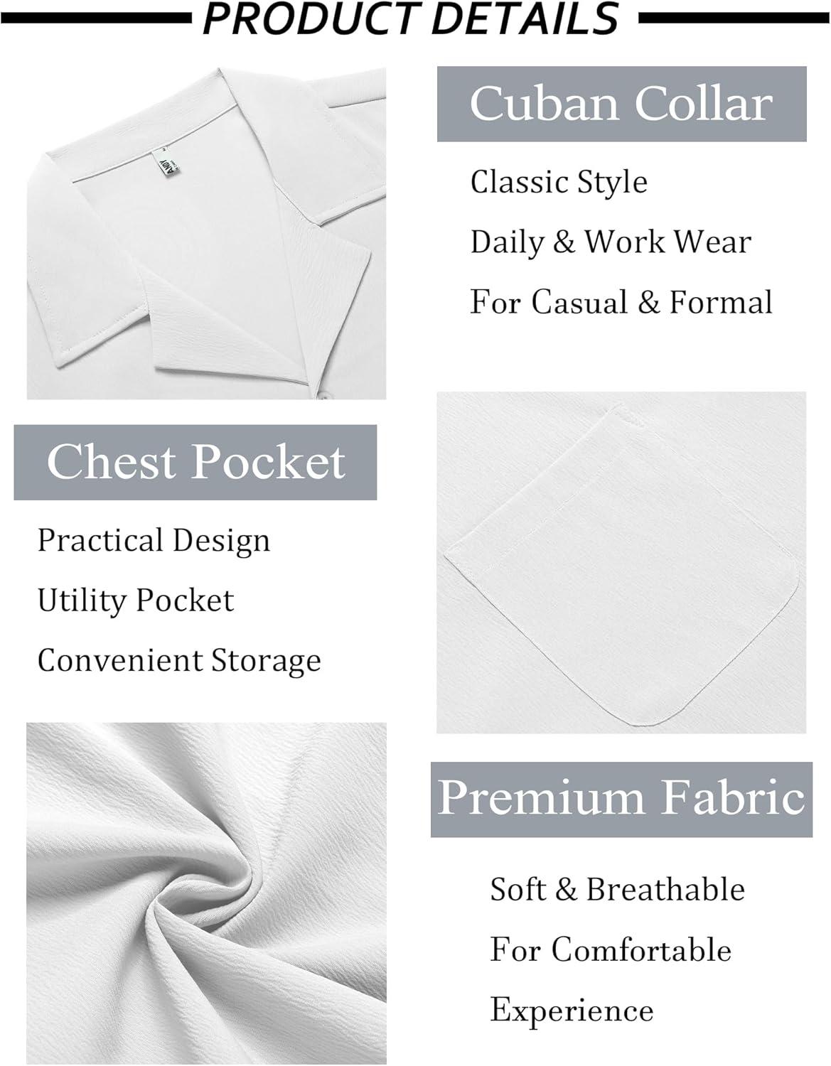 COOFANDY Men's Casual Button Down Shirts Short Sleeve Summer Beach Shirt Fashion Textured Shirts with Pocket(White)