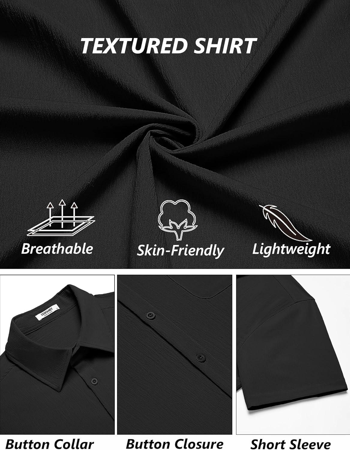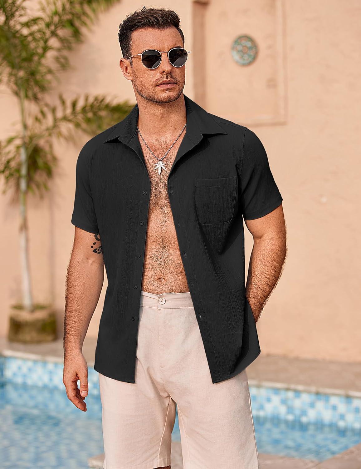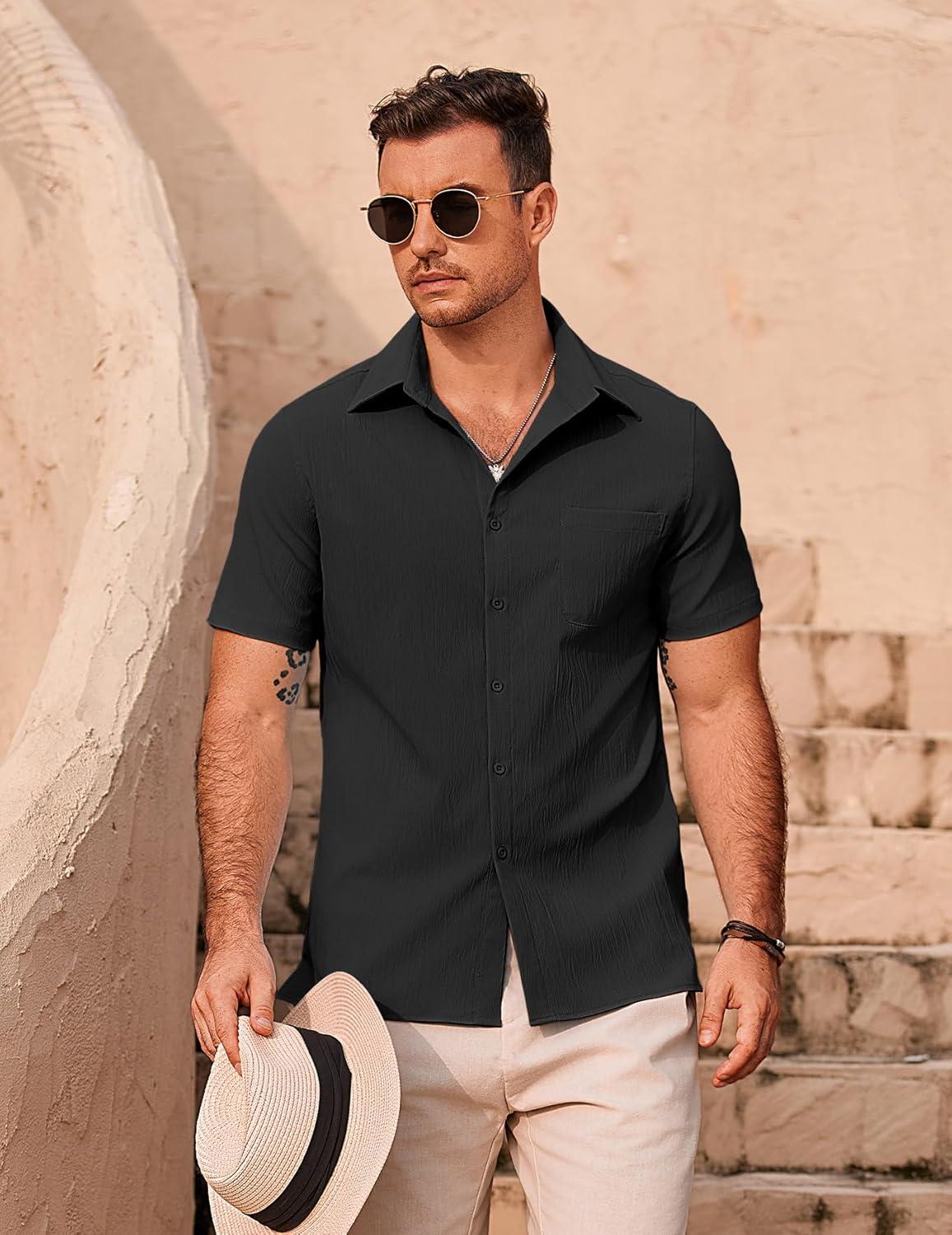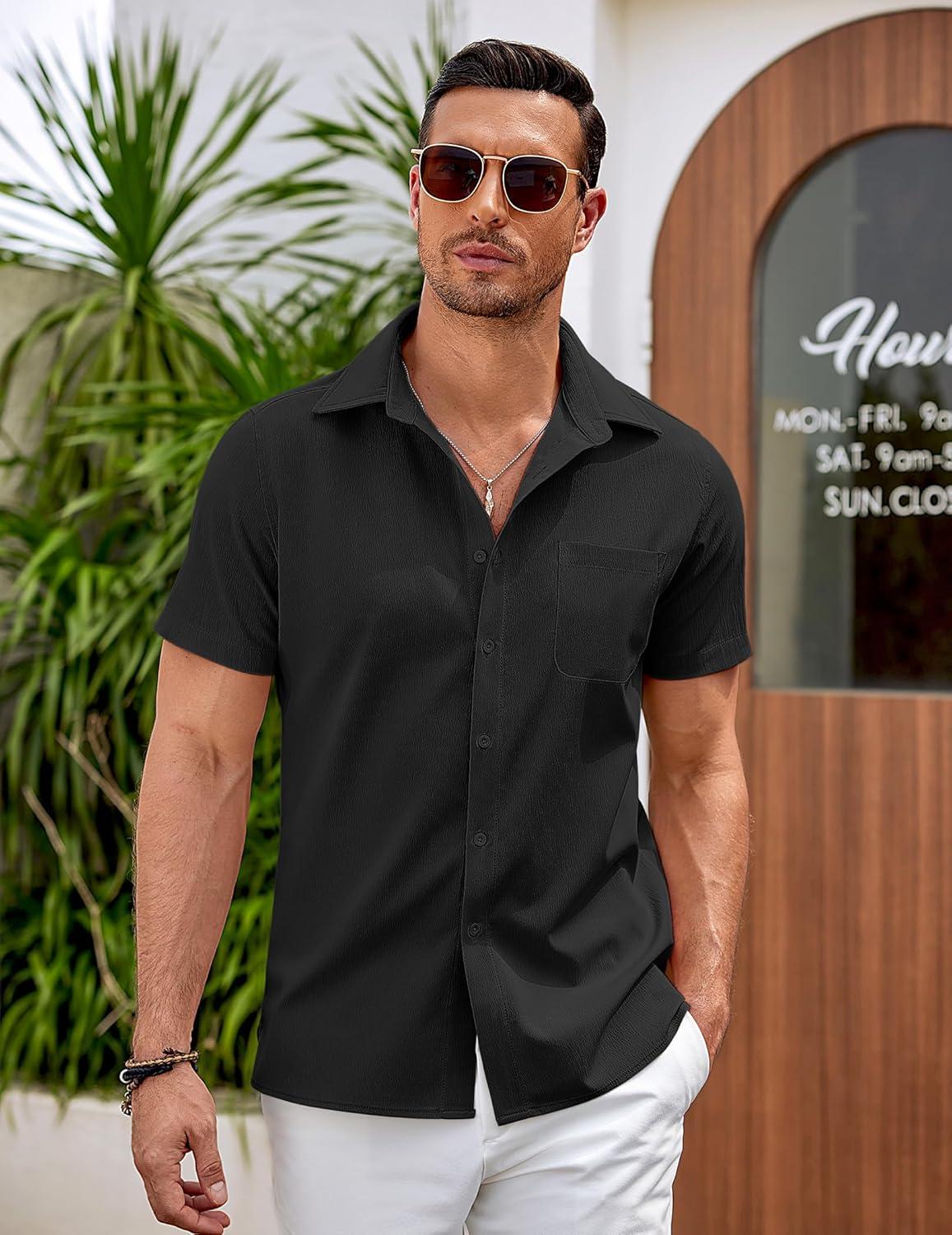 Get up to 70% off on COOFANDY Mens Casual Button Down Shirts Short Sleeve Summer Beach Vacation Shirts(A-black) styles during our end-of-season clearance event.