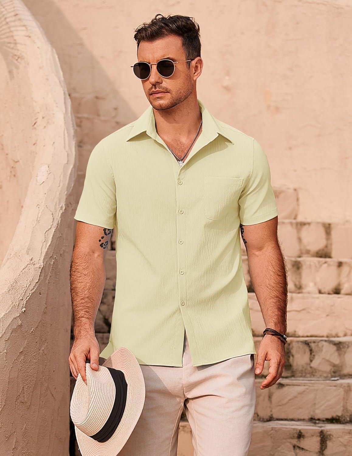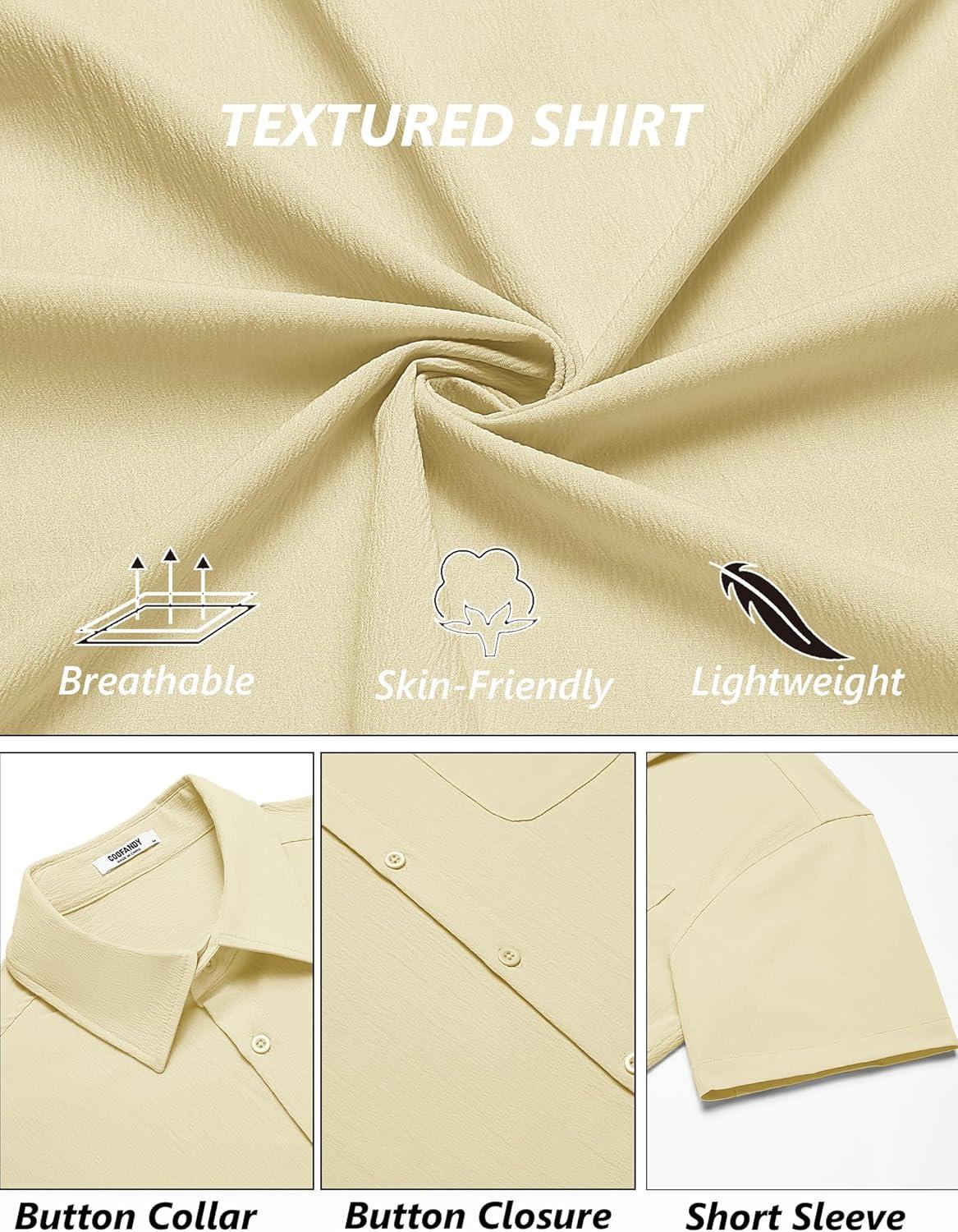 COOFANDY Mens Casual Button Down Shirts Short Sleeve Summer Beach Vacation Shirts(Beige)