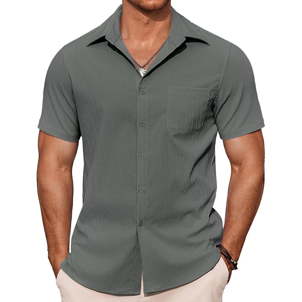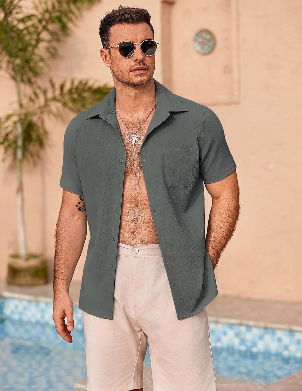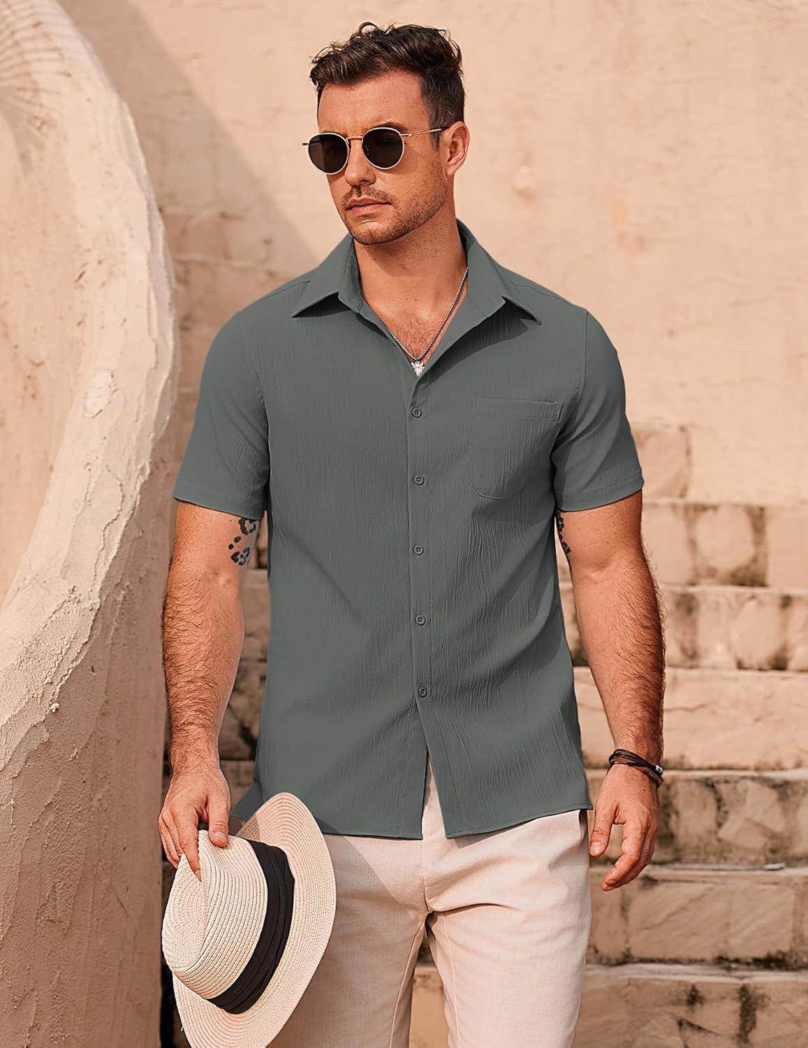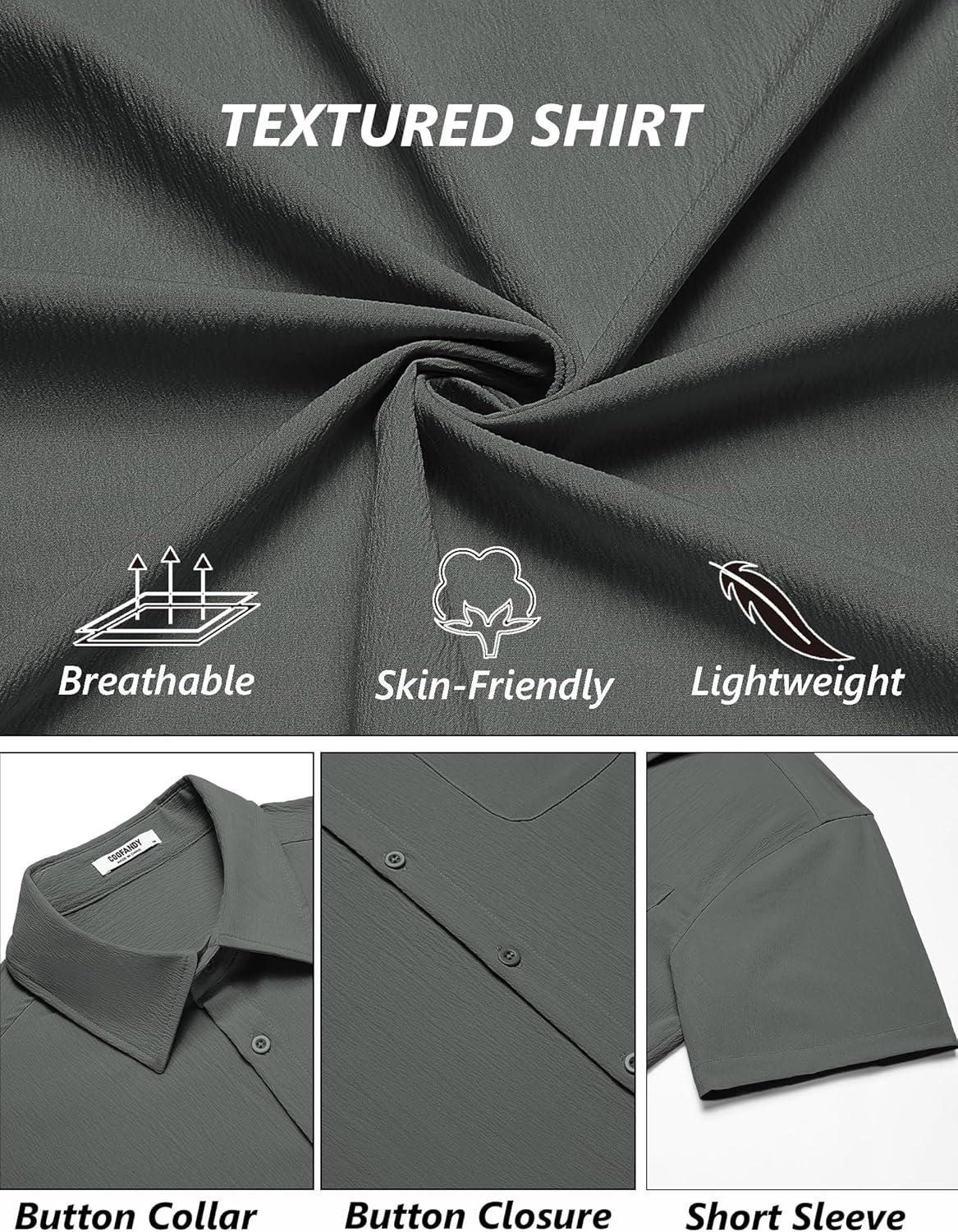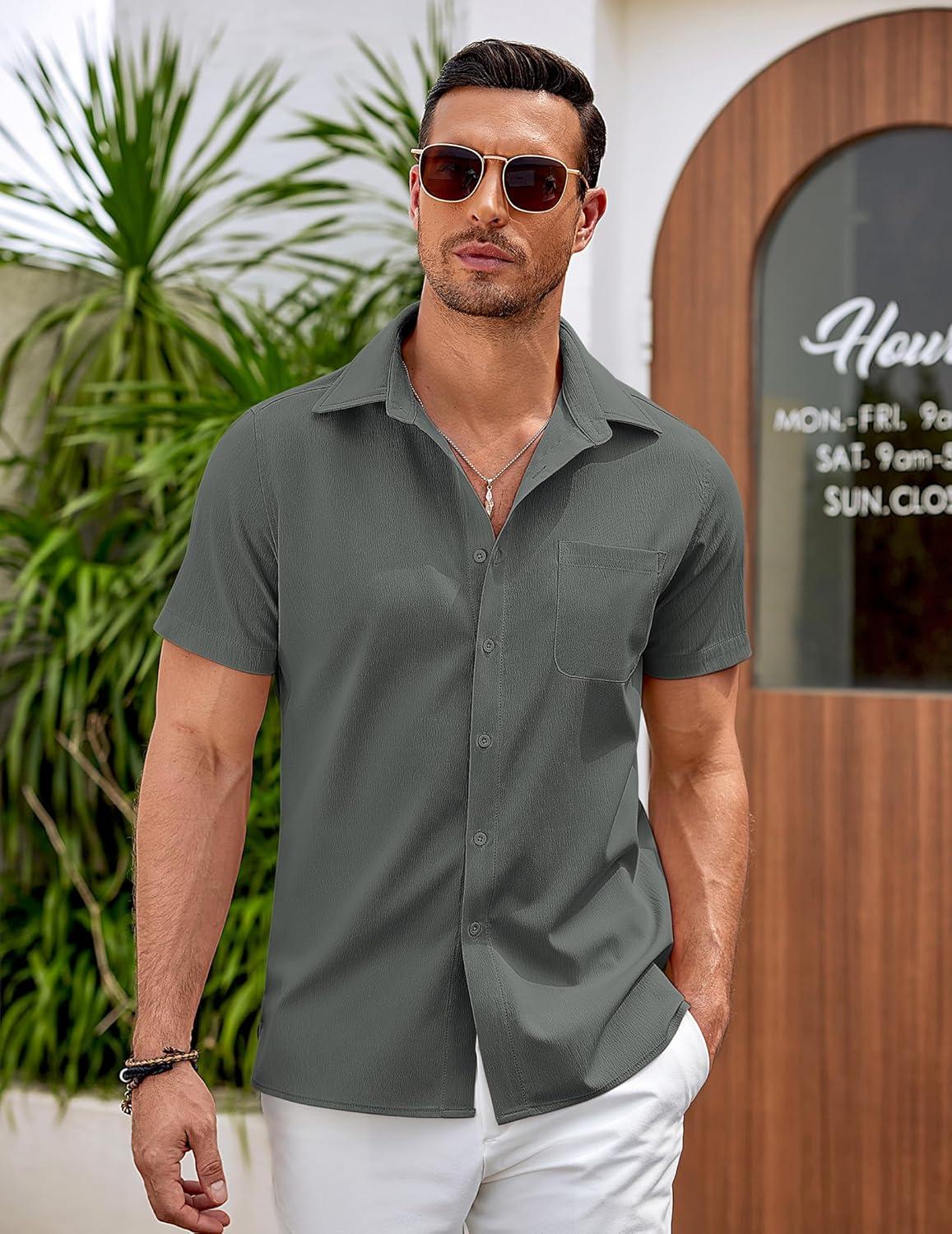 COOFANDY Mens Casual Button Down Shirts Short Sleeve Summer Beach Vacation Shirts(Dark Grey)
