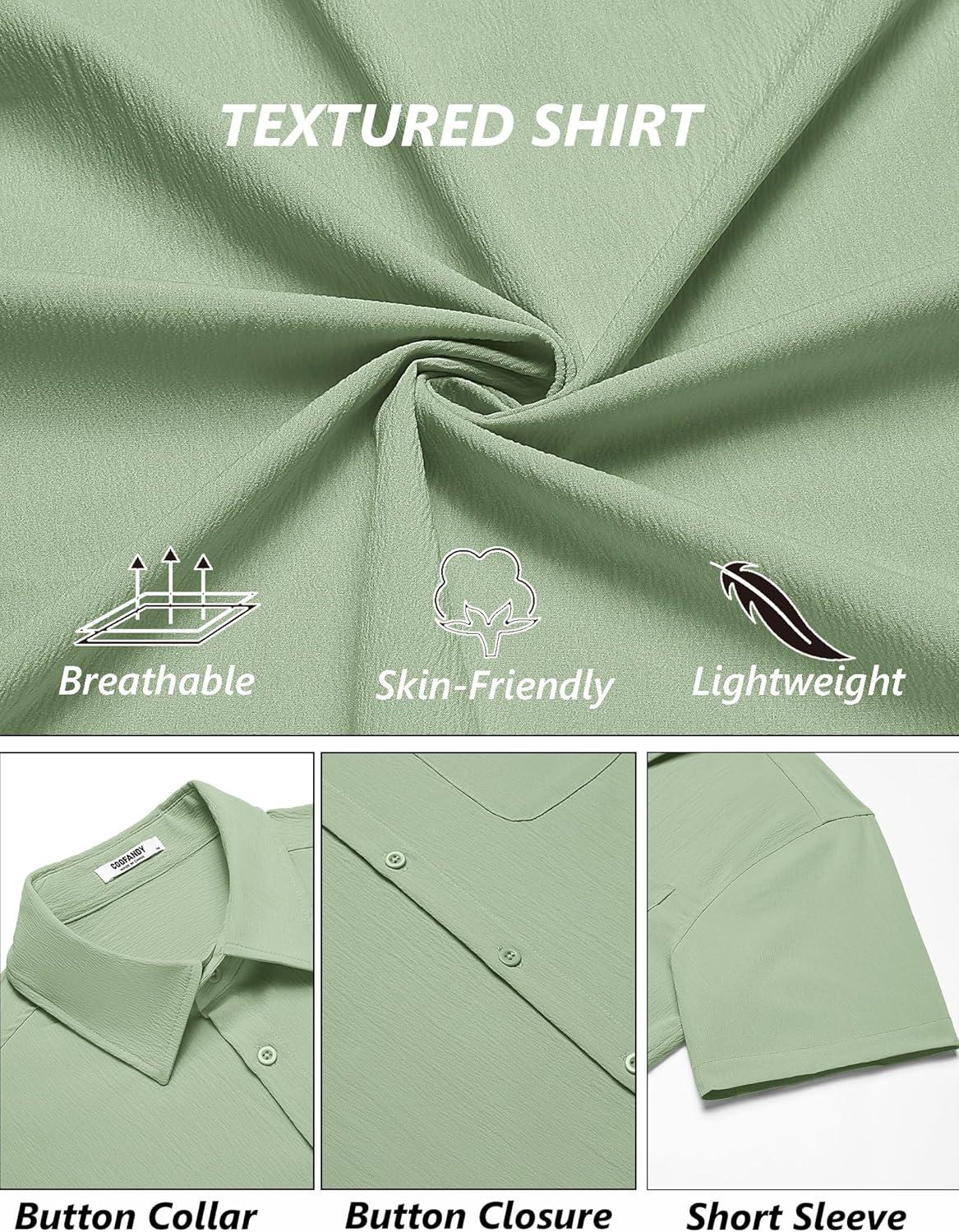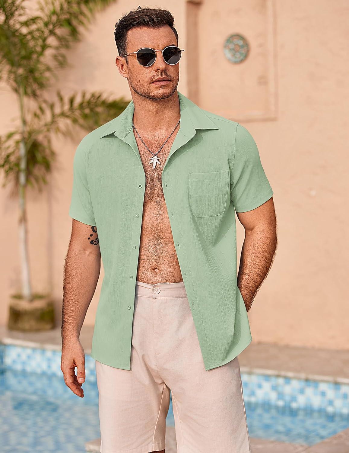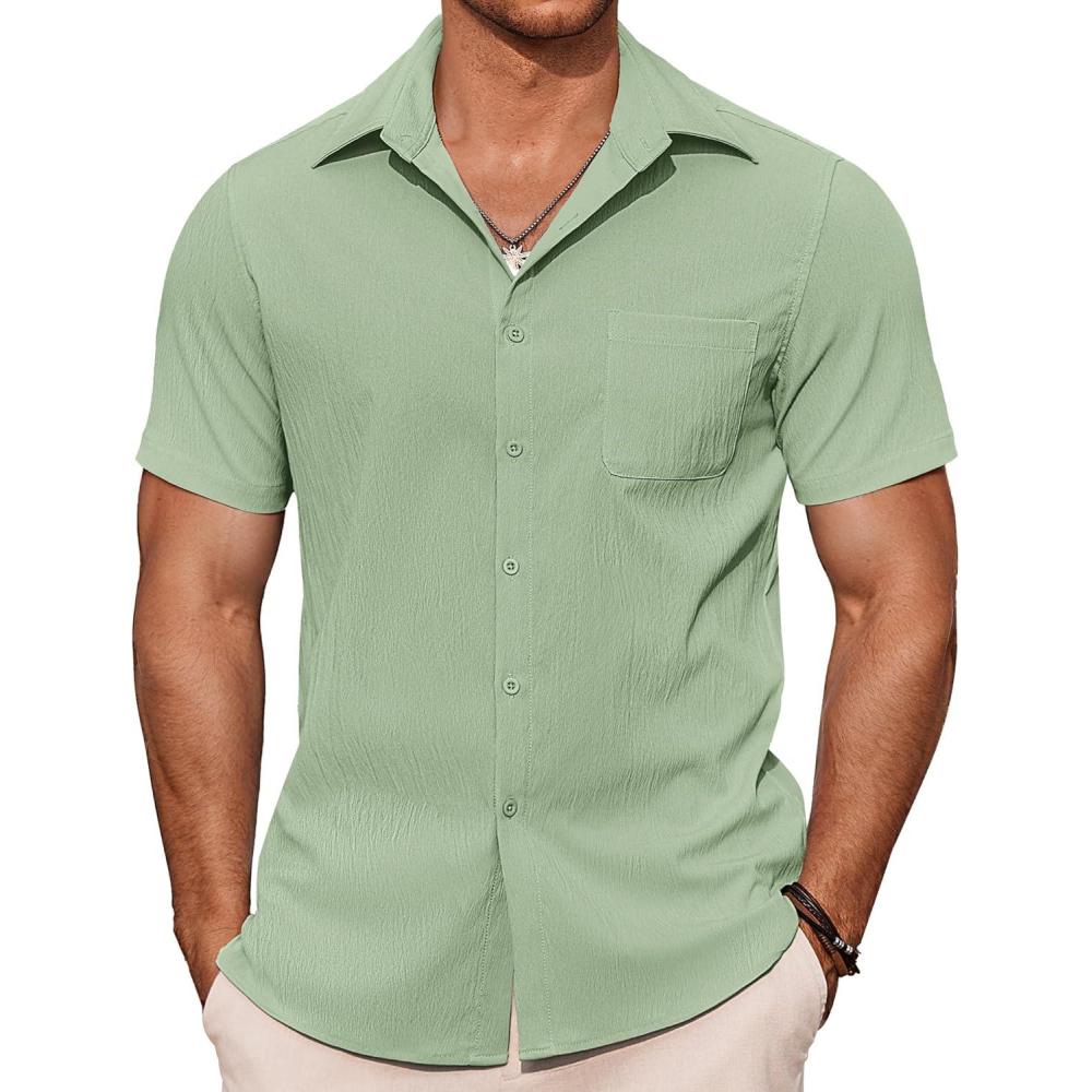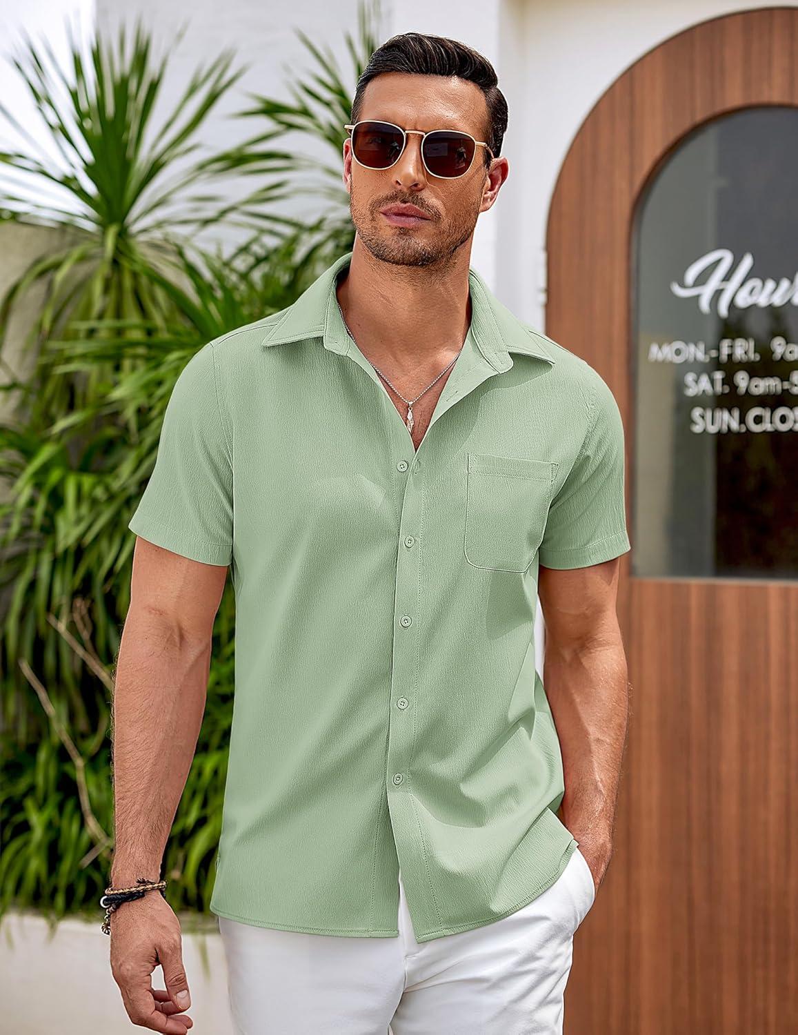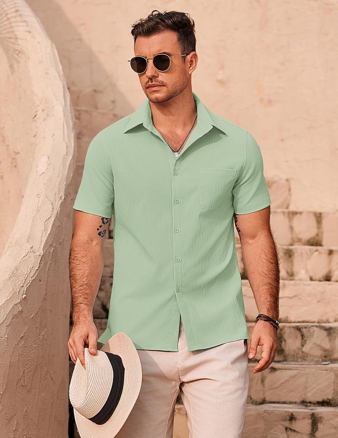 COOFANDY Mens Casual Button Down Shirts Short Sleeve Summer Beach Vacation Shirts(Light Green)
