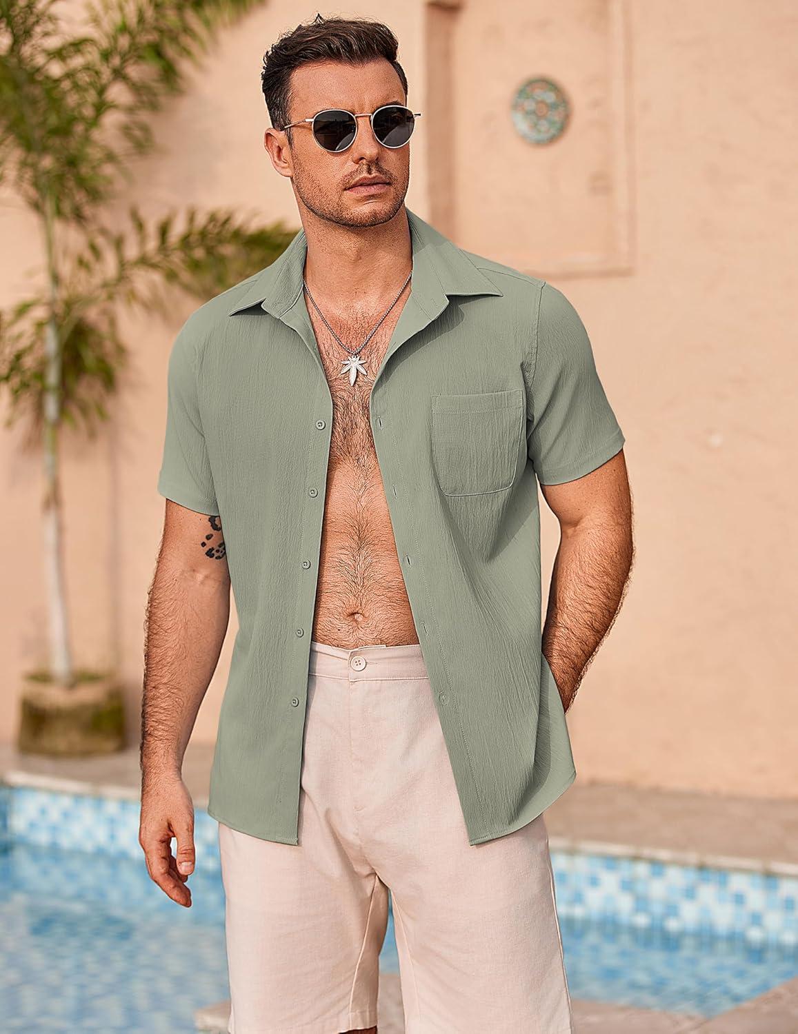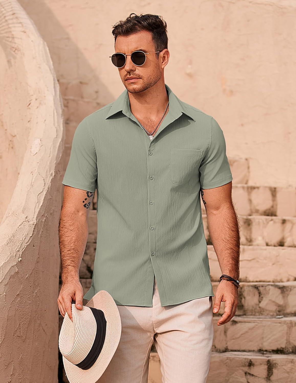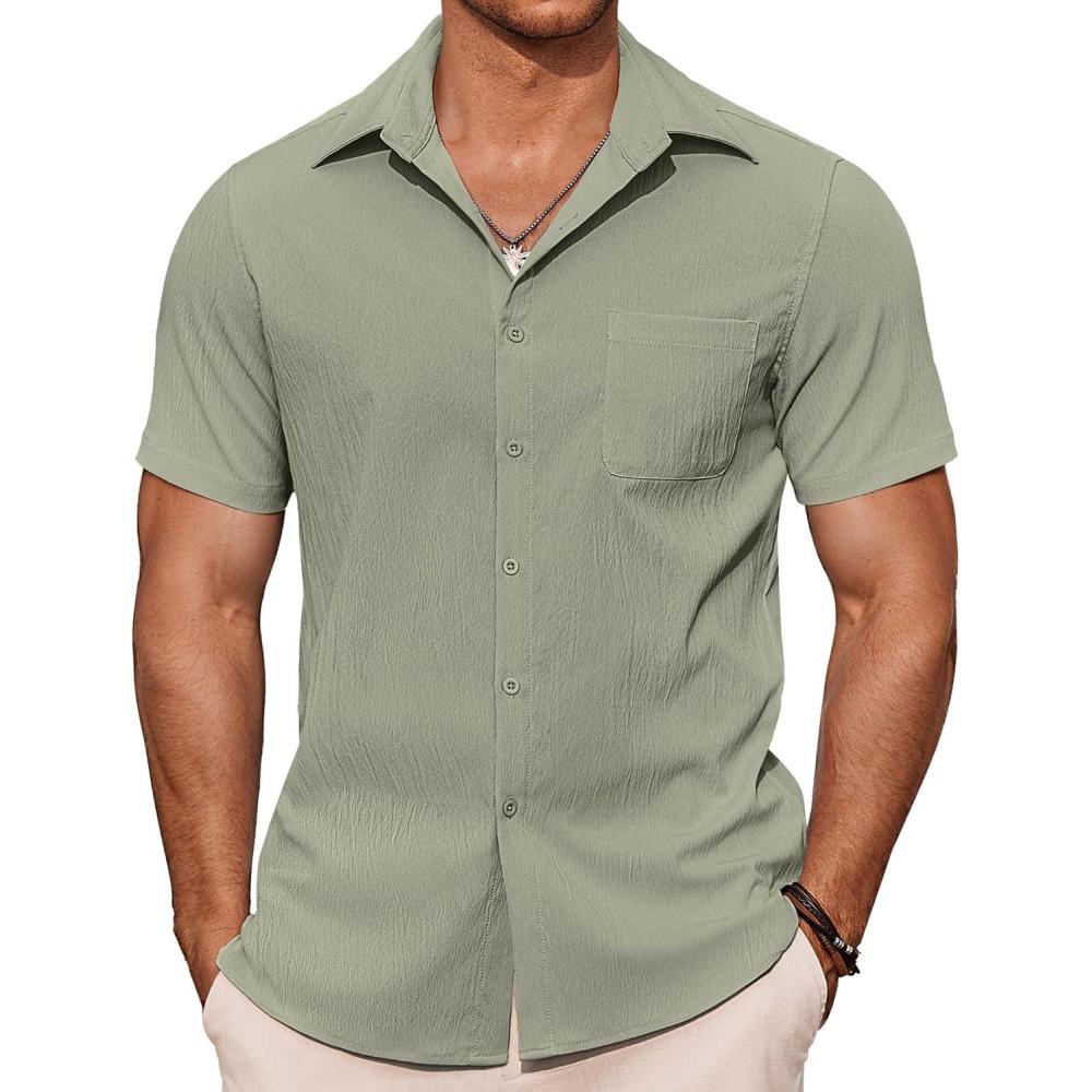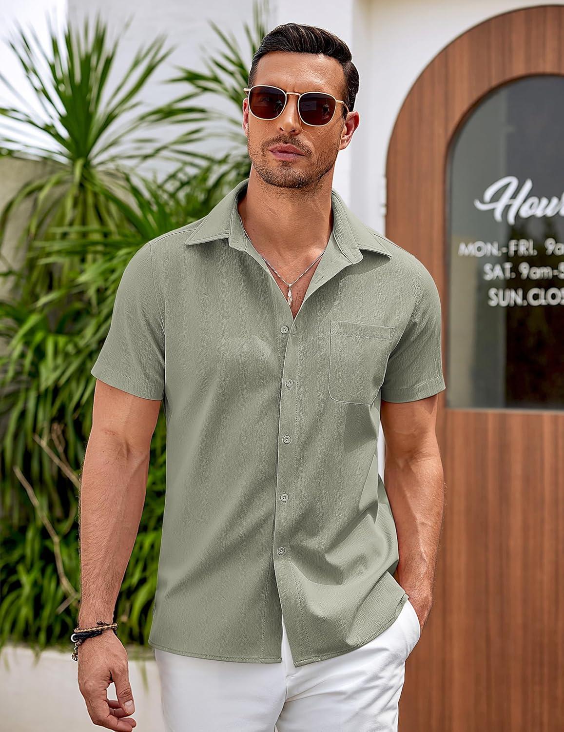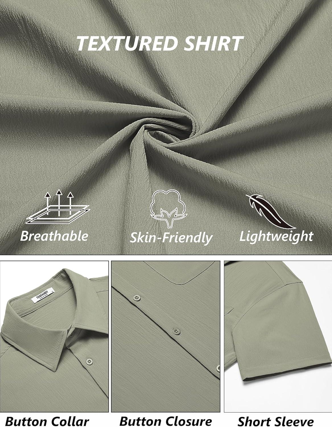 COOFANDY Mens Casual Button Down Shirts Short Sleeve Summer Beach Vacation Shirts(Light Grey)
