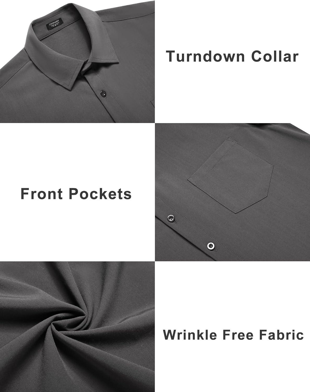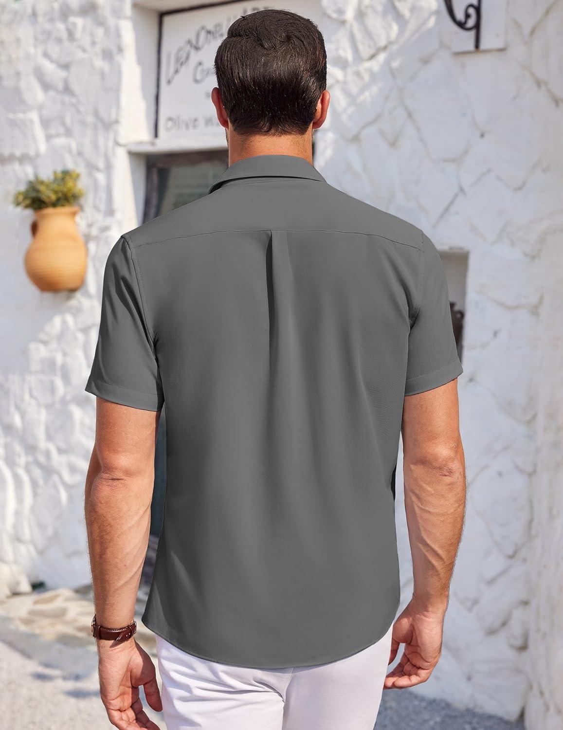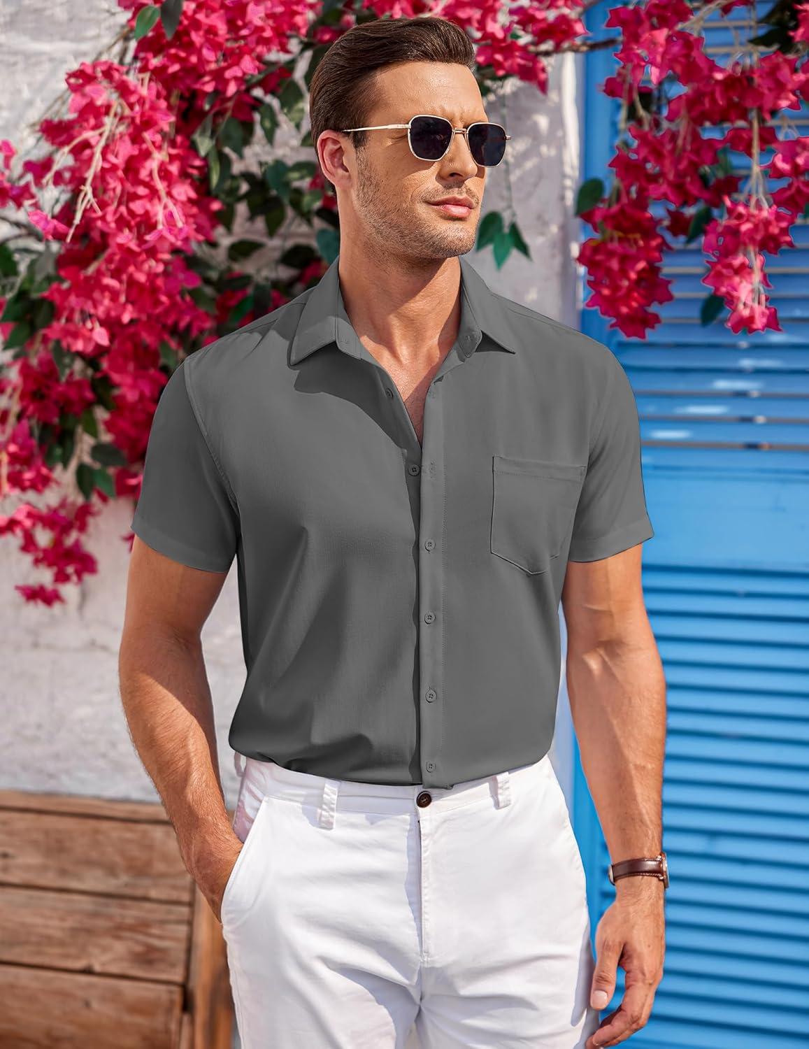 COOFANDY Men’s Casual Button Down Shirts Short Sleeve Summer Beach Vacation Untucked Dress Shirts with Pocket(Dark Gray)