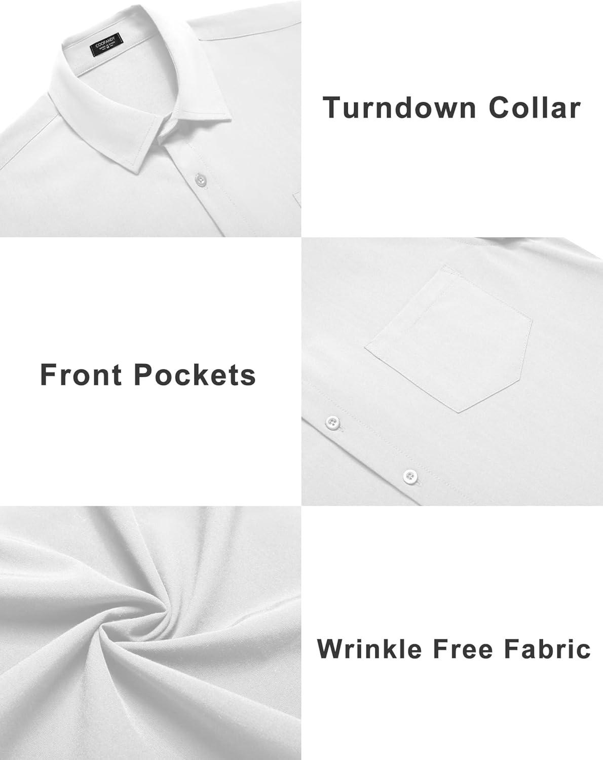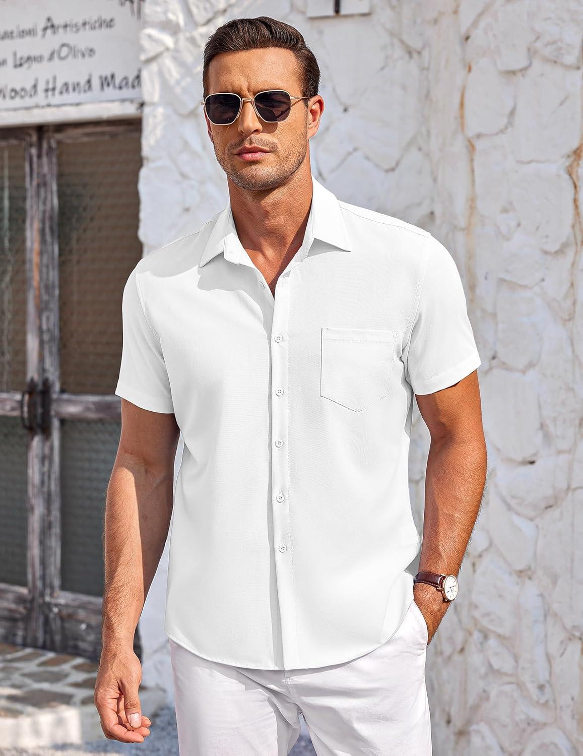 COOFANDY Men's Casual Button Down Shirts Short Sleeve Summer Beach Vacation Untucked Dress Shirts with Pocket(White)