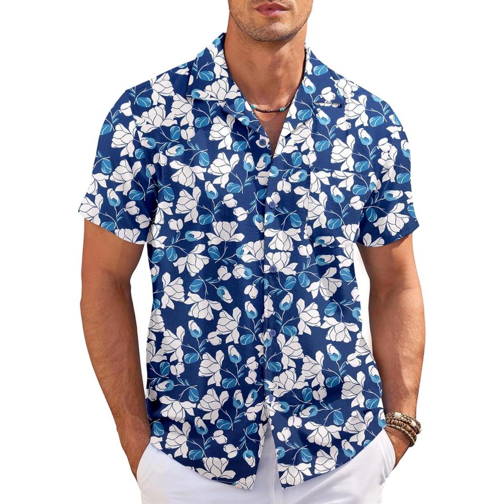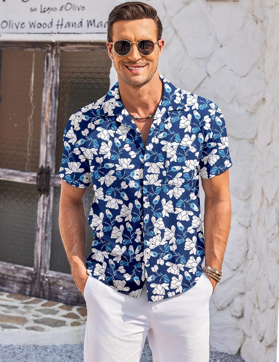 COOFANDY Men’s Casual Button Down Shirts Short Sleeve Summer Cuban Vacation Beach Shirts(Navy Blue Floral)