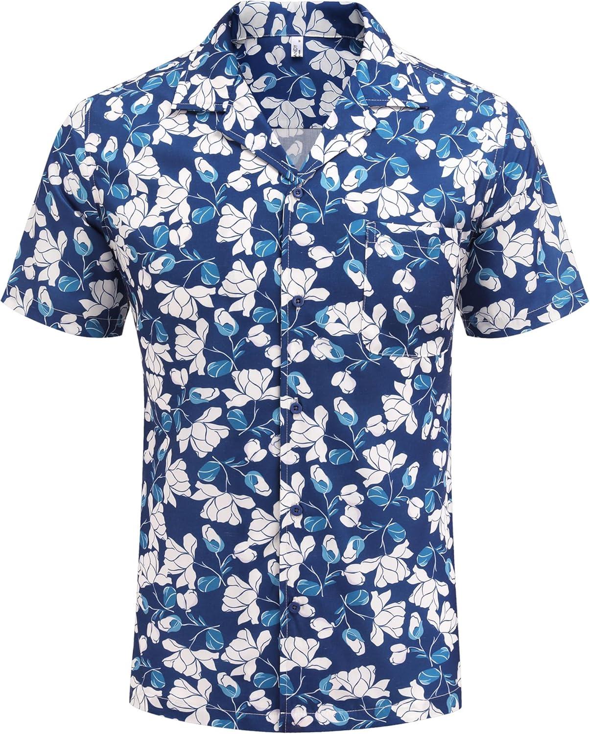COOFANDY Men's Casual Button Down Shirts Short Sleeve Summer Cuban Vacation Beach Shirts(Navy Blue Floral)