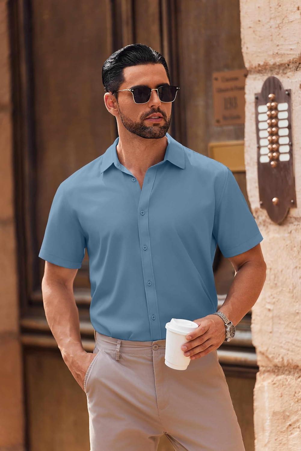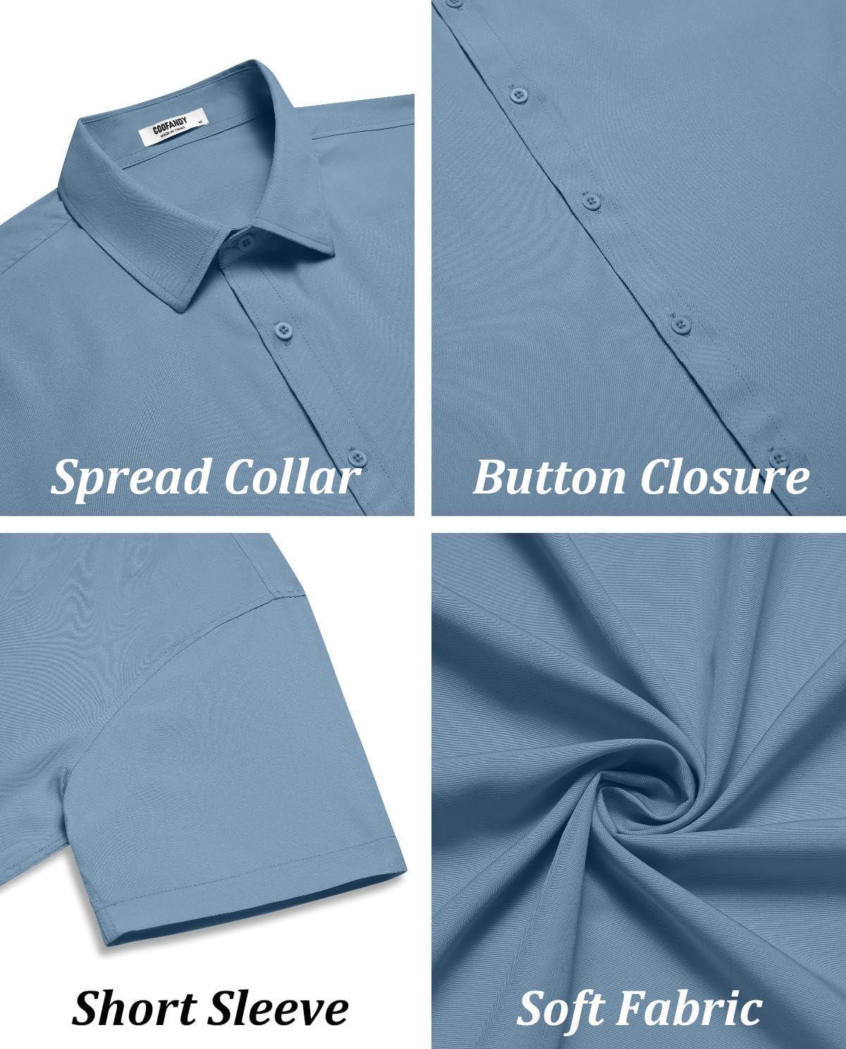 COOFANDY Men's Casual Button Down Shirts Short Sleeve Summer Untucked Dress Shirts(Captain Blue)