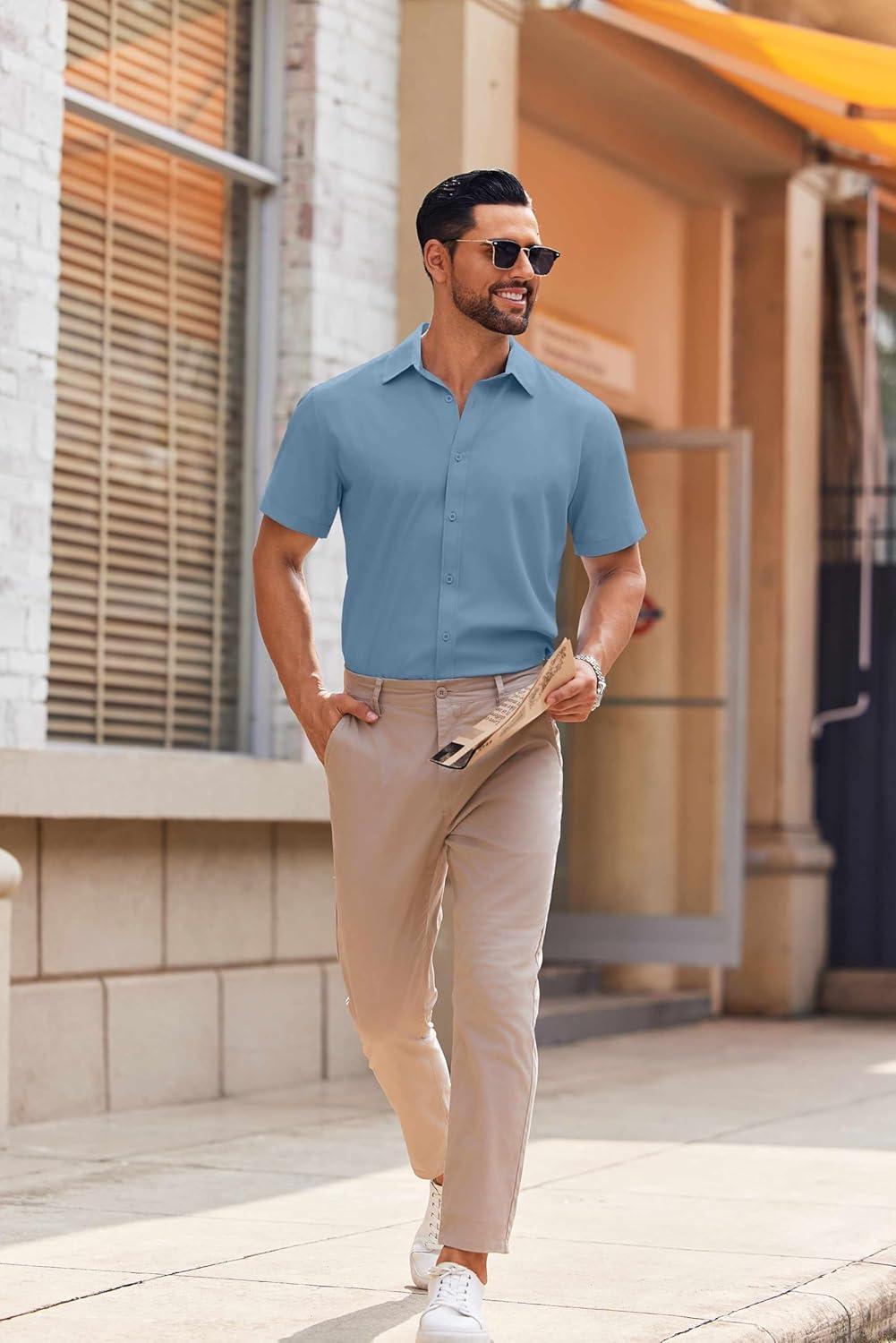 COOFANDY Men’s Casual Button Down Shirts Short Sleeve Summer Untucked Dress Shirts(Light Green)