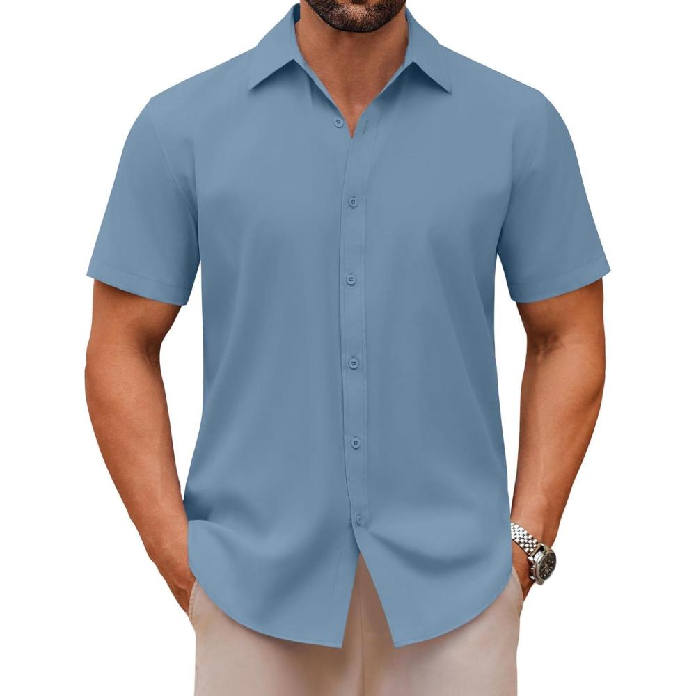 COOFANDY Men’s Casual Button Down Shirts Short Sleeve Summer Untucked Dress Shirts(Captain Blue)