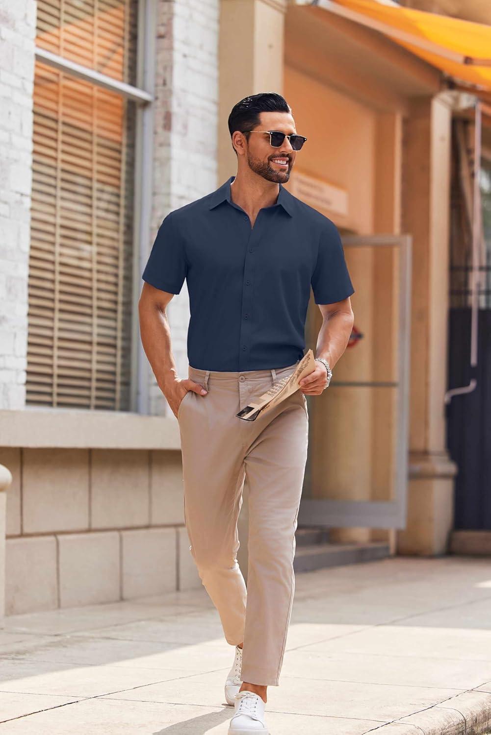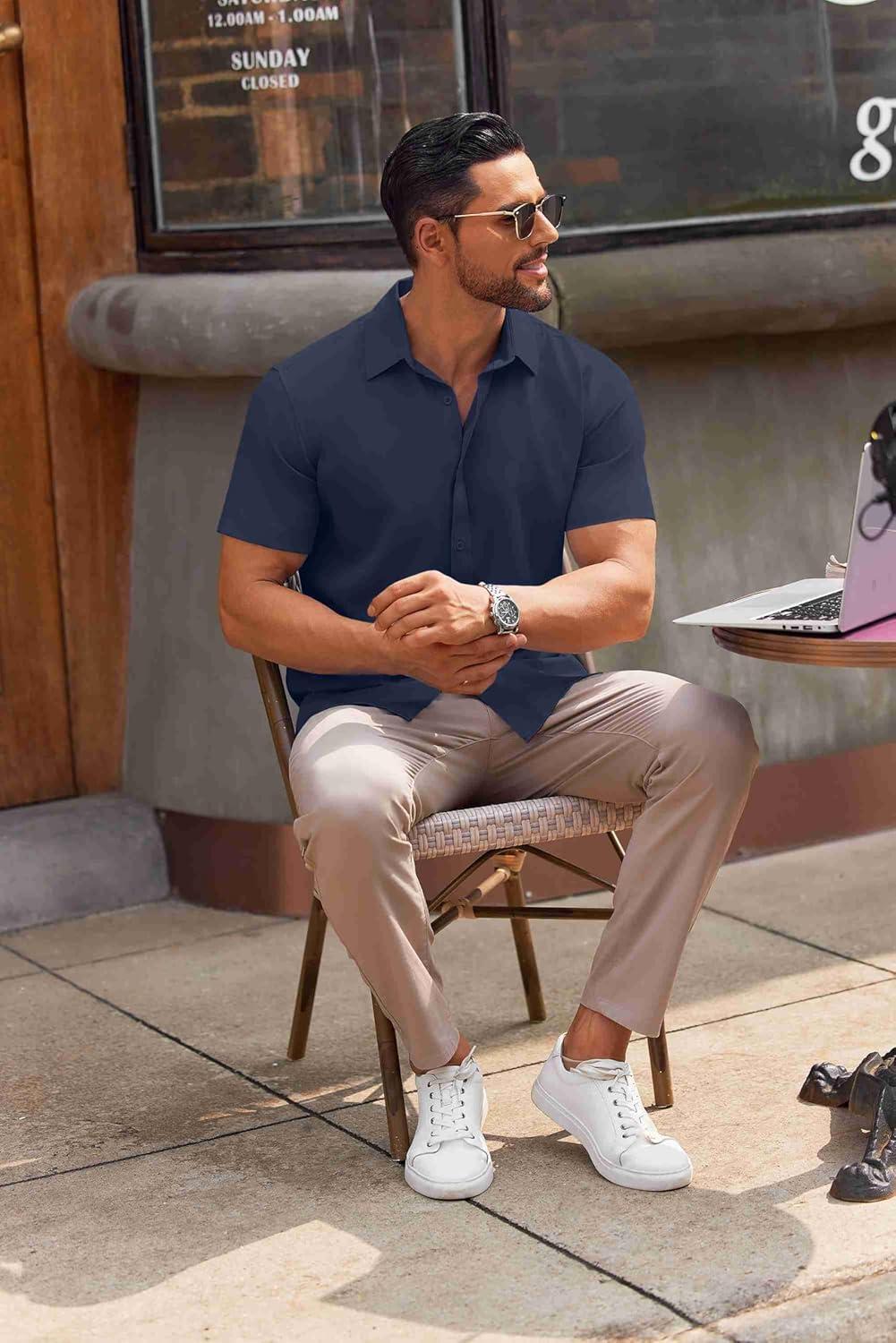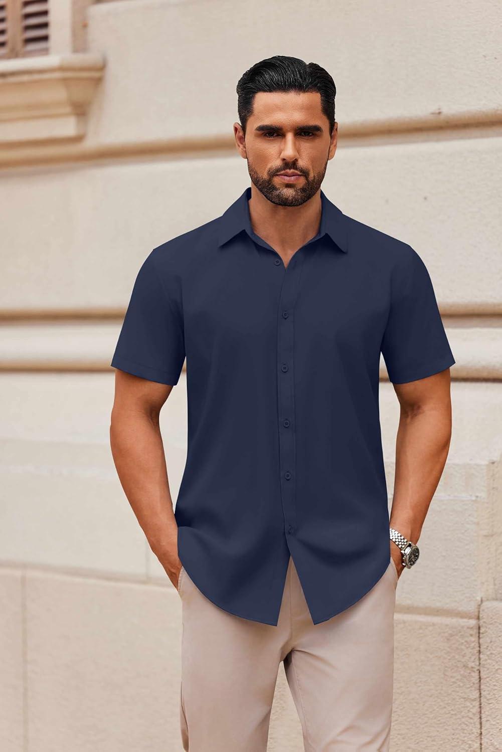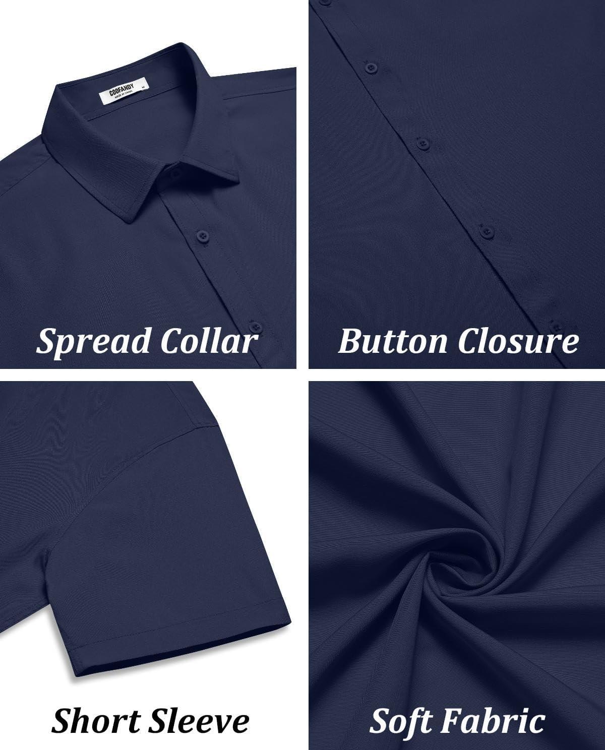 COOFANDY Men’s Casual Button Down Shirts Short Sleeve Summer Untucked Dress Shirts(Navy Blue)