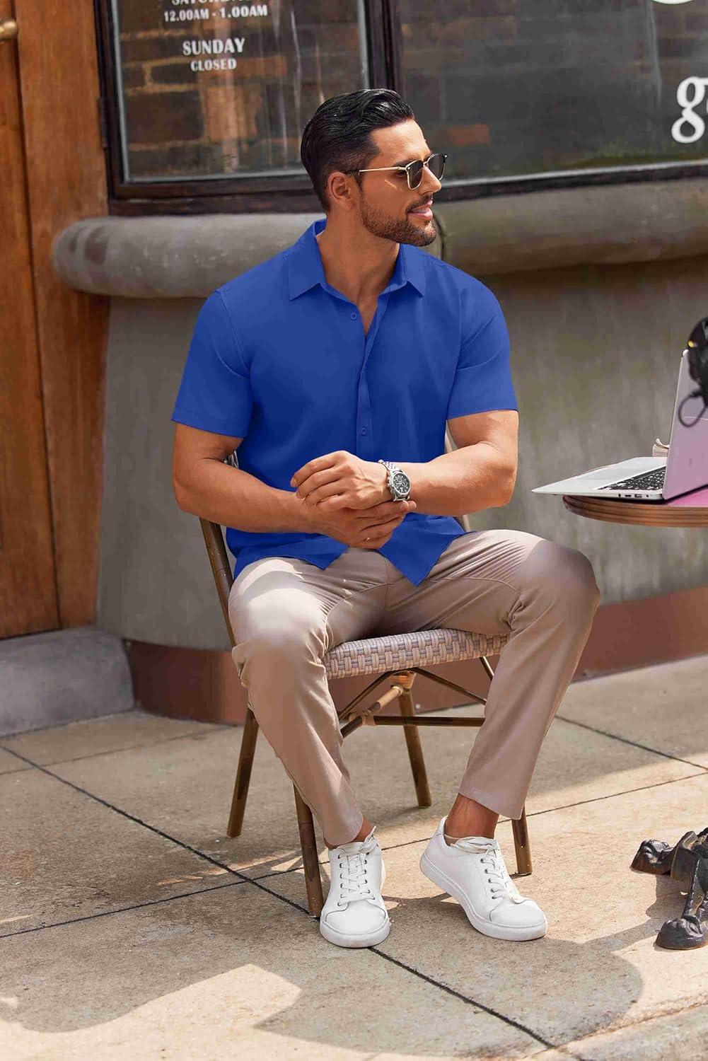 COOFANDY Men's Casual Button Down Shirts Short Sleeve Summer Untucked Dress Shirts(Ocean Blue)