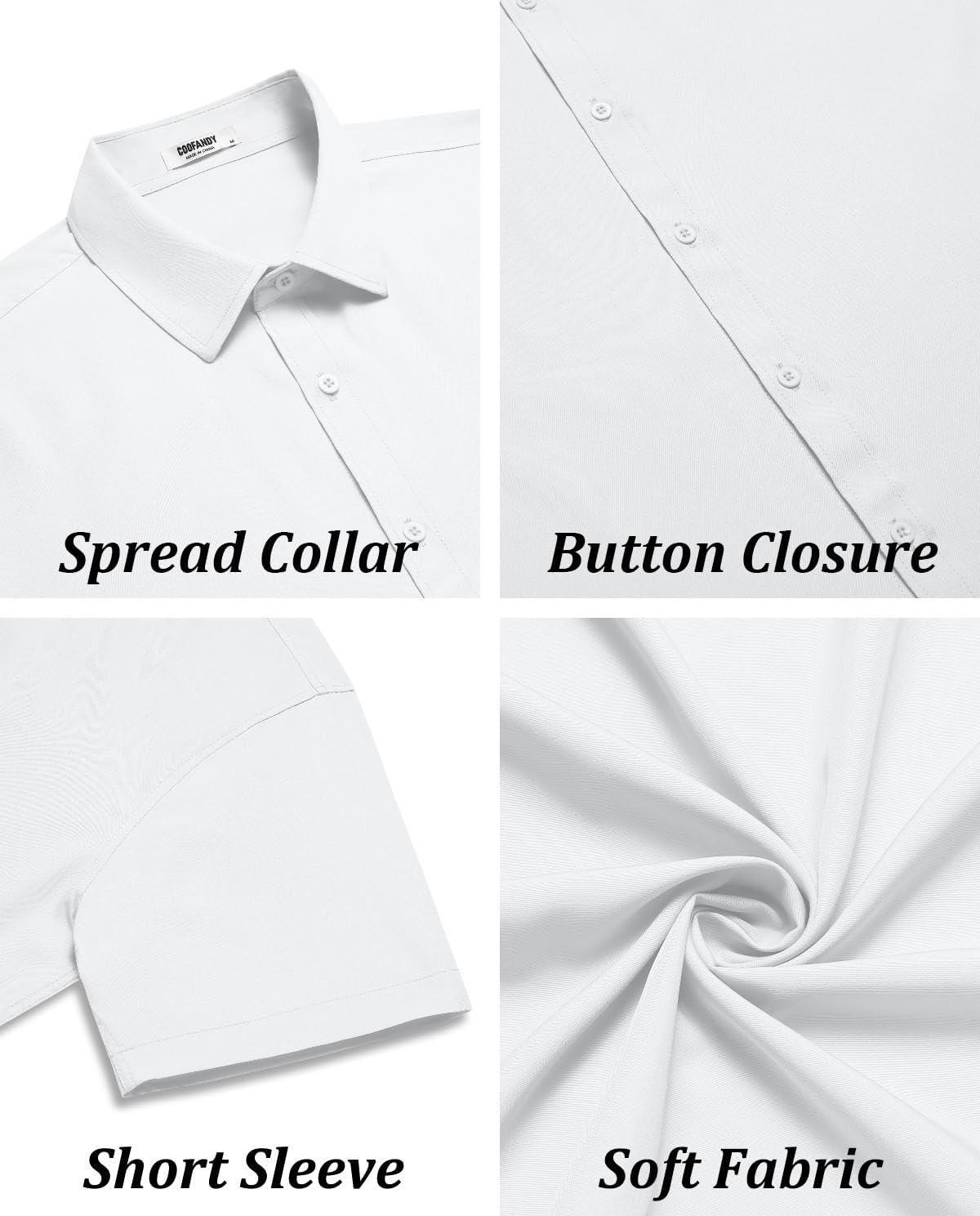COOFANDY Men's Casual Button Down Shirts Short Sleeve Summer Untucked Dress Shirts(White)