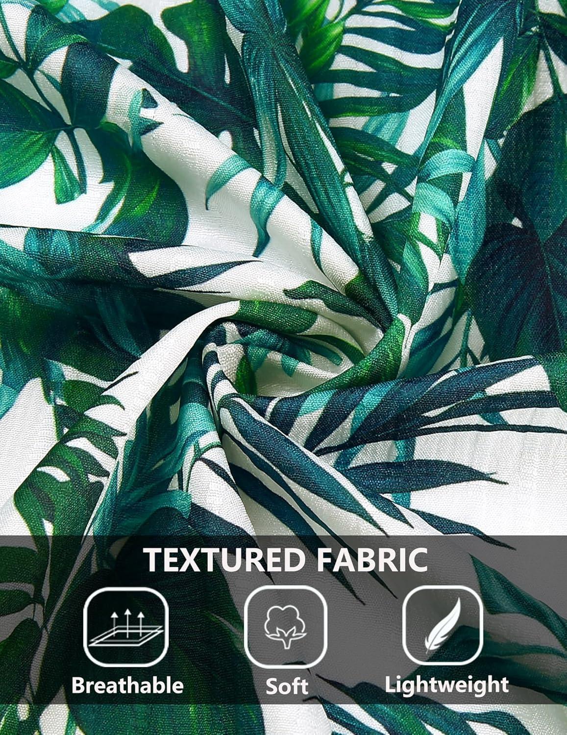 COOFANDY Mens Casual Button Down Shirts Short Sleeve Textured Shirt Summer Beach Shirts for Men(White-green Leaves)
