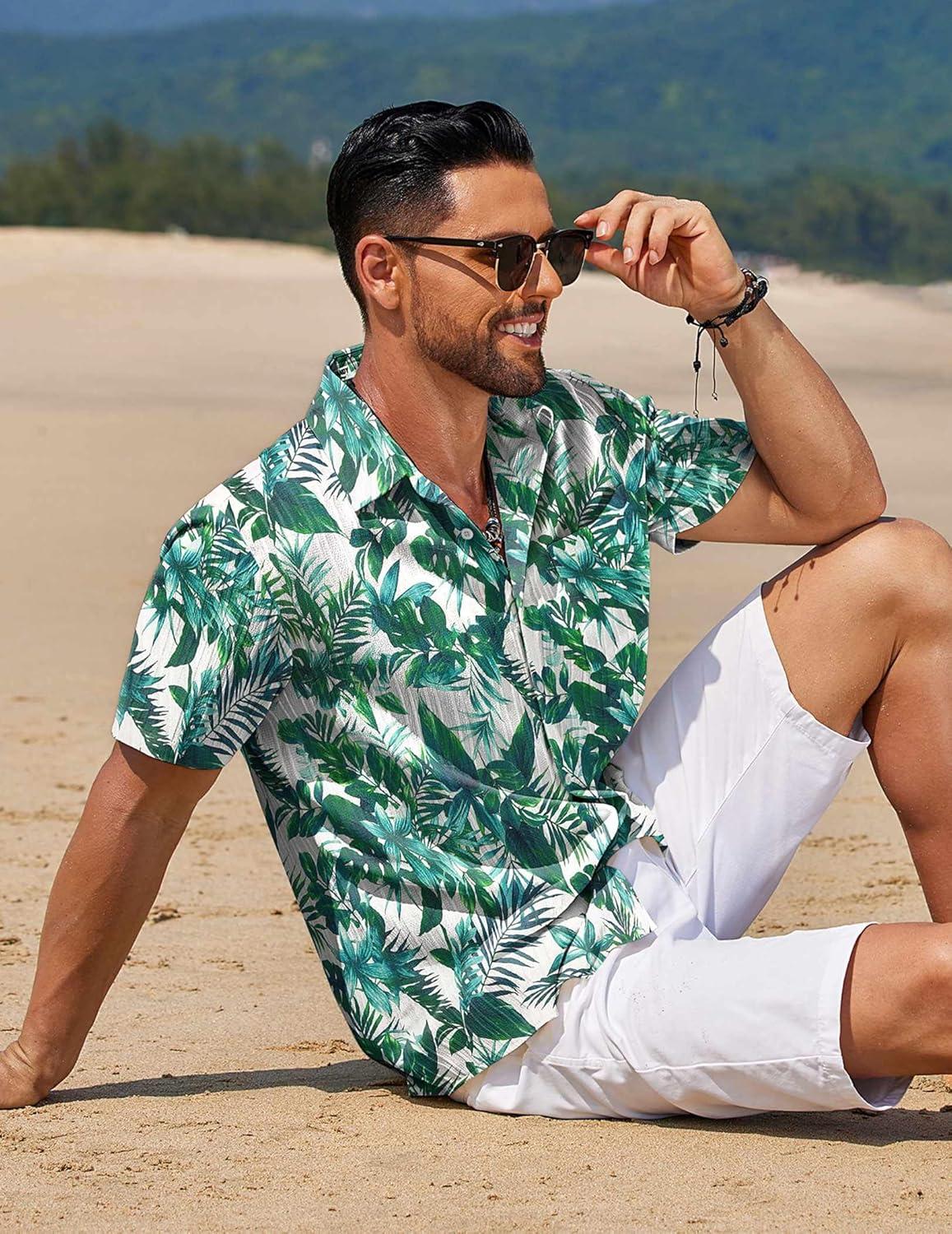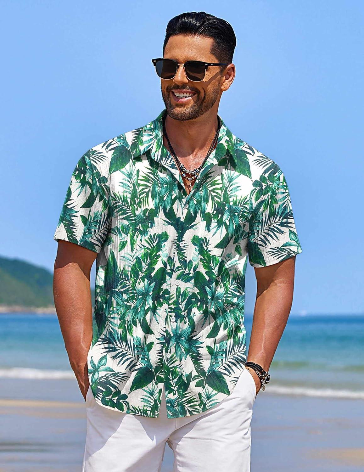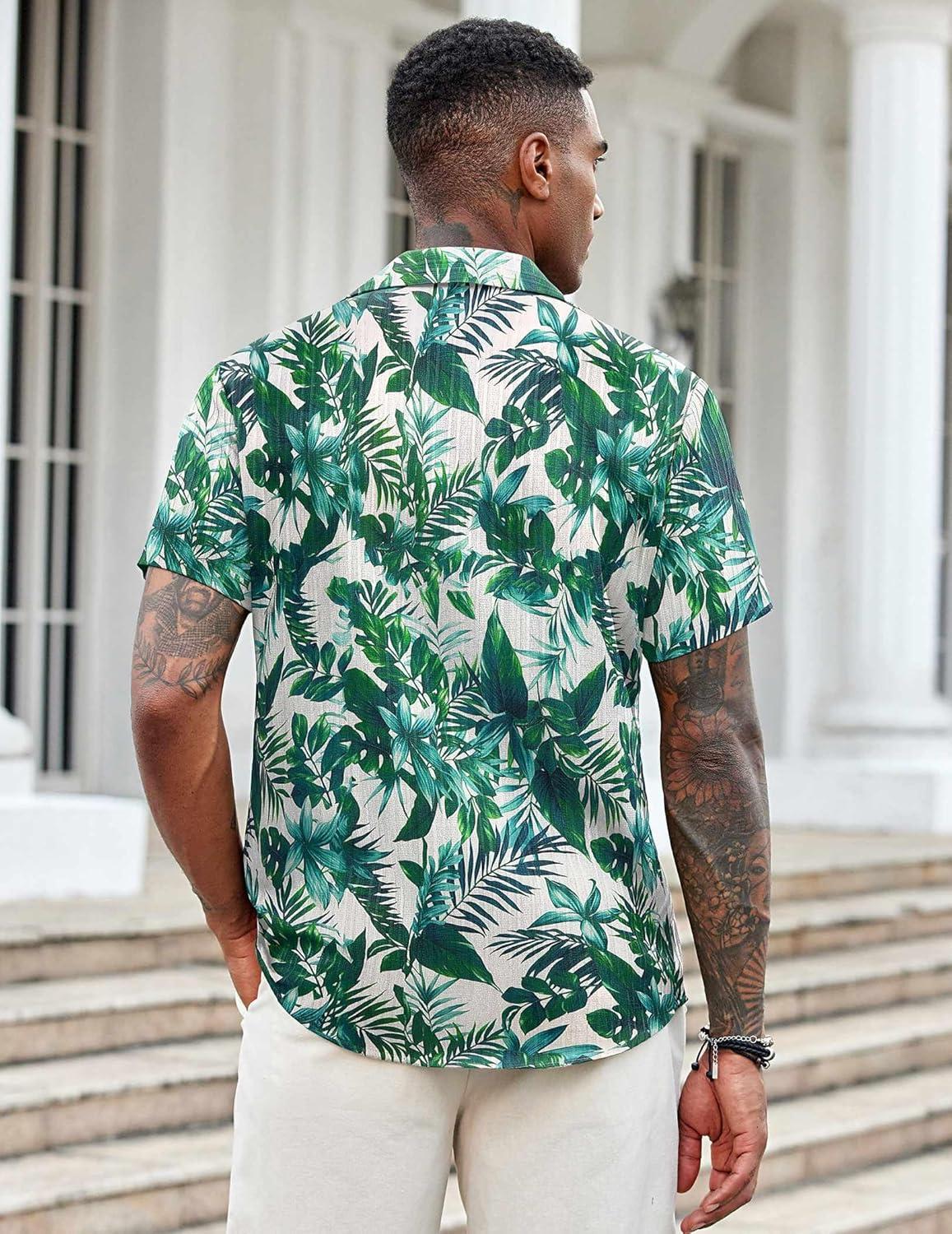 Don’t miss out on our limited-time offer: buy COOFANDY Mens Casual Button Down Shirts Short Sleeve Textured Shirt Summer Beach Shirts for Men(White-green Leaves), get a free {accessory}!