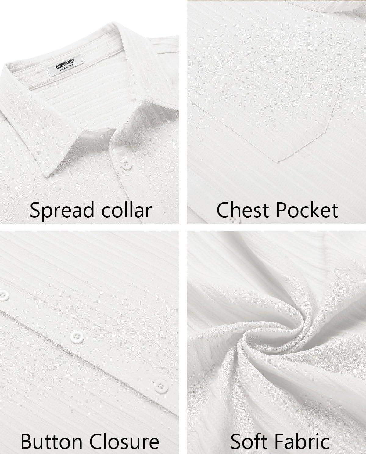 COOFANDY Men's Casual Button Down Shirts Short Sleeve Textured Summer Beach Shirt with Pocket(A-white)