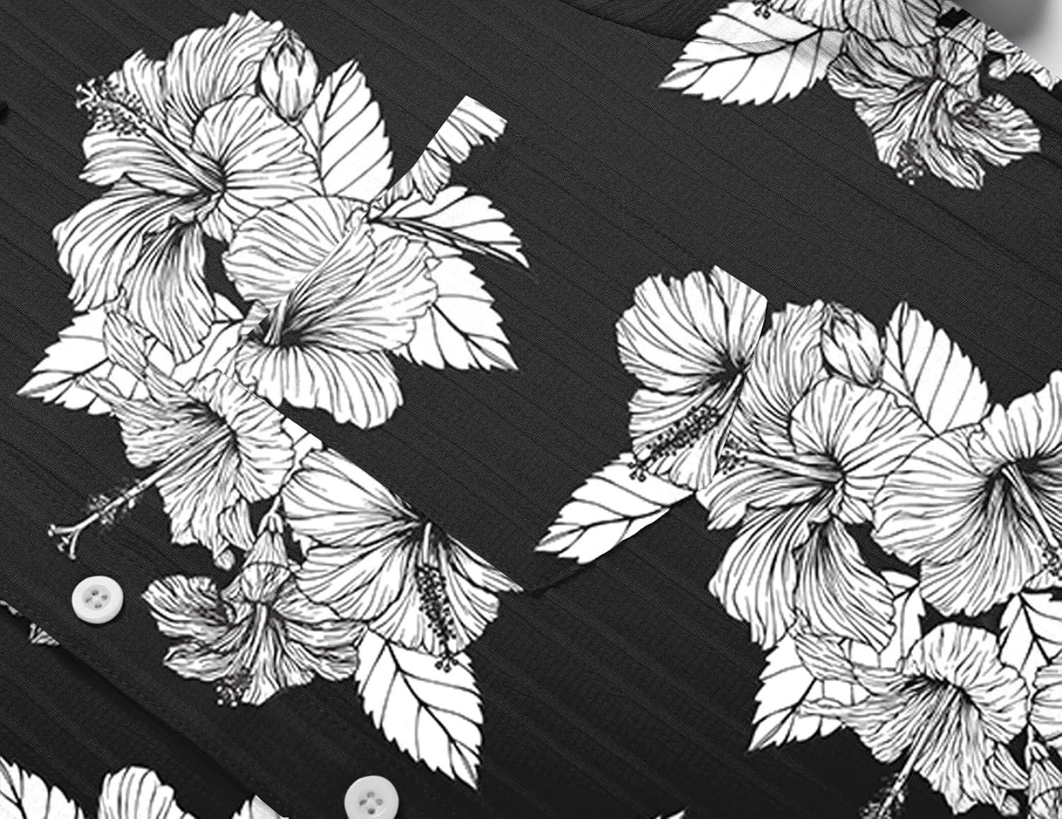 COOFANDY Men’s Casual Button Down Shirts Short Sleeve Textured Summer Beach Shirt with Pocket(Black-white Floral)