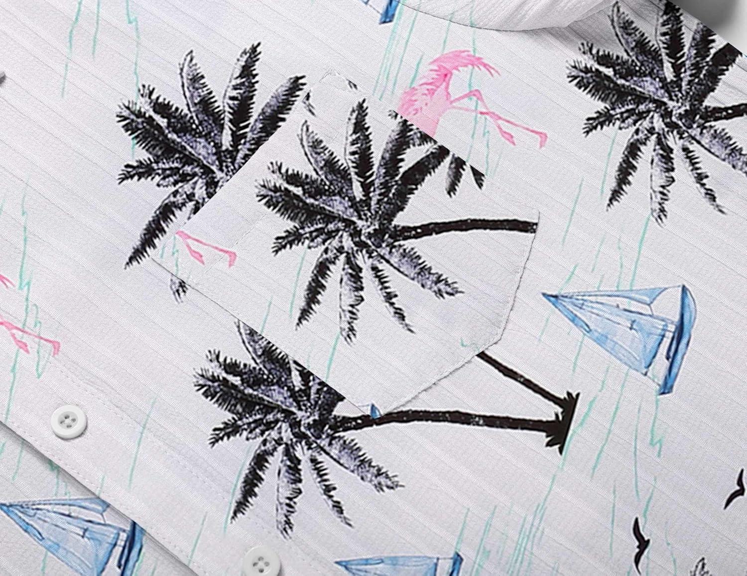 COOFANDY Men’s Casual Button Down Shirts Short Sleeve Textured Summer Beach Shirt with Pocket(Hibiscus Flower-pink)