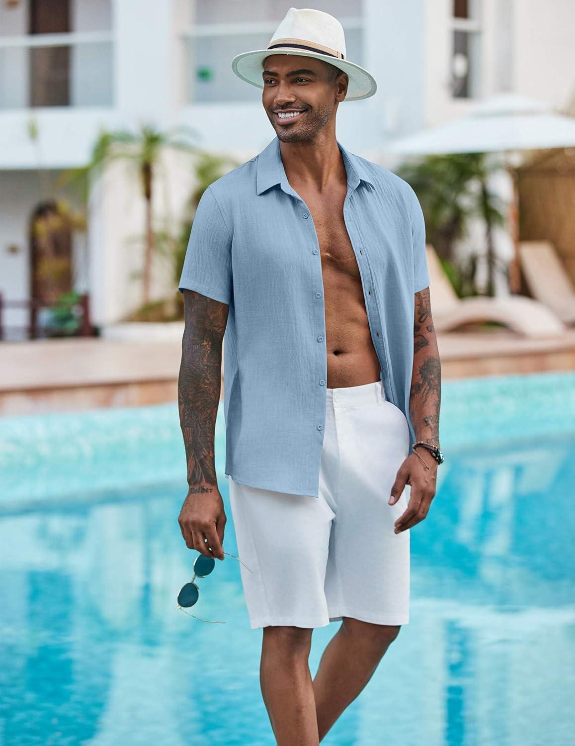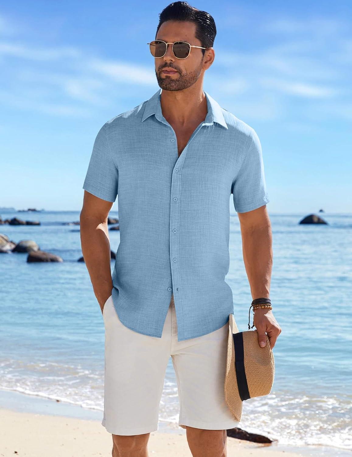 Save big on COOFANDY Men’s Casual Button Down Shirts Short Sleeve Textured Summer Beach Shirt(Beau Blue) and accessories during our BOGO sale. Buy one, get one 50% off!