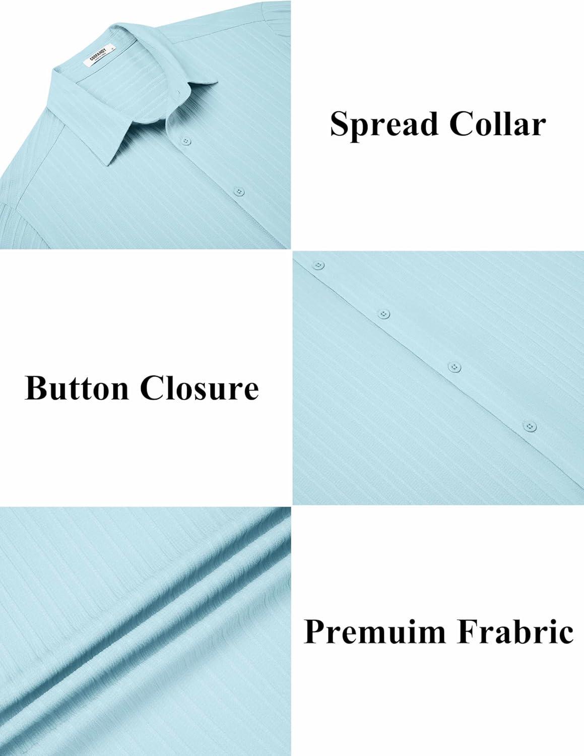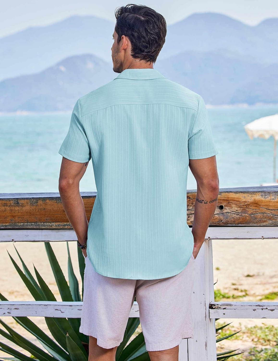 COOFANDY Men's Casual Button Down Shirts Short Sleeve Textured Summer Beach Shirts(Baby Blue)