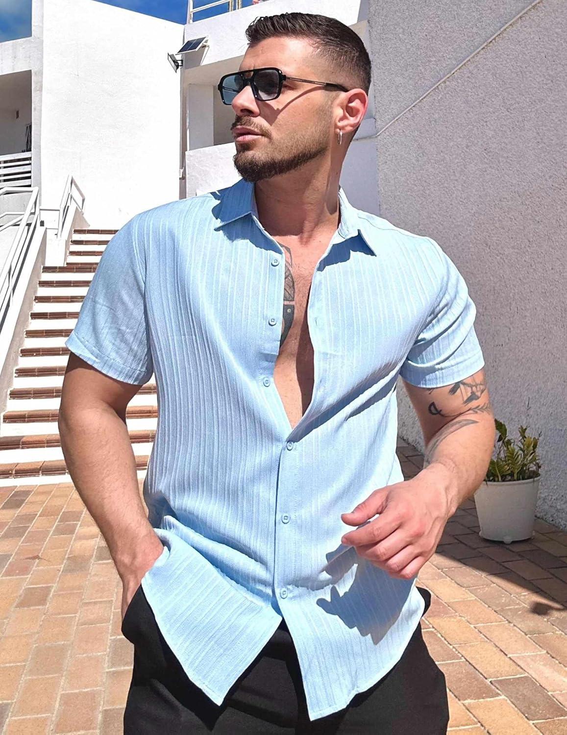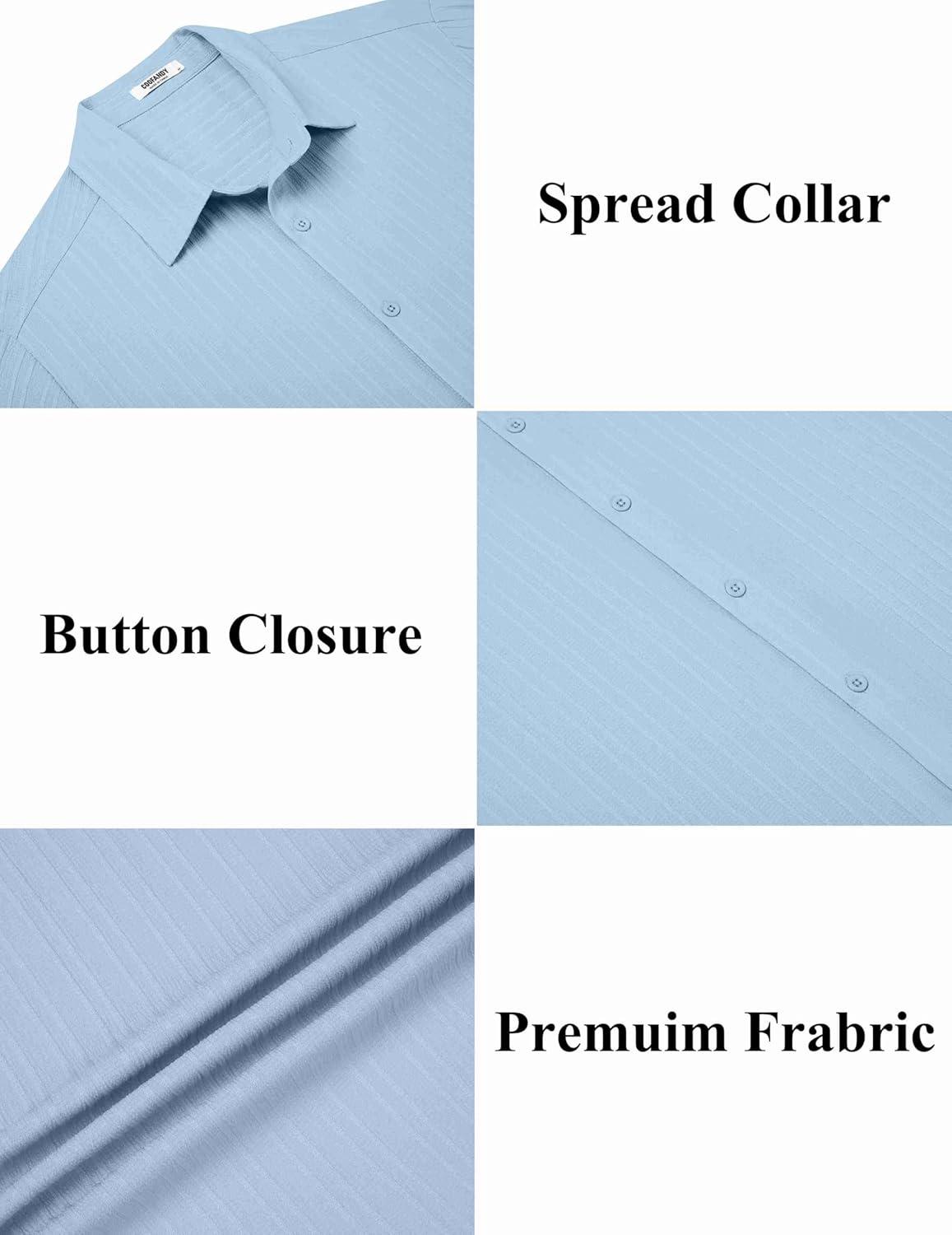 Don’t miss out on our limited-time offer: buy COOFANDY Men’s Casual Button Down Shirts Short Sleeve Textured Summer Beach Shirts(Light Blue), get {accessory} free!