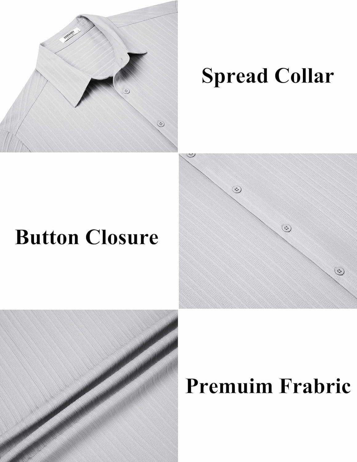 COOFANDY Men's Casual Button Down Shirts Short Sleeve Textured Summer Beach Shirts(Light Grey)