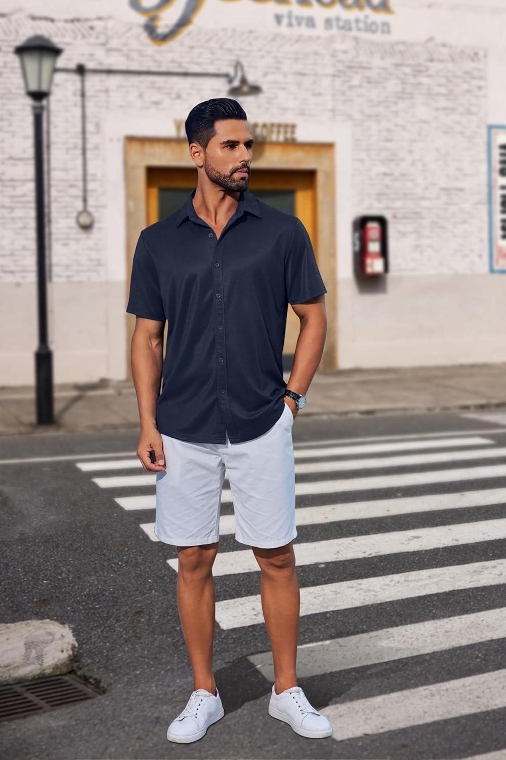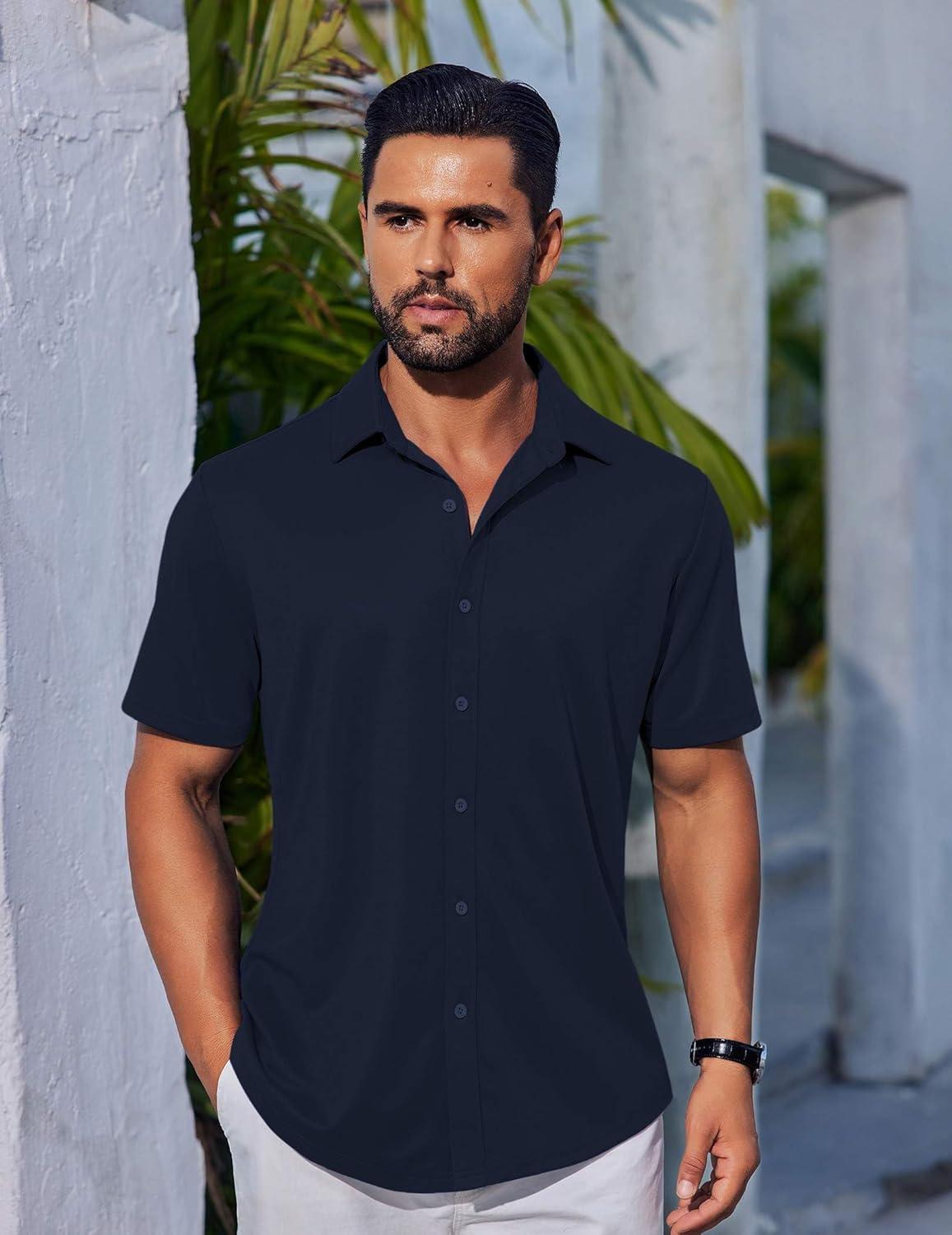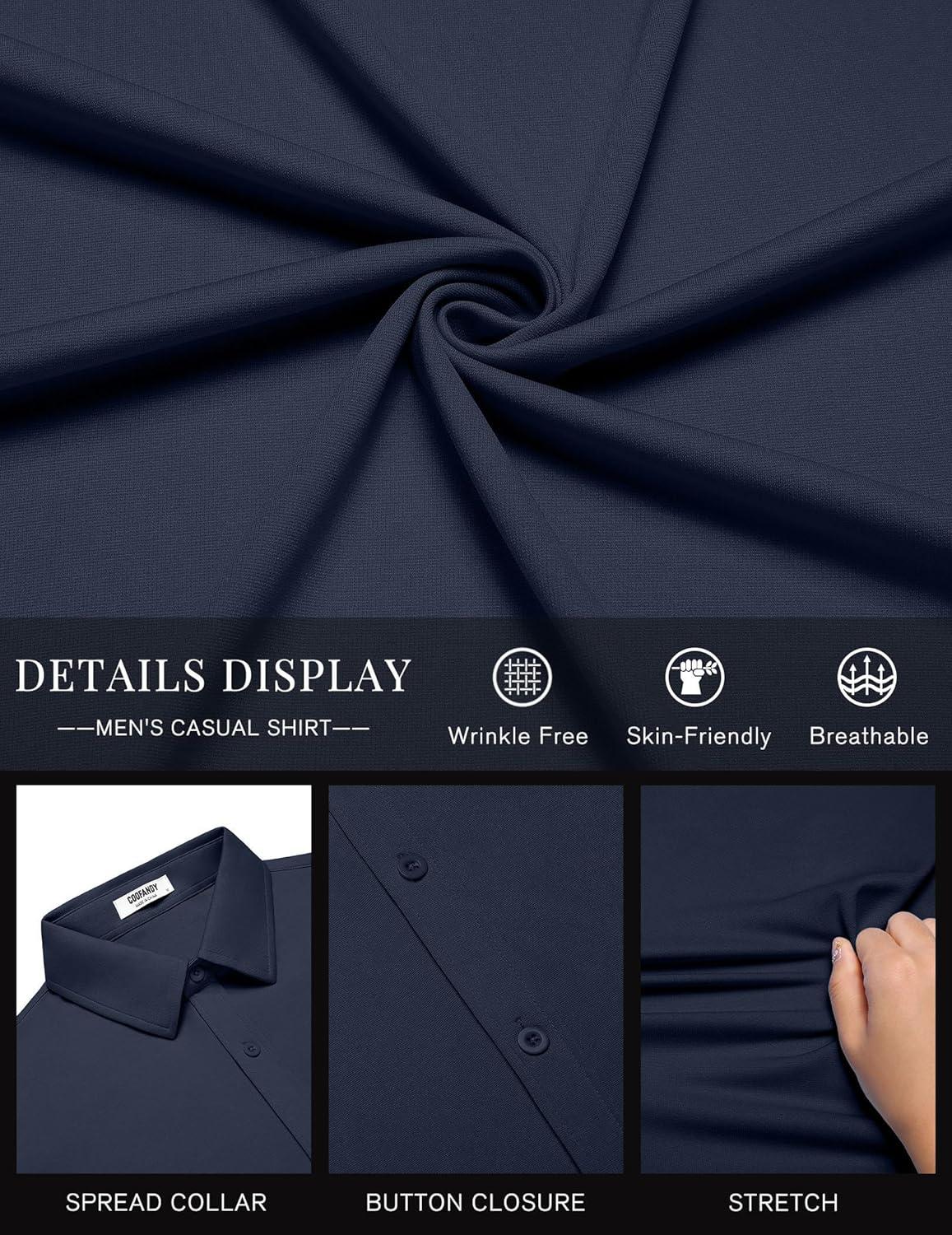 COOFANDY Mens Casual Button Down Shirts Short Sleeve Wrinkle Free Shirt Untucked Summer Stretch Dress Shirt(Navy Blue)