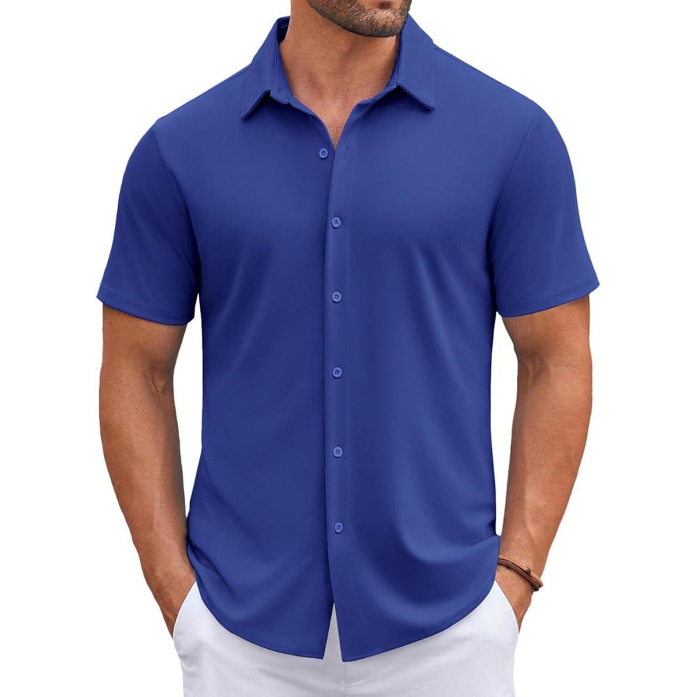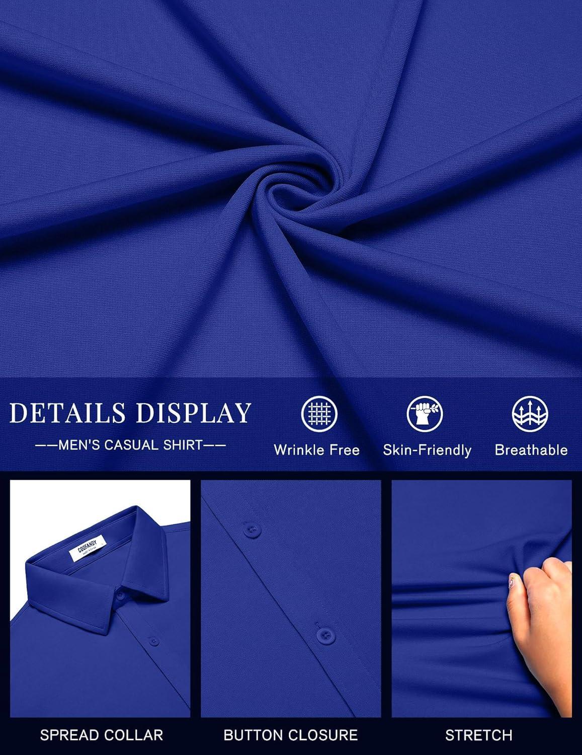 COOFANDY Mens Casual Button Down Shirts Short Sleeve Wrinkle Free Shirt Untucked Summer Stretch Dress Shirt(Royal Blue)