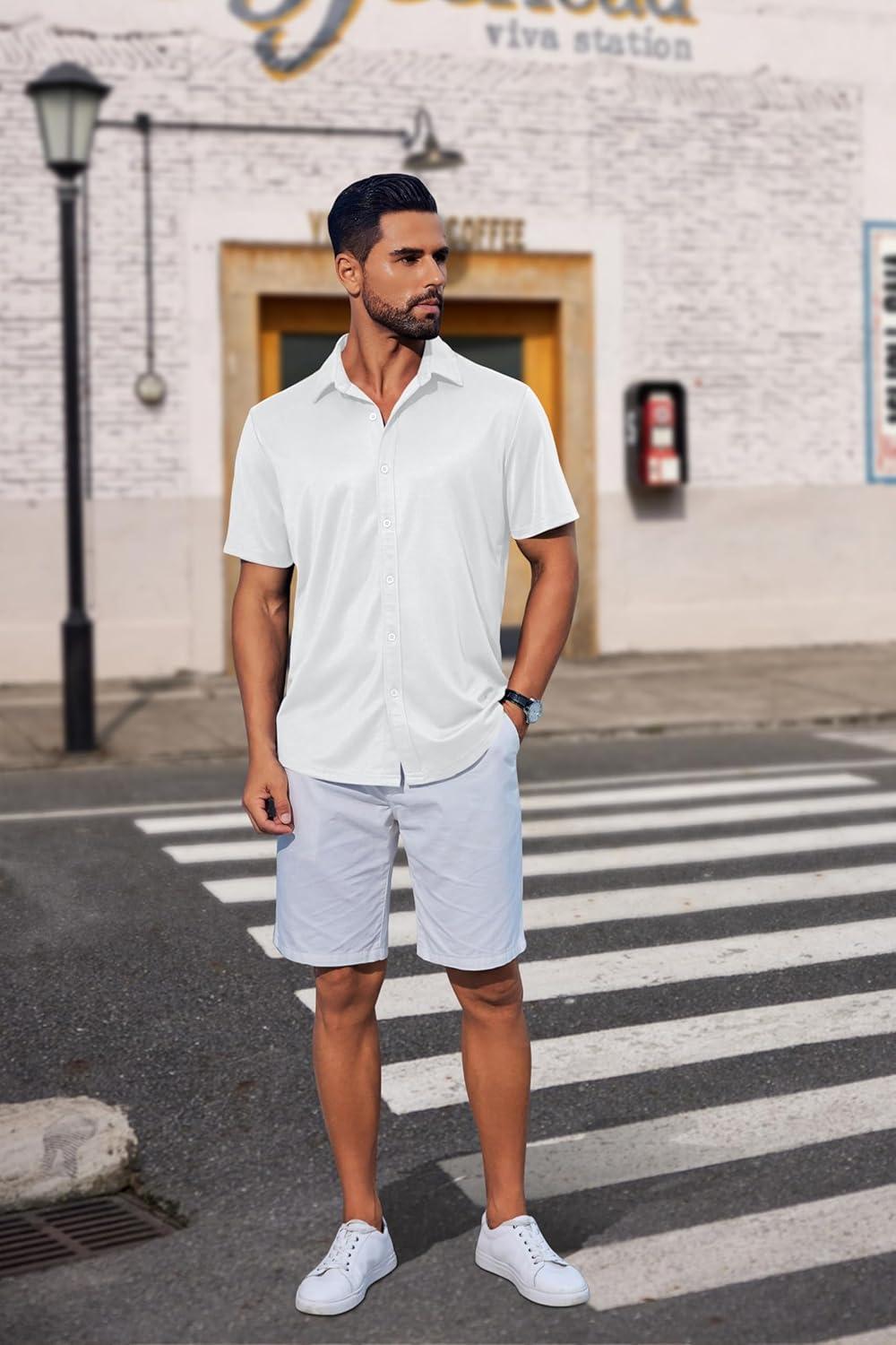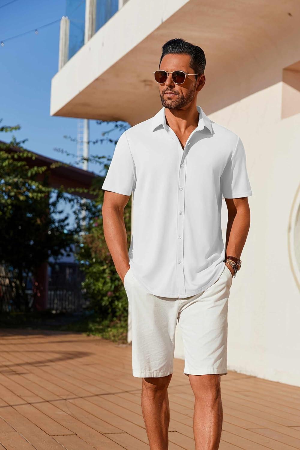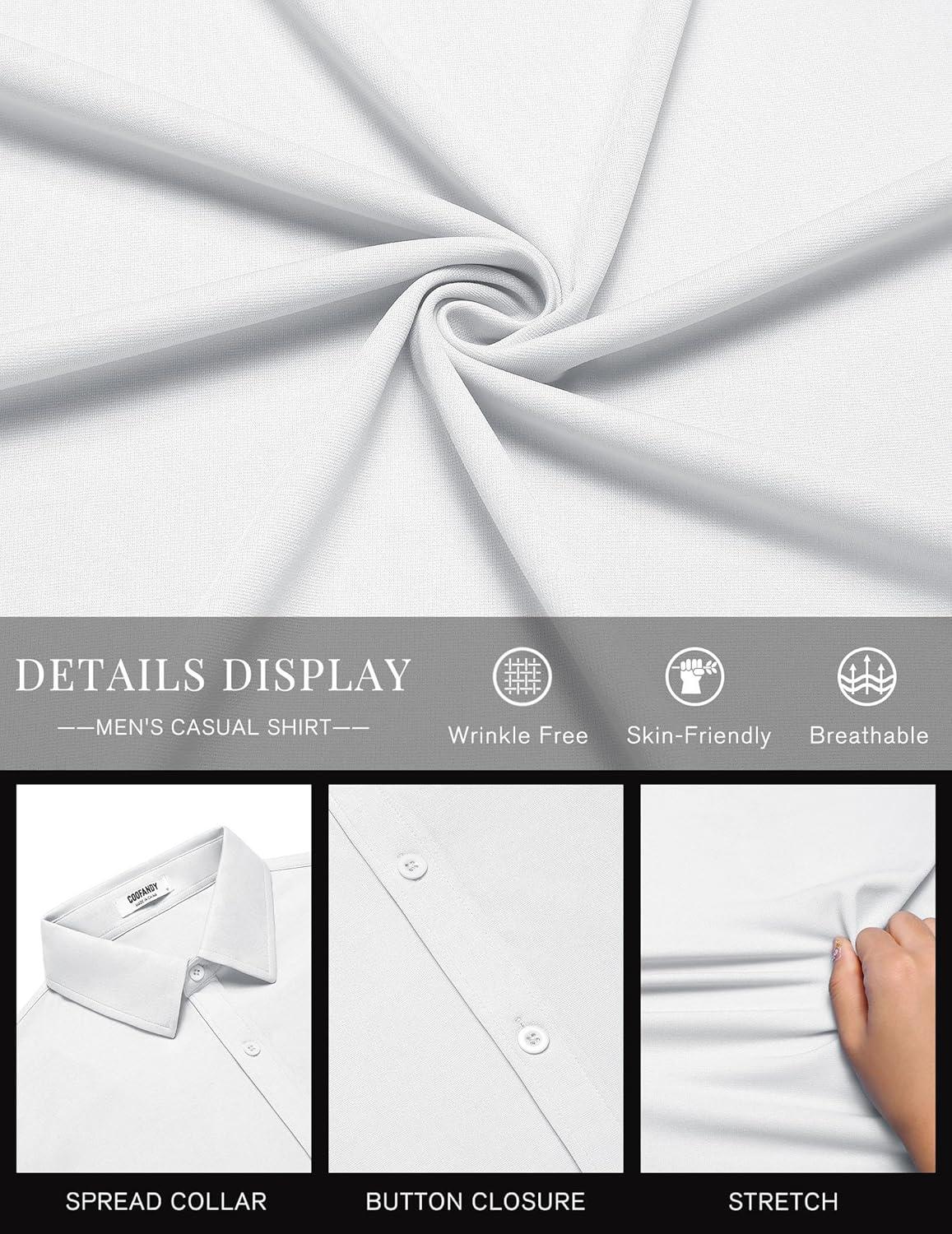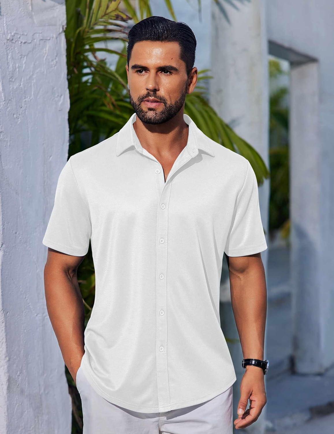 COOFANDY Mens Casual Button Down Shirts Short Sleeve Wrinkle Free Shirt Untucked Summer Stretch Dress Shirt(White)