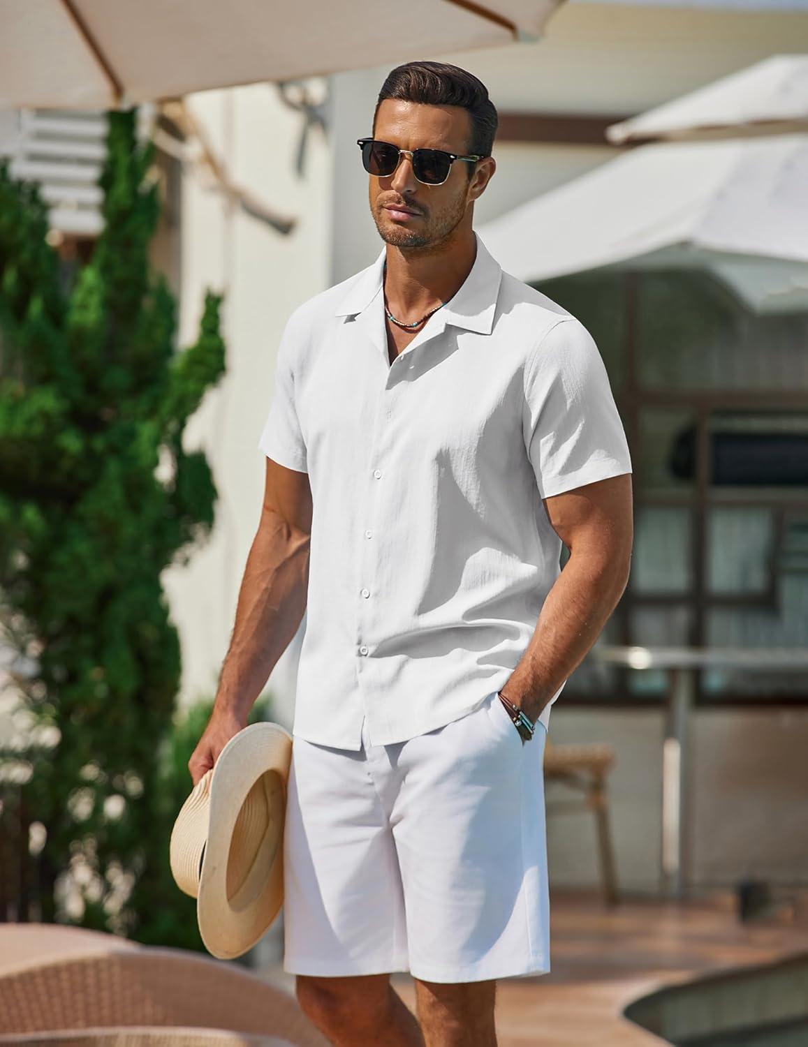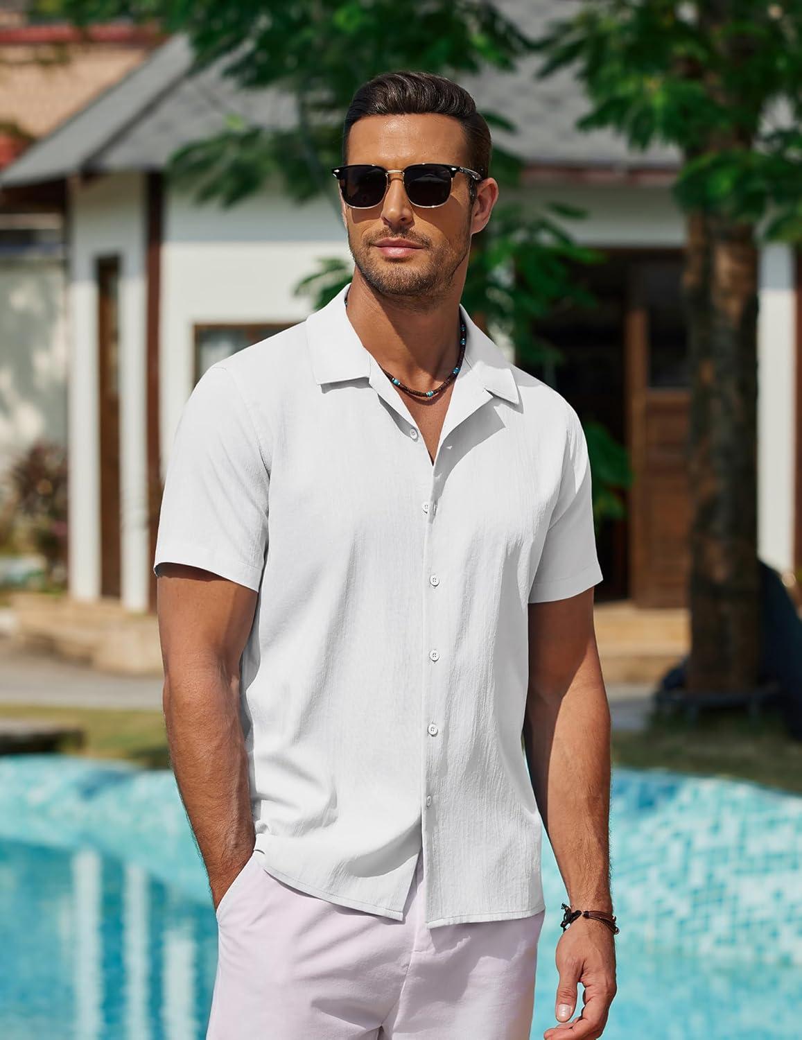 COOFANDY Men's Casual Button Down Shirts Short Sleeve Wrinkle-Free Summer Beach Wear(White)