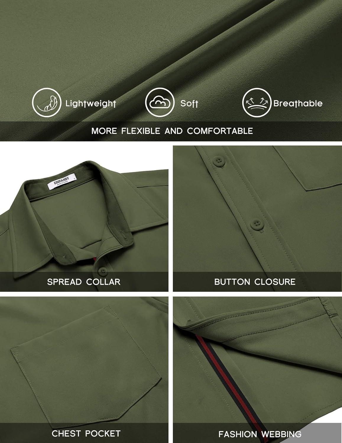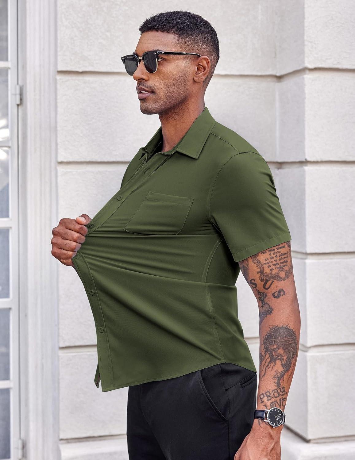 COOFANDY Men's Casual Button Down Shirts Stretch Short Sleeve Business Dress Shirt with Pocket(Army Green)
