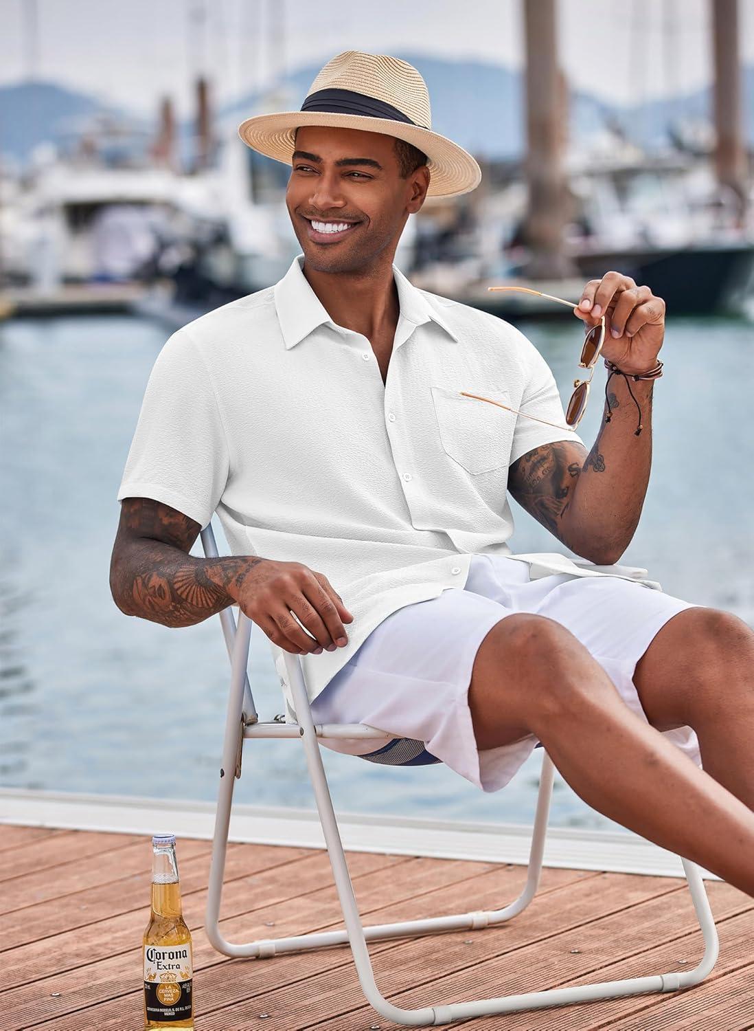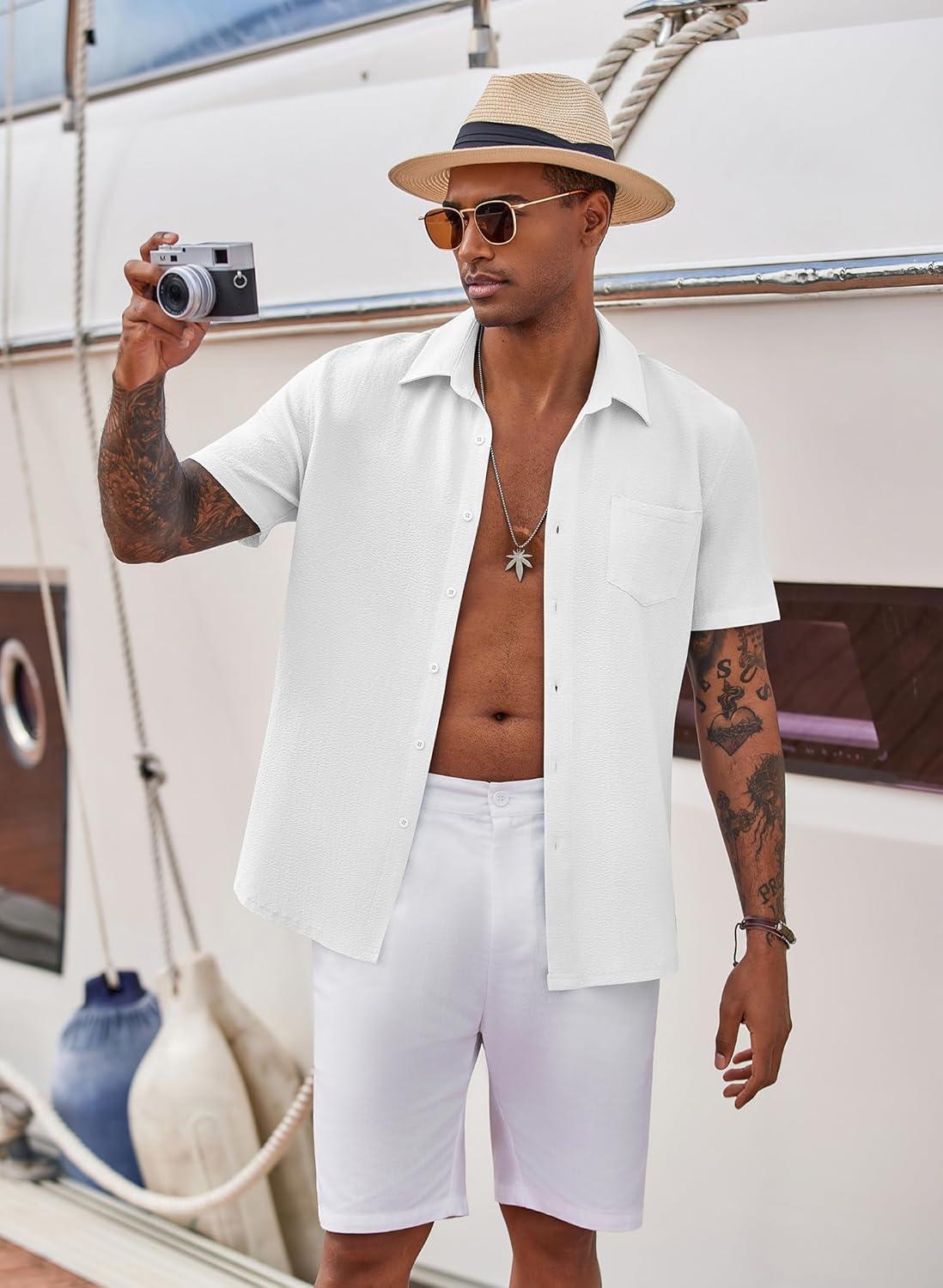 Don’t miss out on our limited-time offer: get a free {accessory} with your purchase of COOFANDY Men’s Casual Button Down Short Sleeve Shirt Textured Summer Beach Vacation Shirt(A-white).