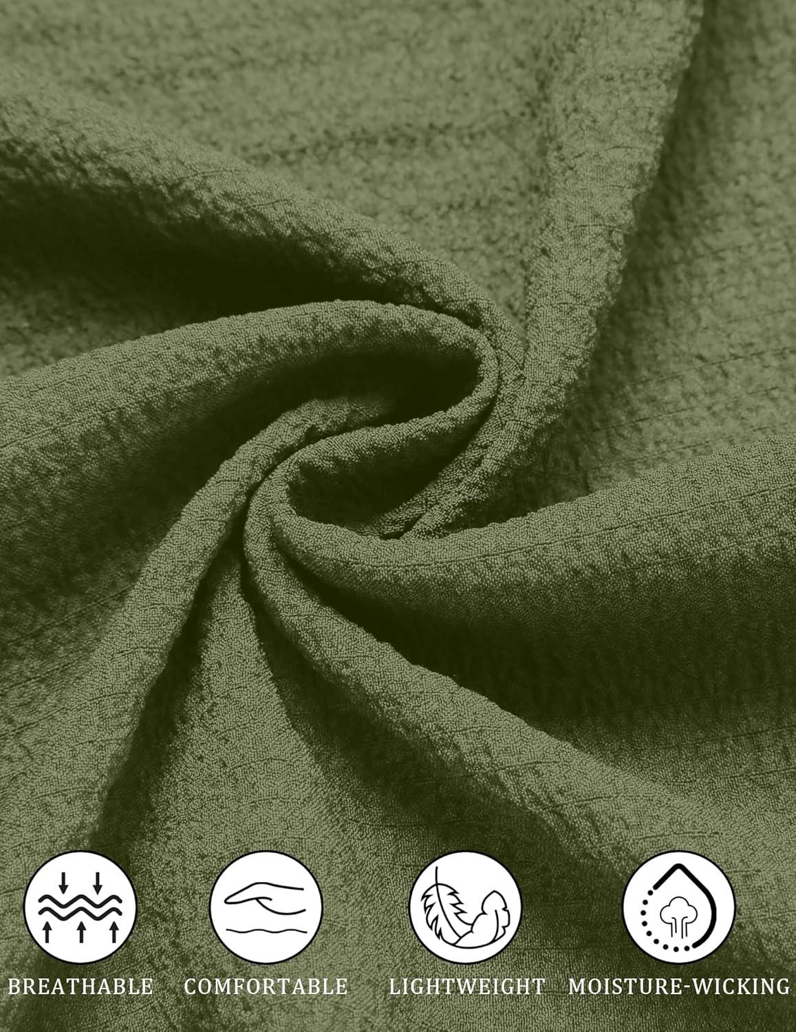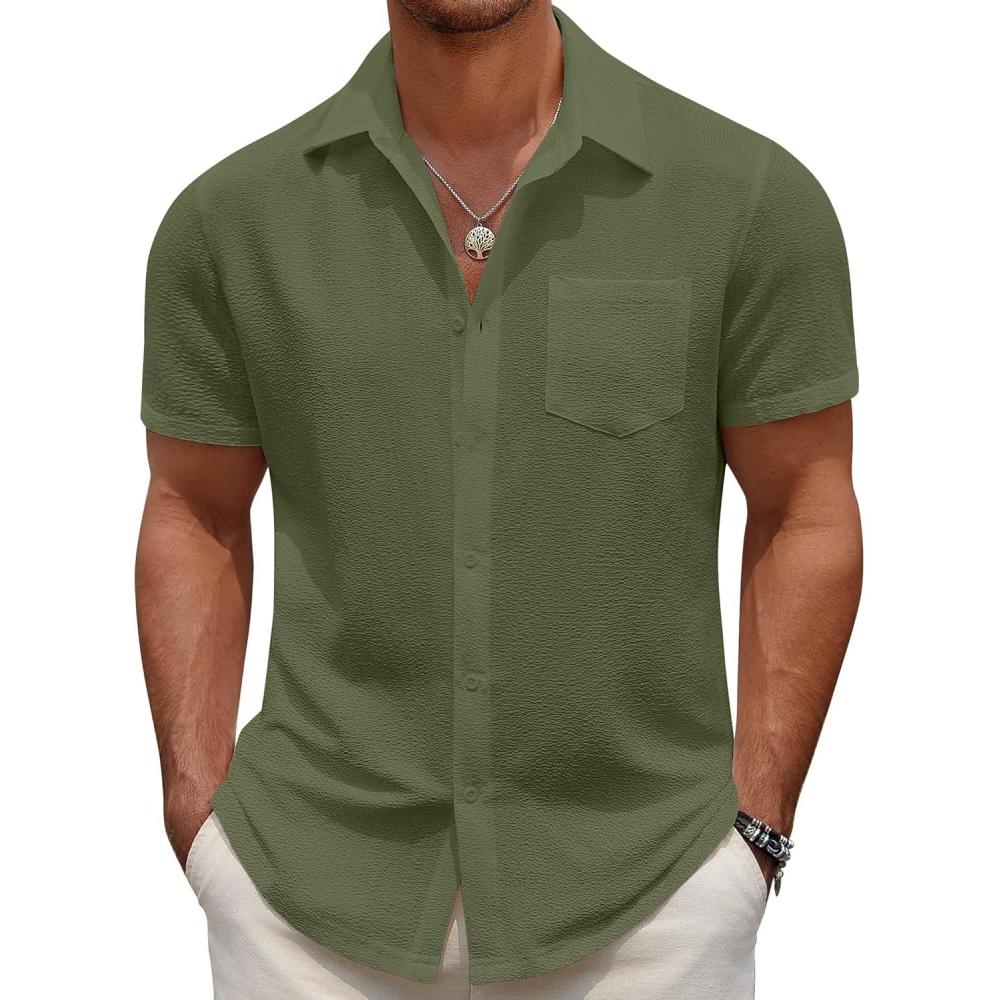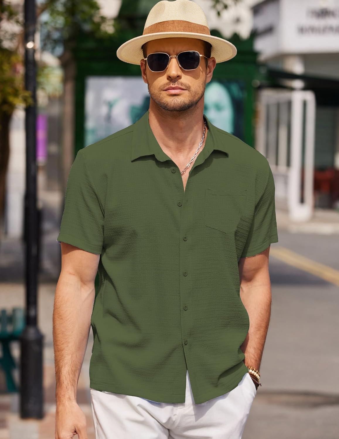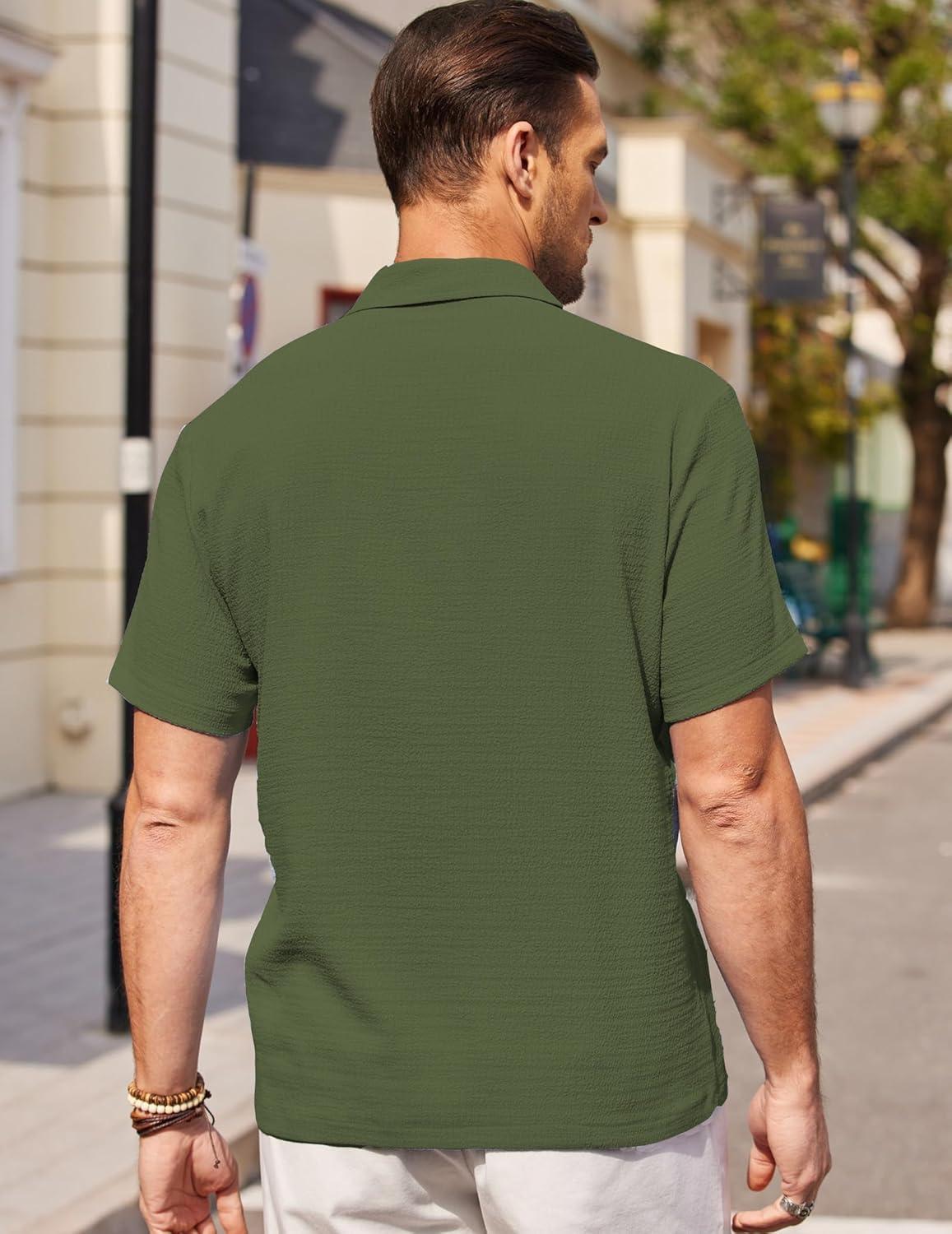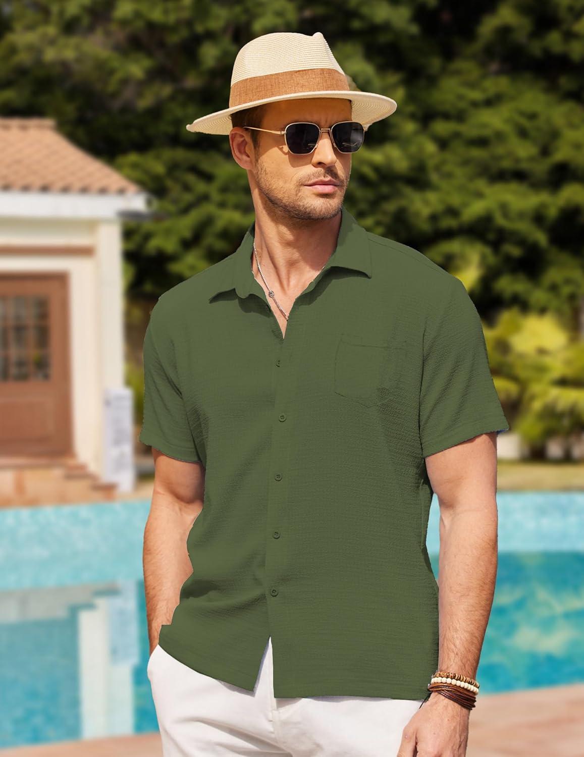 COOFANDY Men's Casual Button Down Short Sleeve Shirt Textured Summer Beach Vacation Shirt(Army Green)