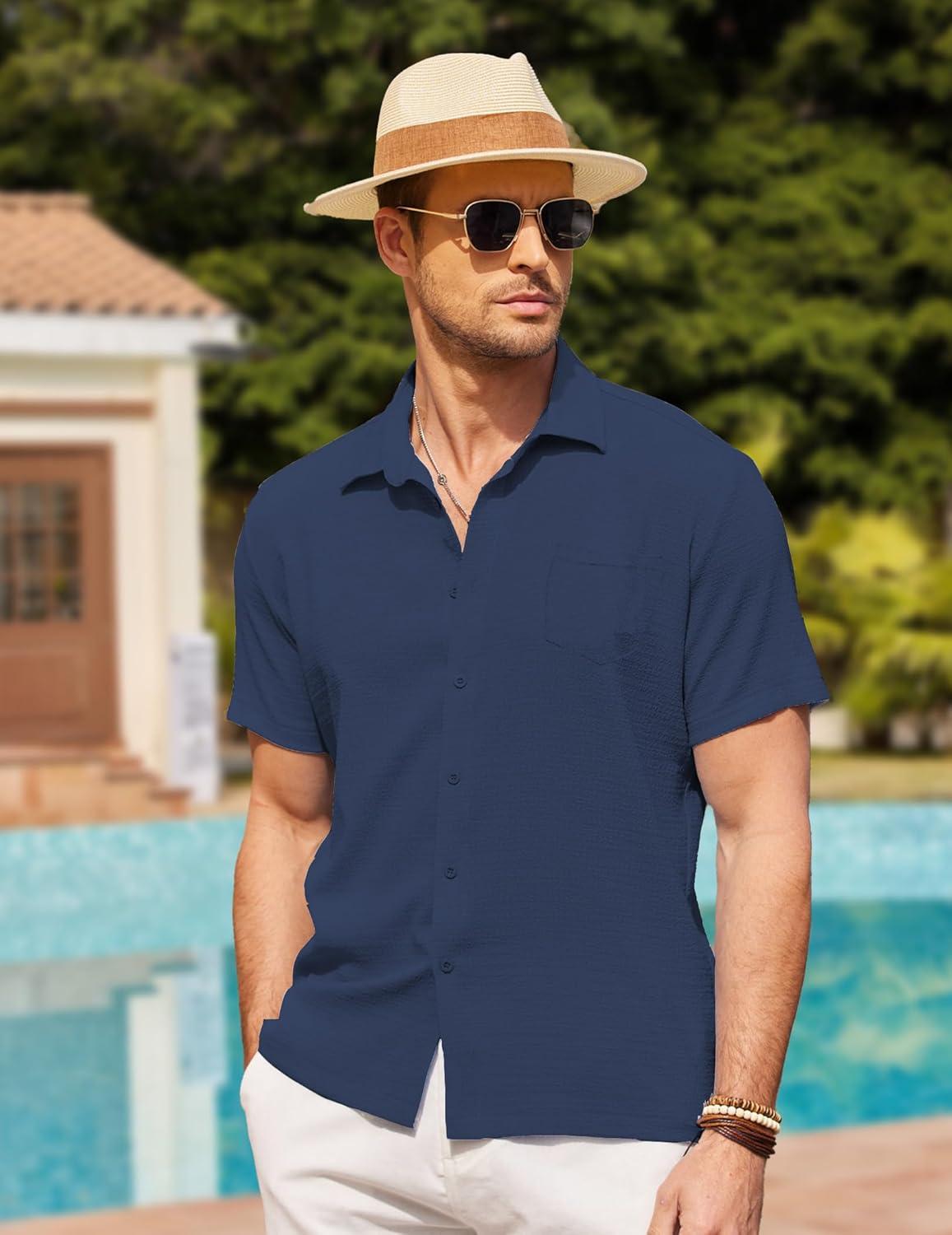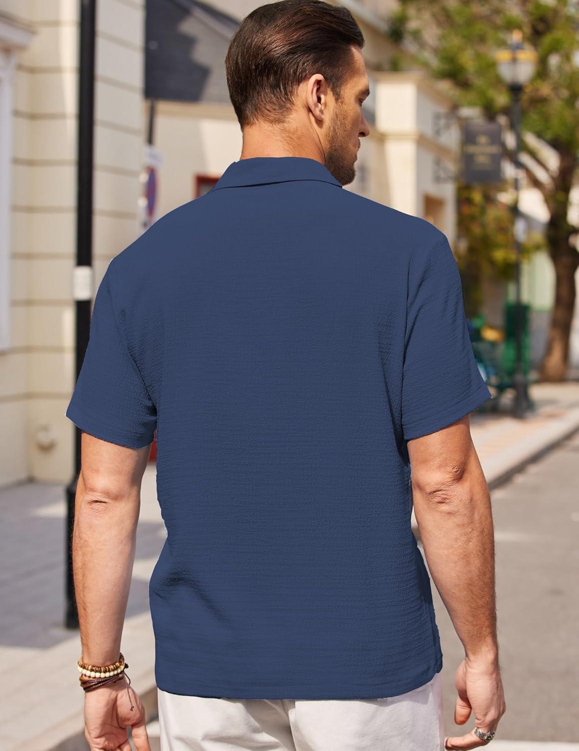 COOFANDY Men’s Casual Button Down Short Sleeve Shirt Textured Summer Beach Vacation Shirt(Blueviolet)