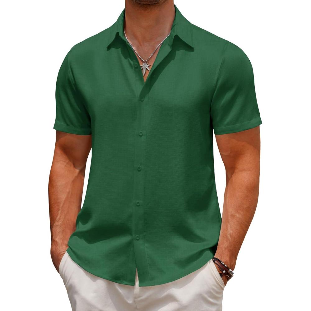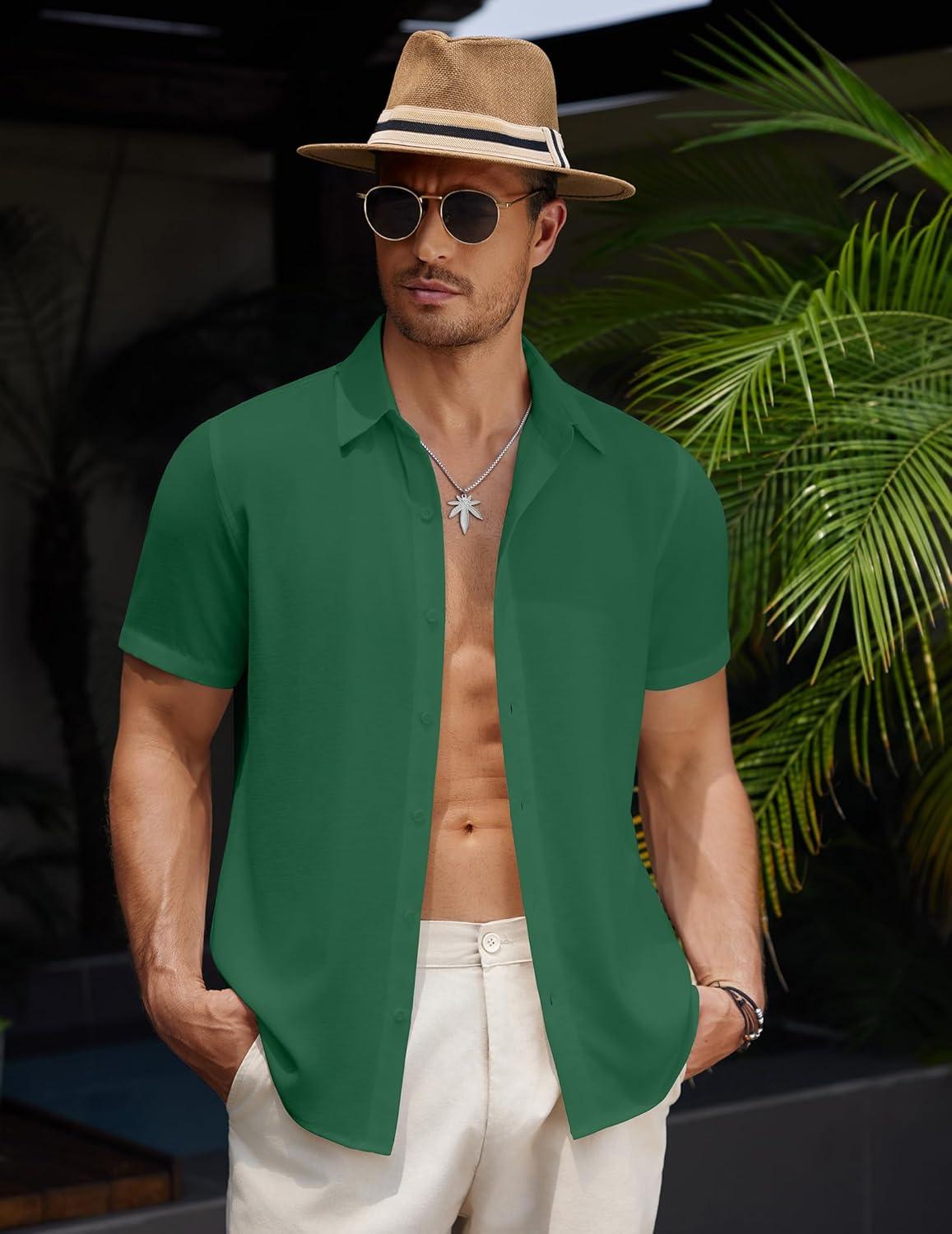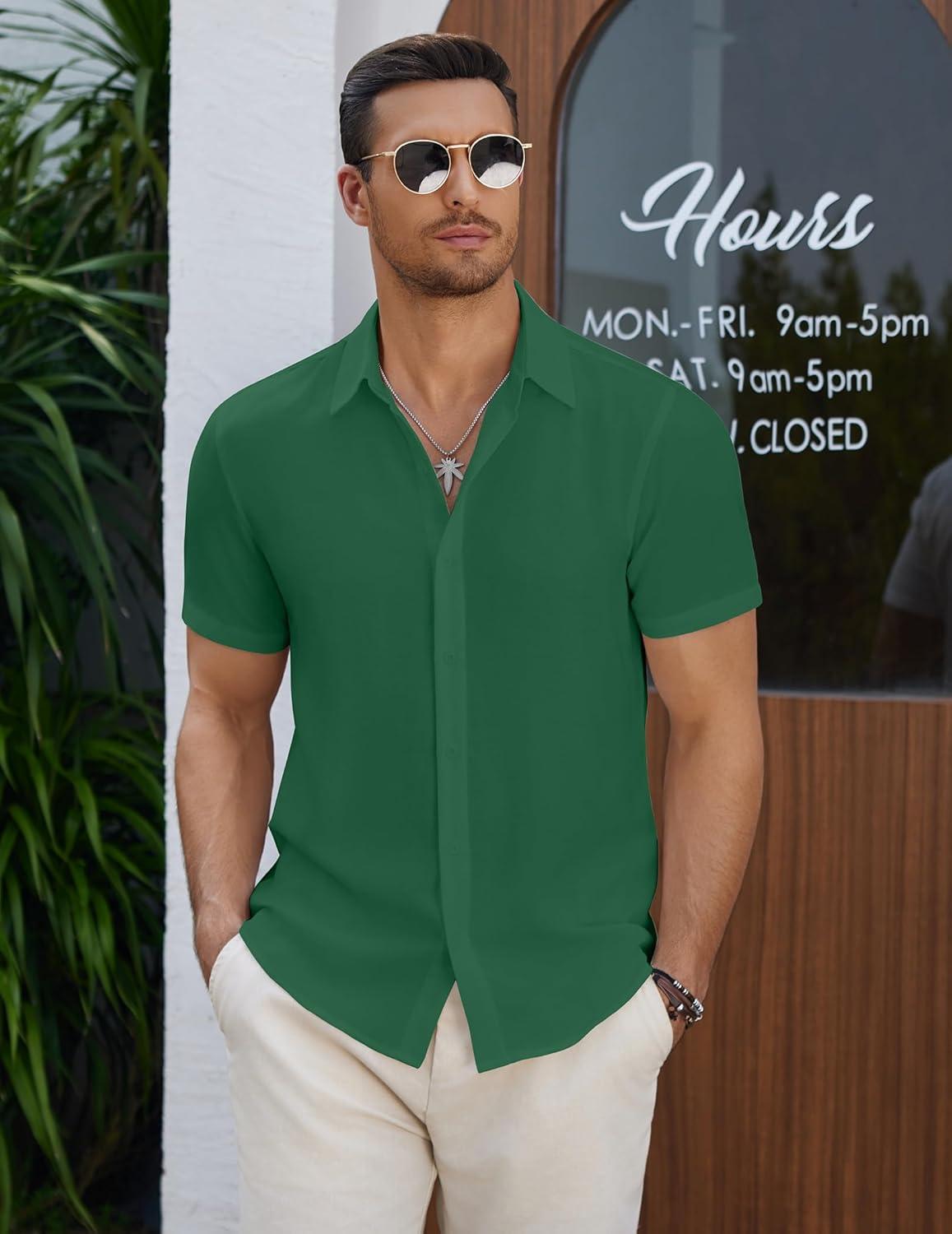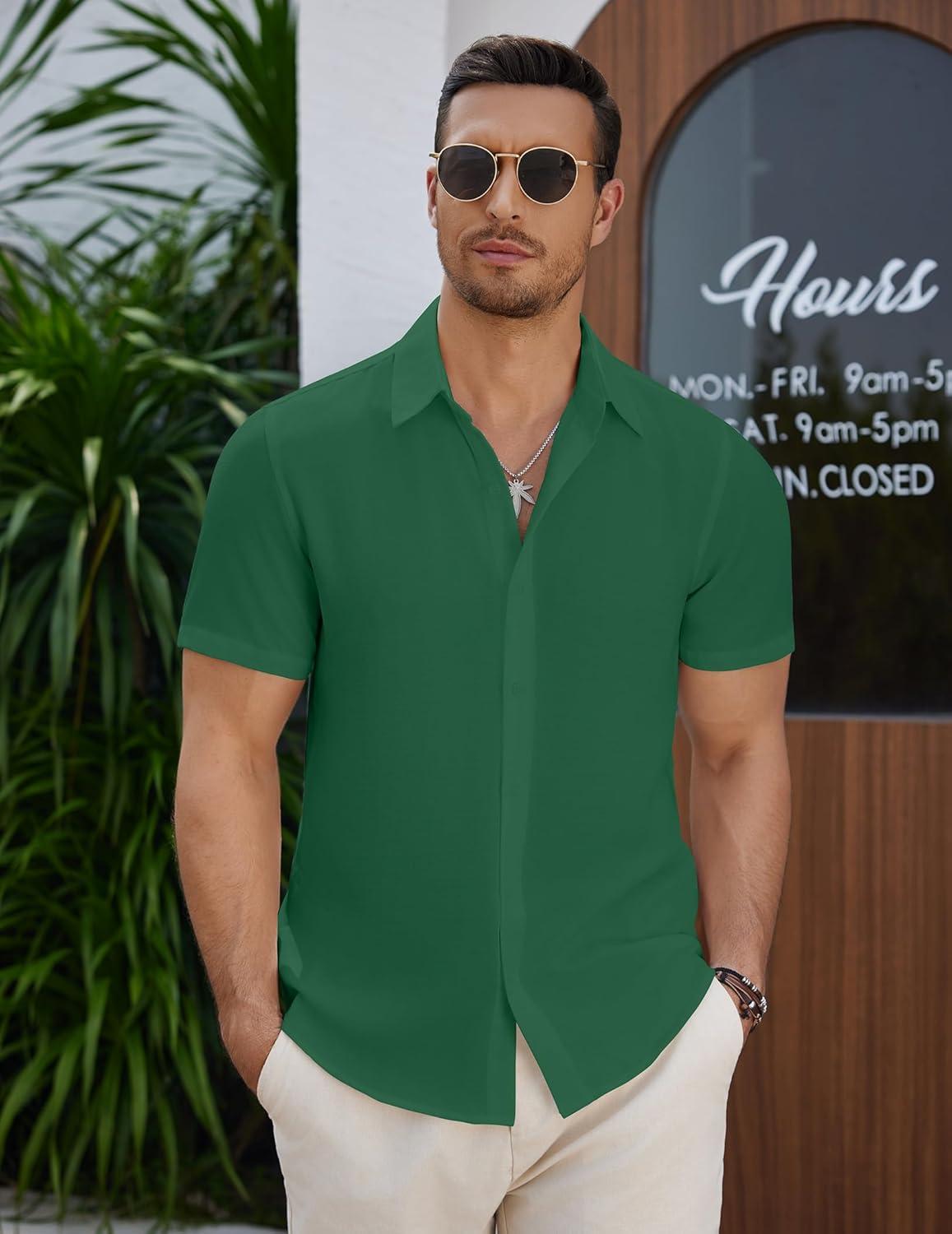 COOFANDY Men's Casual Button Down Short Sleeve Shirts Summer Beach Wedding Shirt Vacation Cotton Shirts(Evergreen)