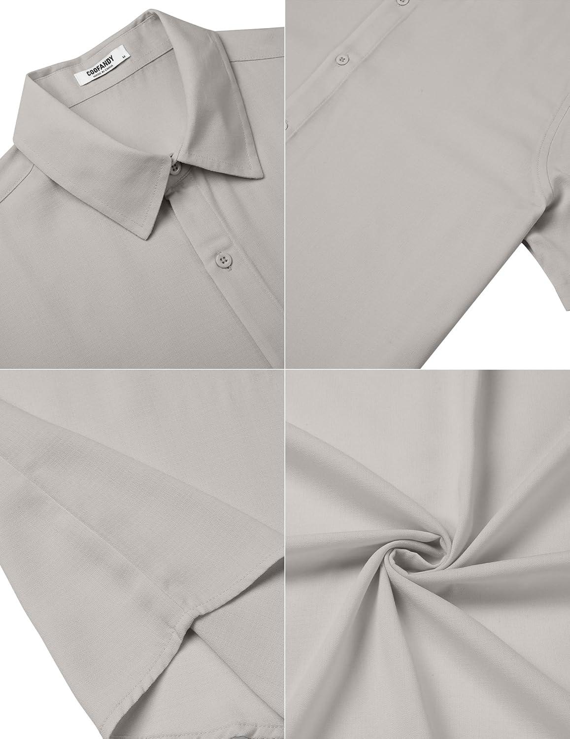 imageCOOFANDY Mens Casual Button Down Short Sleeve Shirts Summer Beach Wedding Shirt Vacation Cotton ShirtsLight Gray