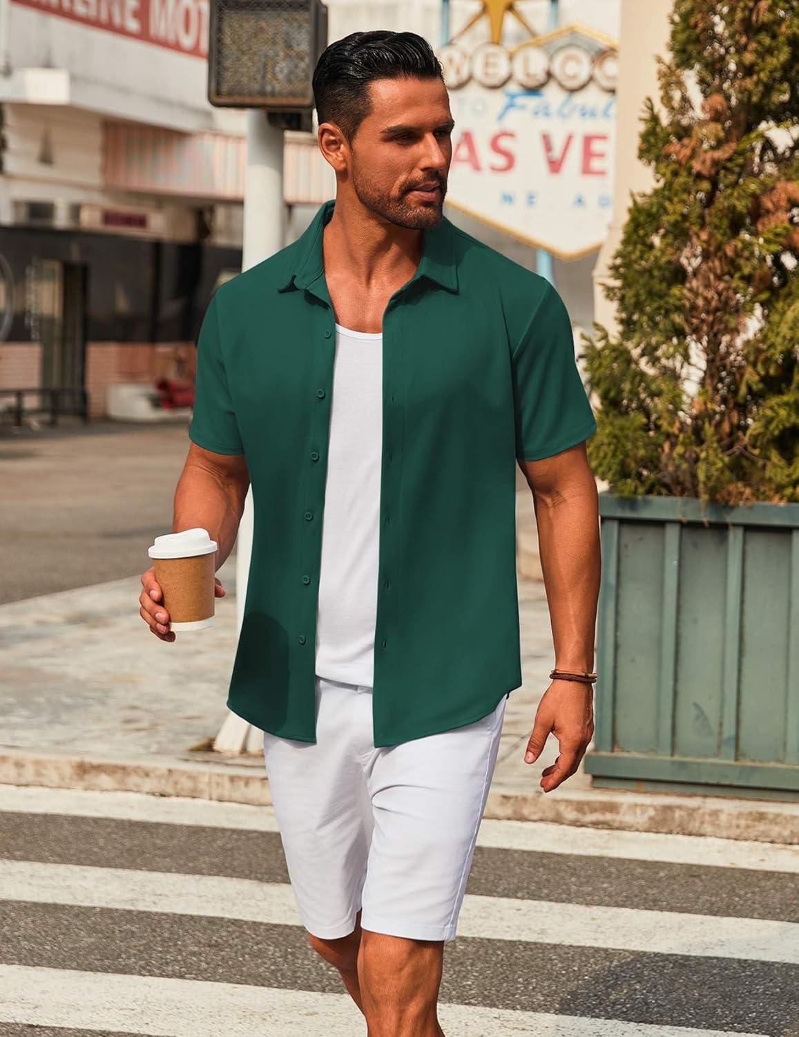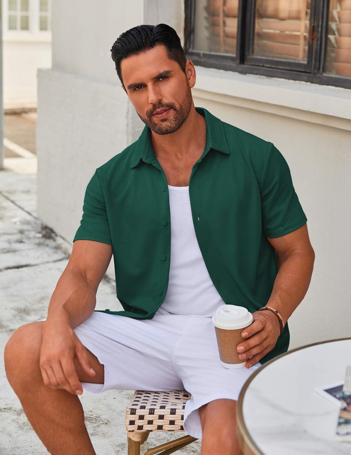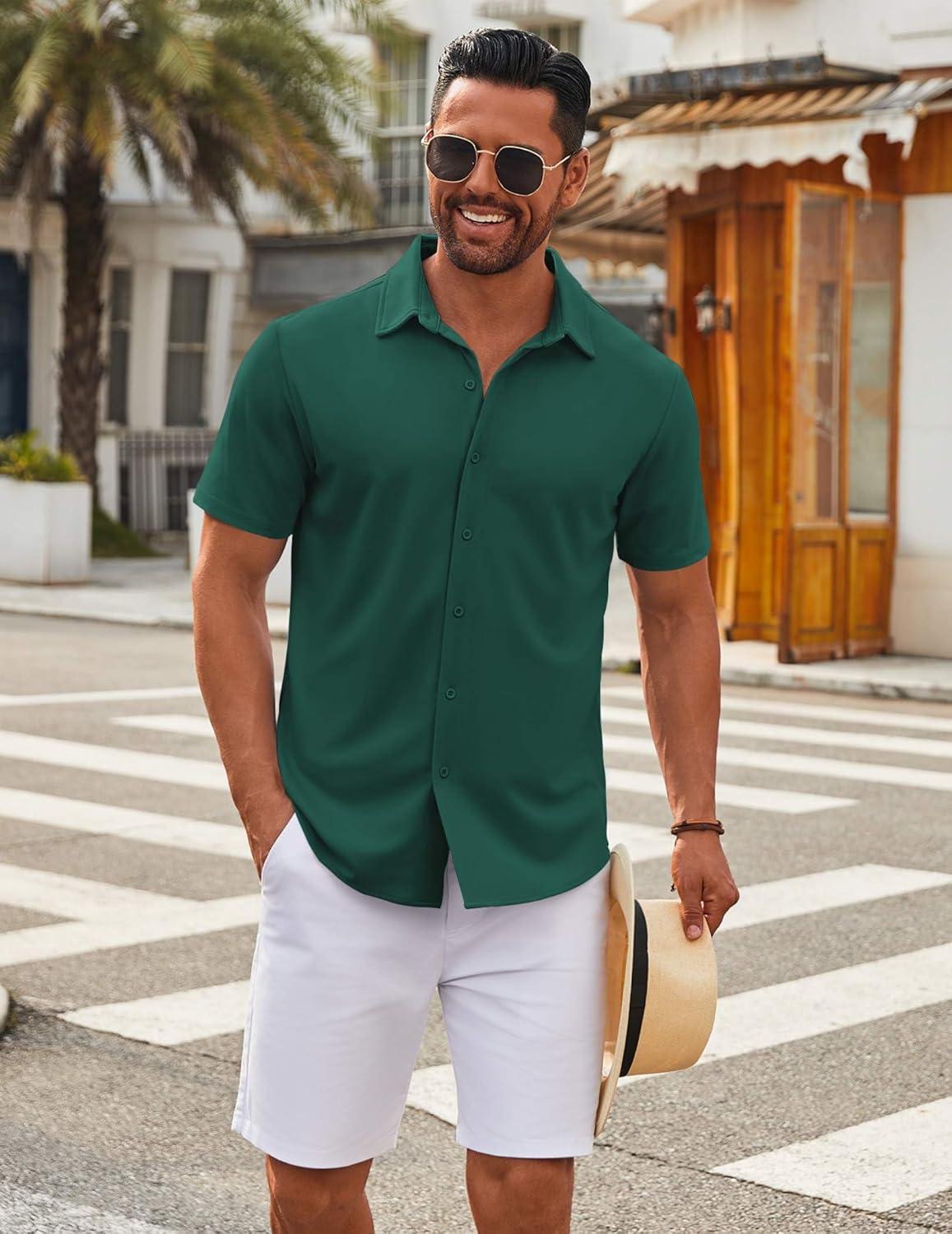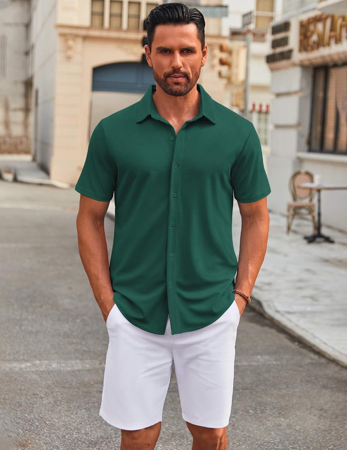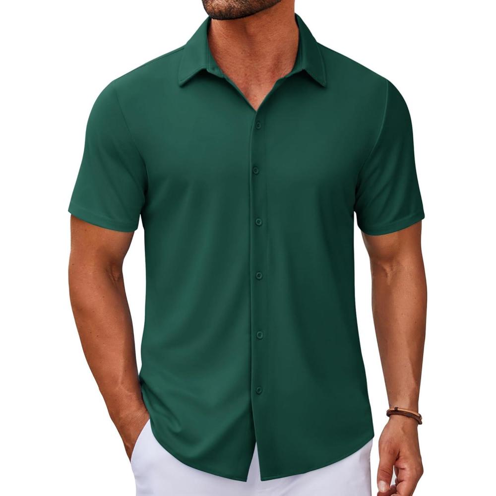 Get your hands on our newest COOFANDY Men’s Casual Button Down Short Sleeve Shirts Untucked Wrinkle Free Shirt Stretch Dress Shirts(Lake Green) and enjoy a limited-time discount offer.