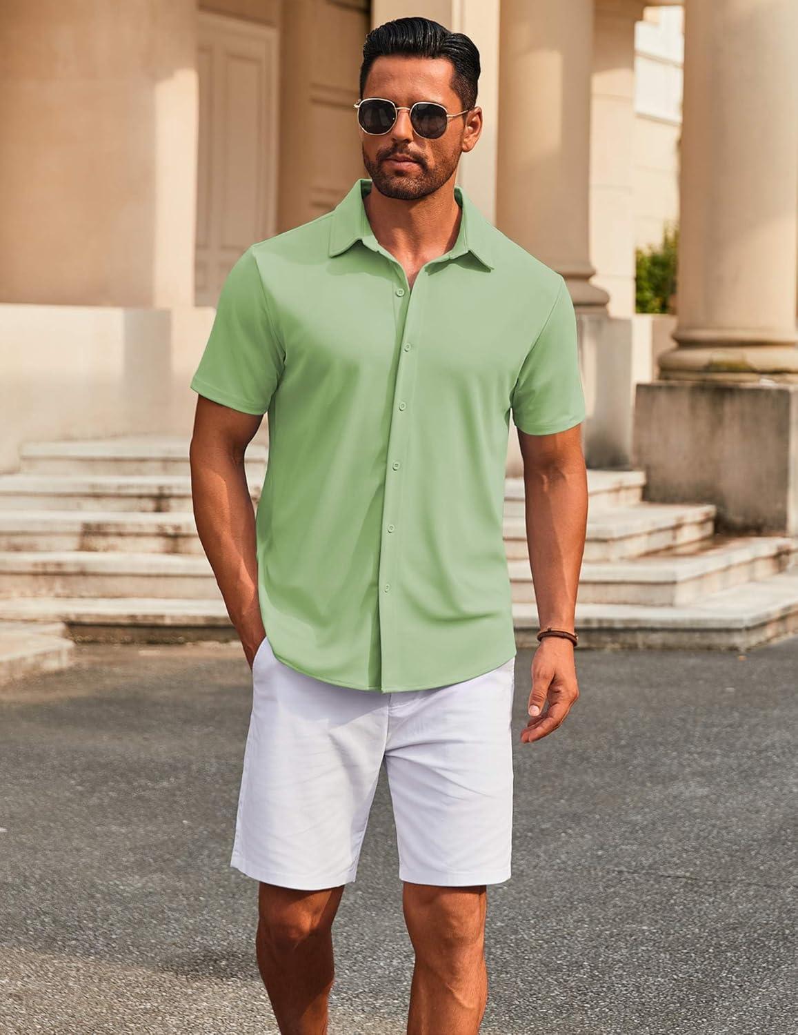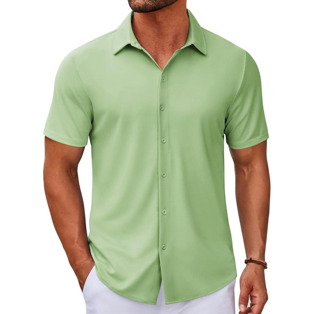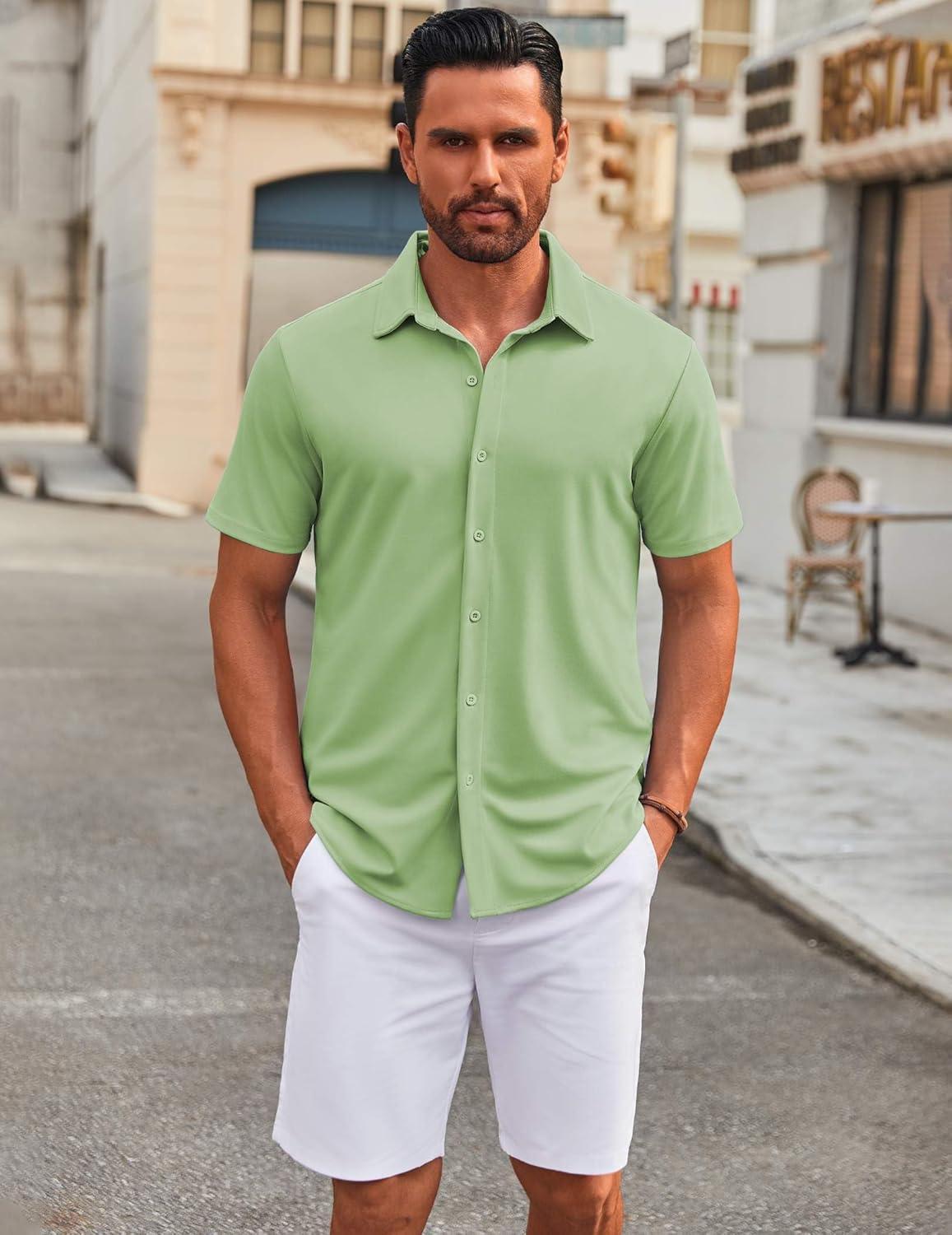 COOFANDY Men's Casual Button Down Short Sleeve Shirts Untucked Wrinkle Free Shirt Stretch Dress Shirts(Light Green)