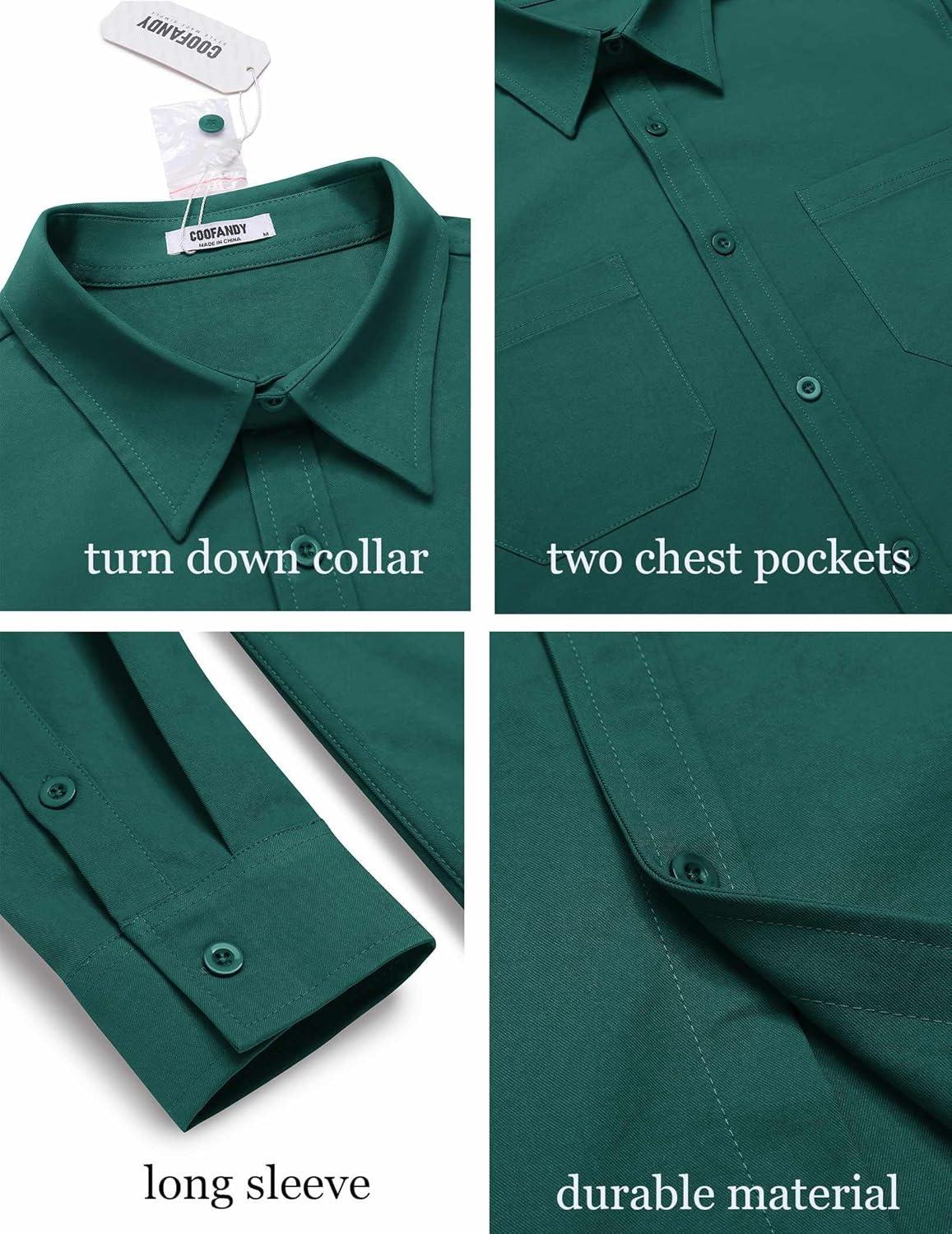 COOFANDY Mens Casual Button Down Work Shirts Untucked Long Sleeve Woven Shirt with Pockets(Green)