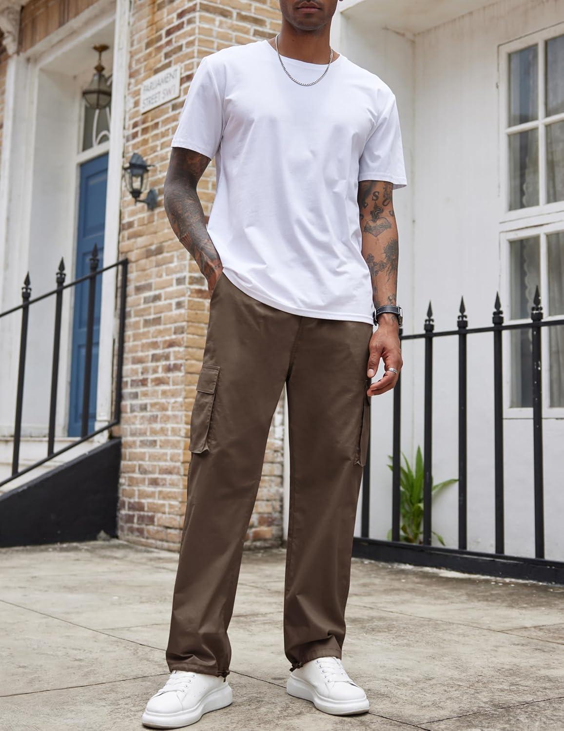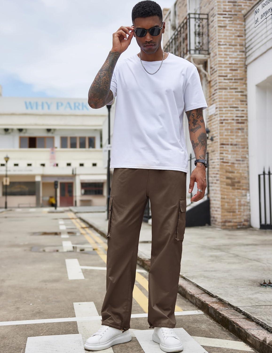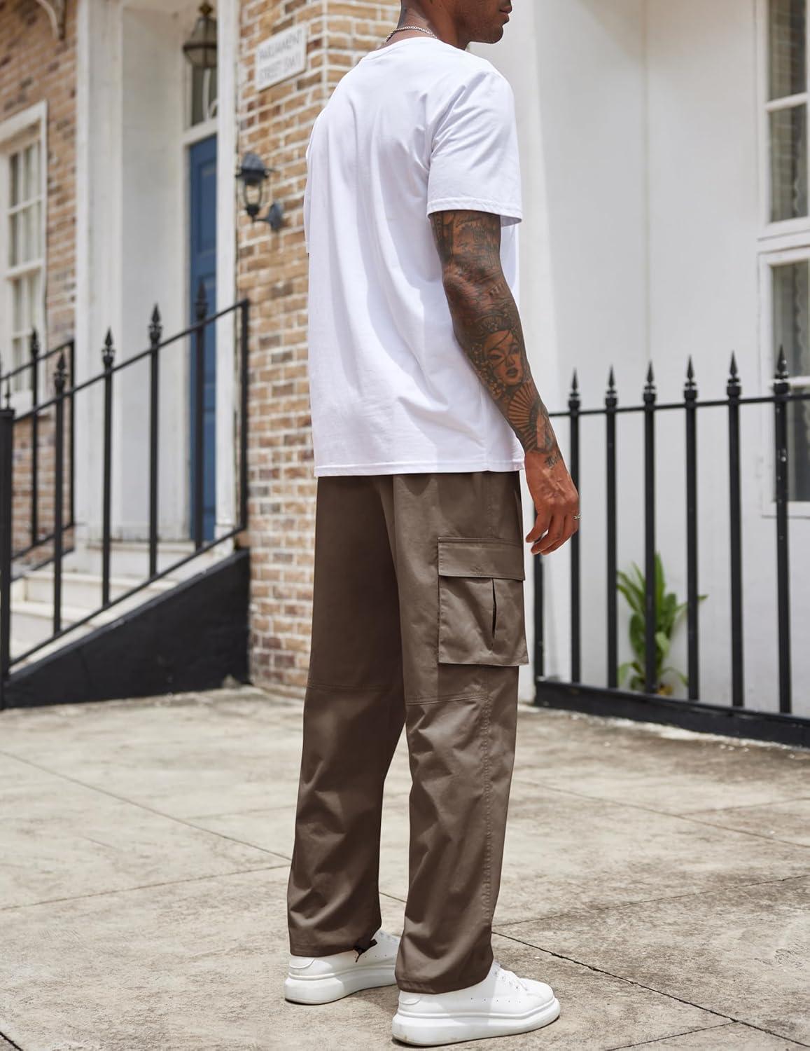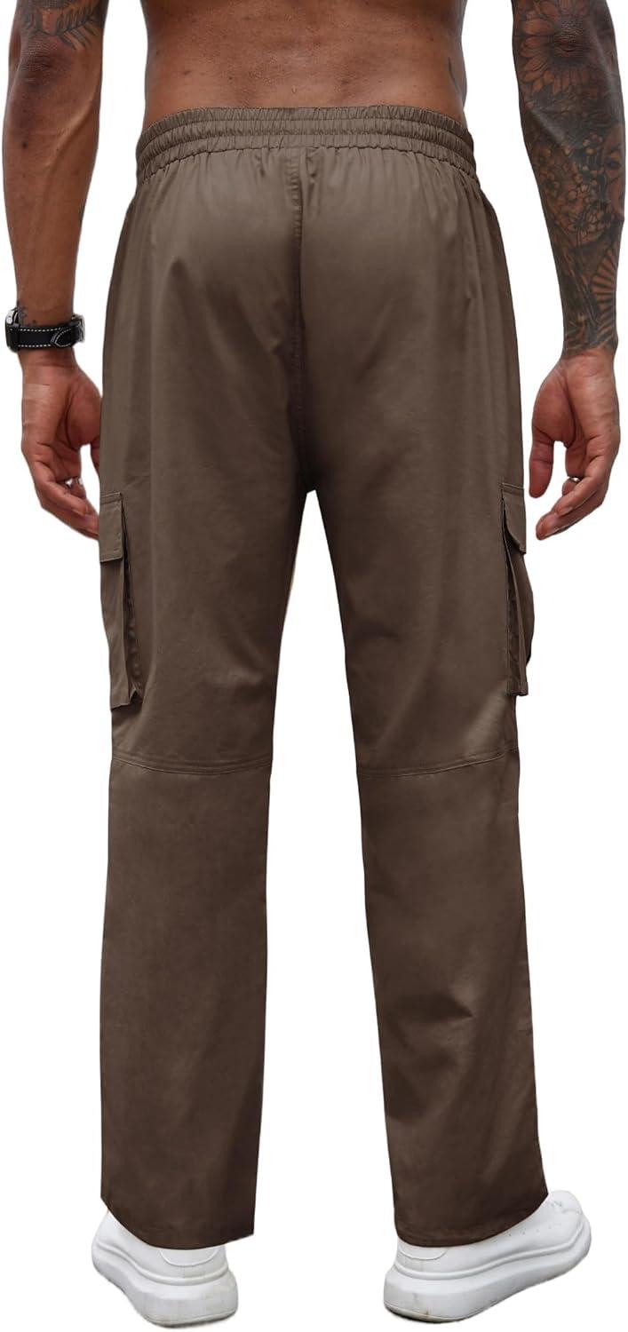 COOFANDY Mens Casual Cargo Pants Elastic Waist Cargo Pants Workout Sweatpants Multi Pockets Straight Leg Trousers Relaxed Fit
