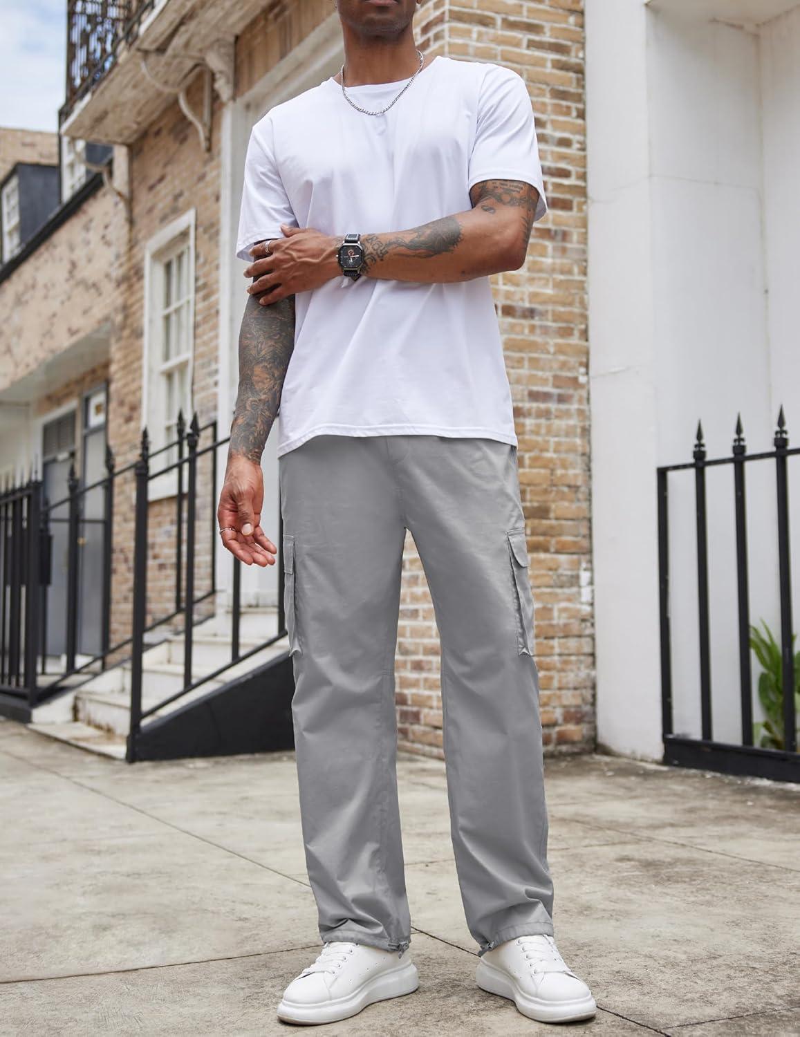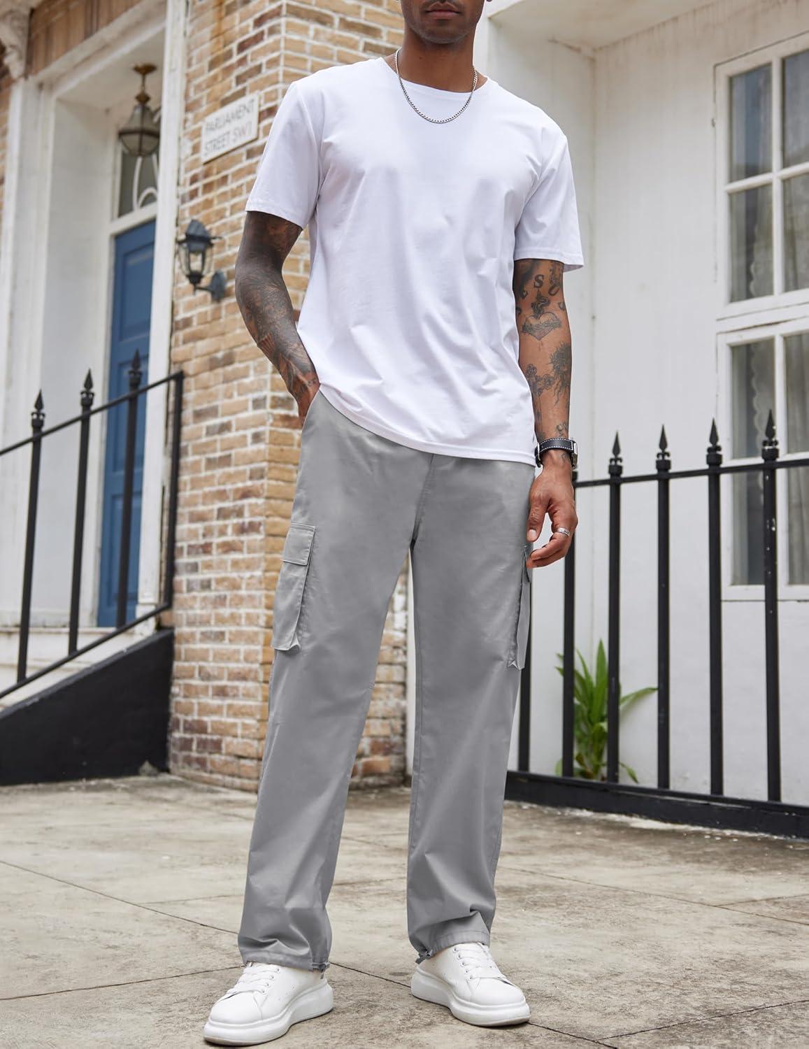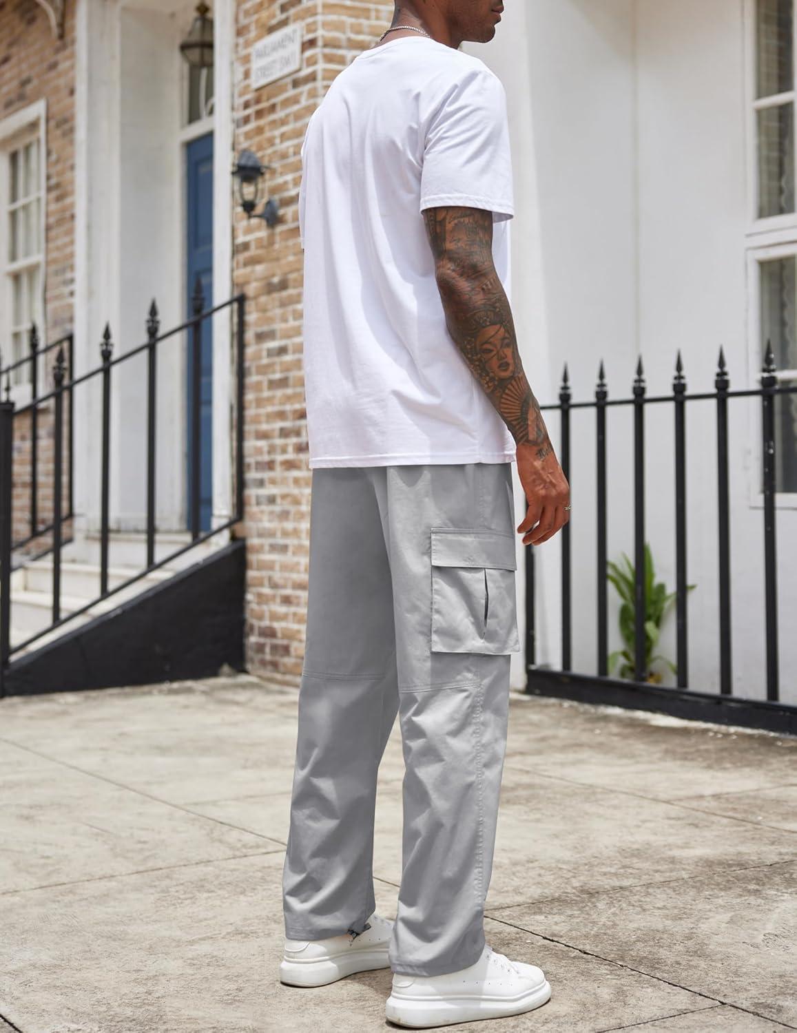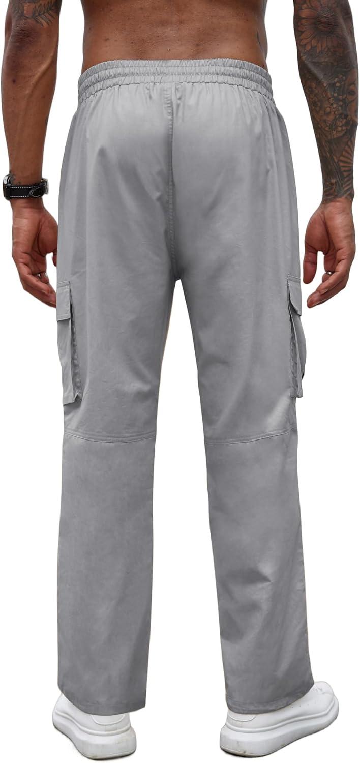 COOFANDY Mens Casual Cargo Pants Elastic Waist Cargo Pants Workout Sweatpants Multi Pockets Straight Leg Trousers Relaxed Fit