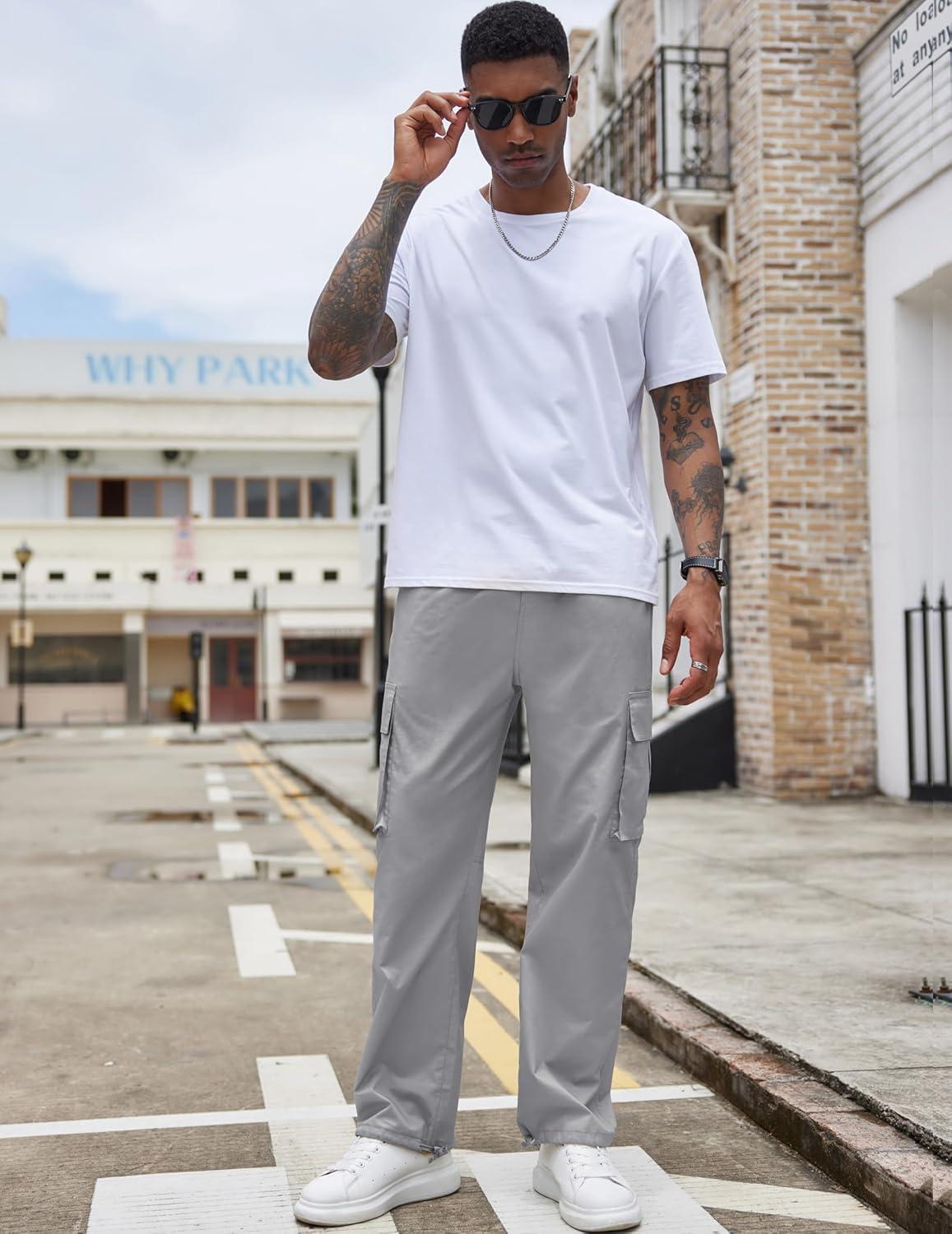 COOFANDY Men’s Casual Cargo Pants Cotton Drawstring Athletic Jogger Sweatpants(Light Gray)