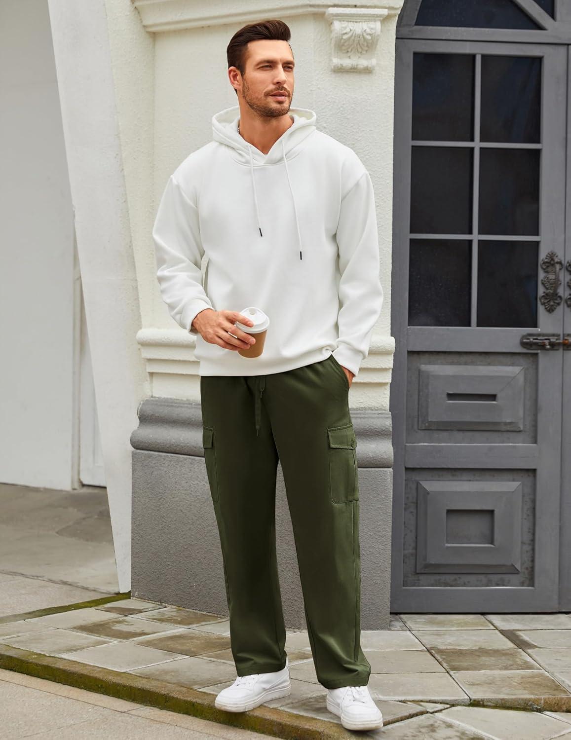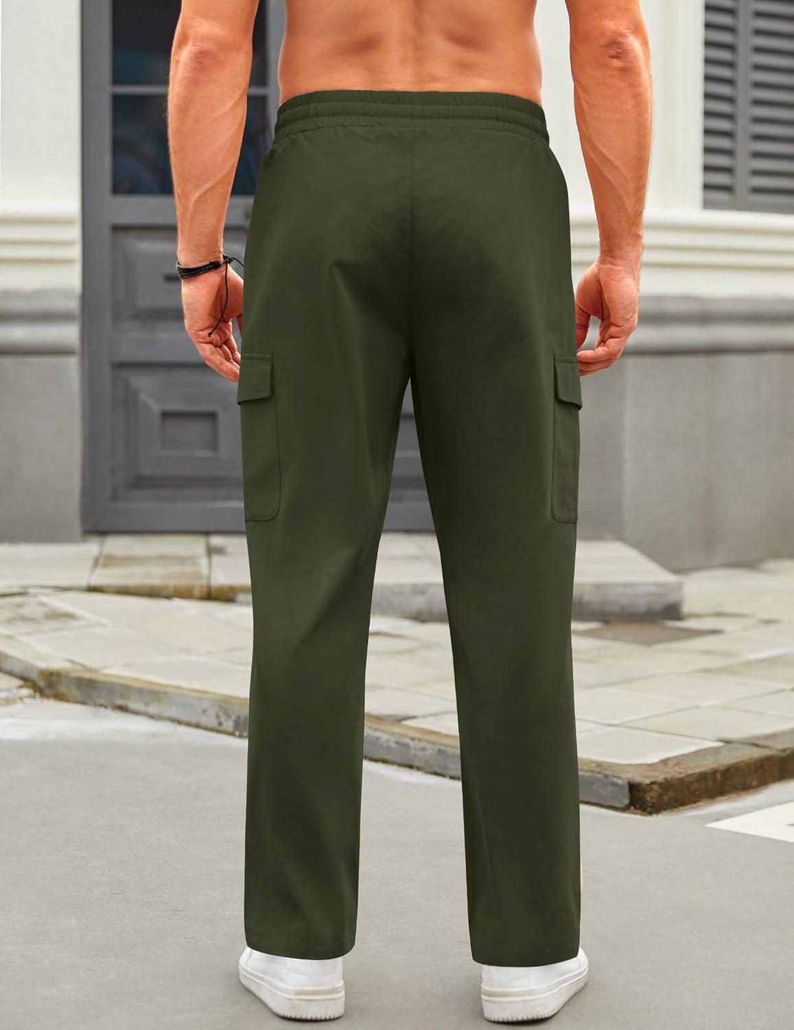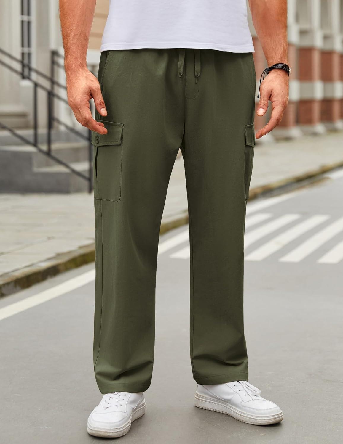 COOFANDY Mens Casual Cargo Pants Relaxed Fit Outdoor Hiking Pants Cotton Drawstring Sweatpants with Pockets(Army Green)
