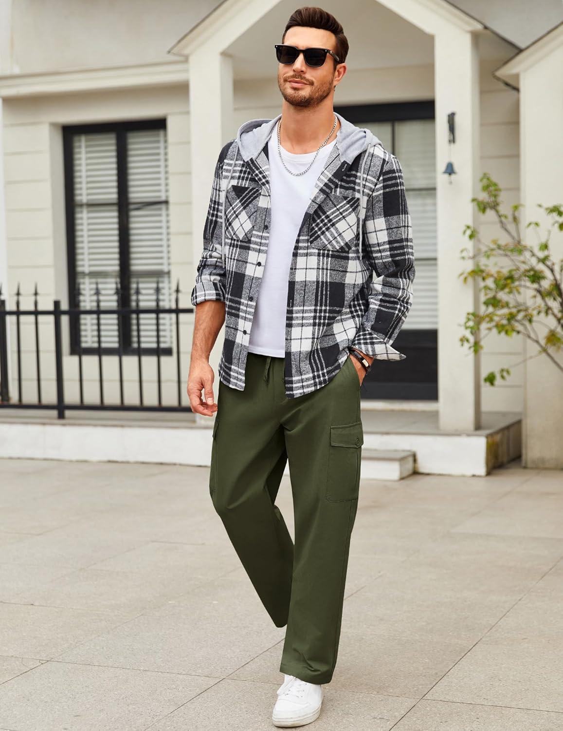 COOFANDY mens trousers casual pants with a straight-leg design are comfortable and loose, which can adapt to the big movements without tearing. 4 large pockets and a drawstring waistband design, which is more comfortable and convenient to wear. Reinforced treatment at the pocket, keeps your phone, keys or wallet from falling out when jogging or running.