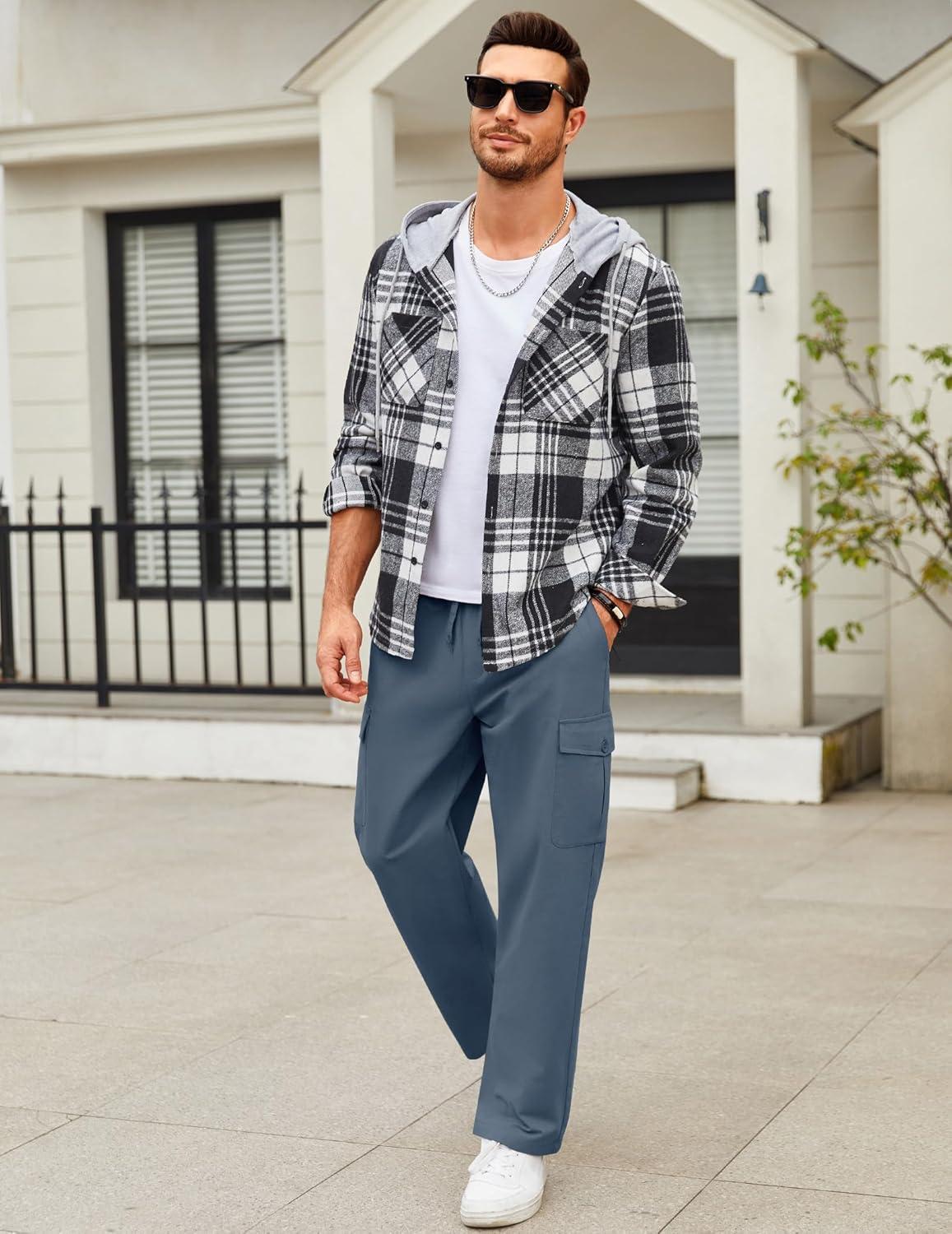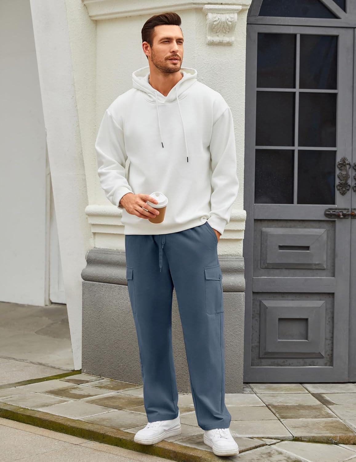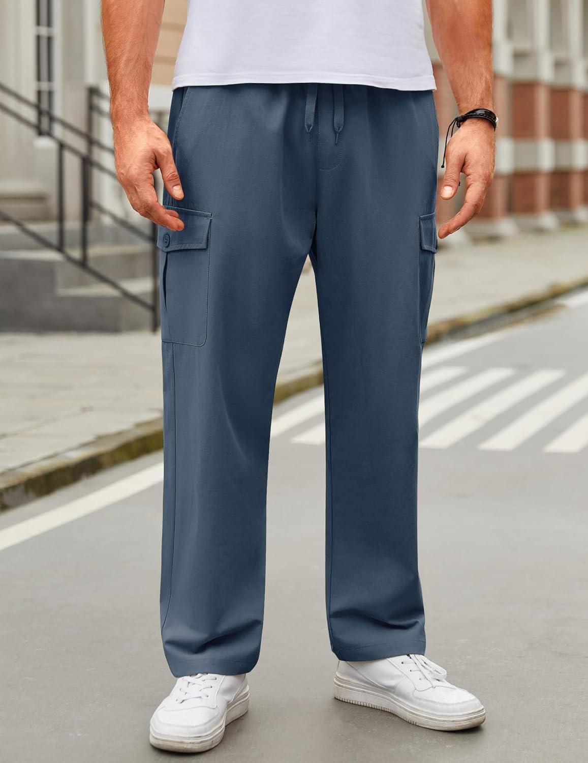 COOFANDY mens trousers casual pants with a straight-leg design are comfortable and loose, which can adapt to the big movements without tearing. 4 large pockets and a drawstring waistband design, which is more comfortable and convenient to wear. Reinforced treatment at the pocket, keeps your phone, keys or wallet from falling out when jogging or running.