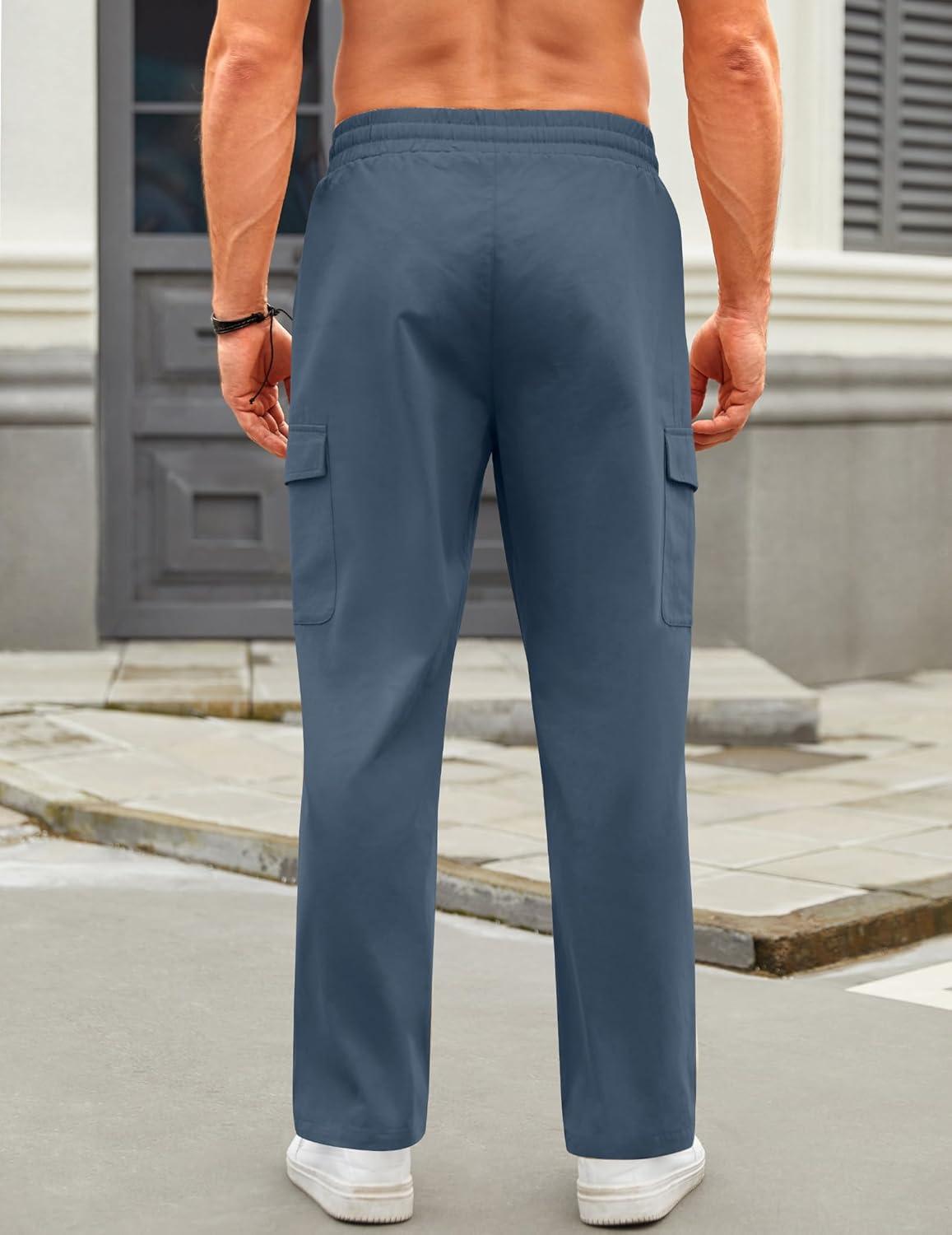 COOFANDY Mens Casual Cargo Pants Relaxed Fit Outdoor Hiking Pants Cotton Drawstring Sweatpants with Pockets(Blue)